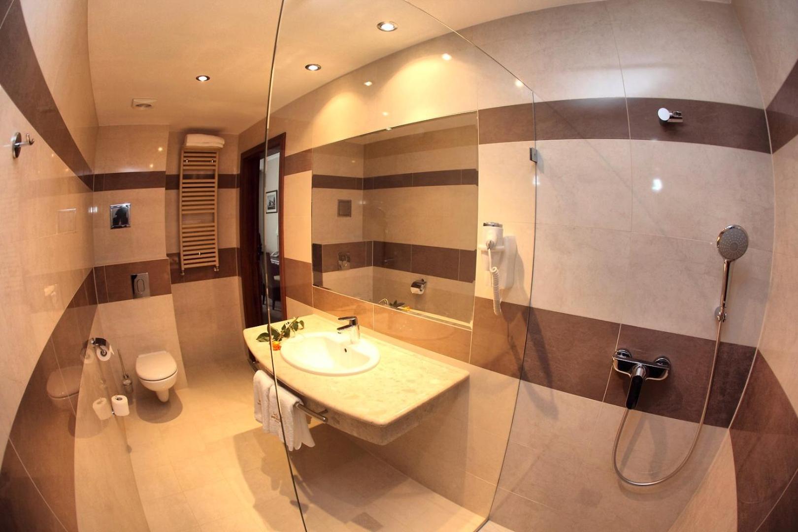 Hotel Pod Kluką in Słupsk offers guests modern rooms equipped with free Wi-Fi and LCD TVs. Each air-conditioned room features elegant bathrooms with showers, hairdryers, floor-to-ceiling windows, and work desks for convenience and comfort.