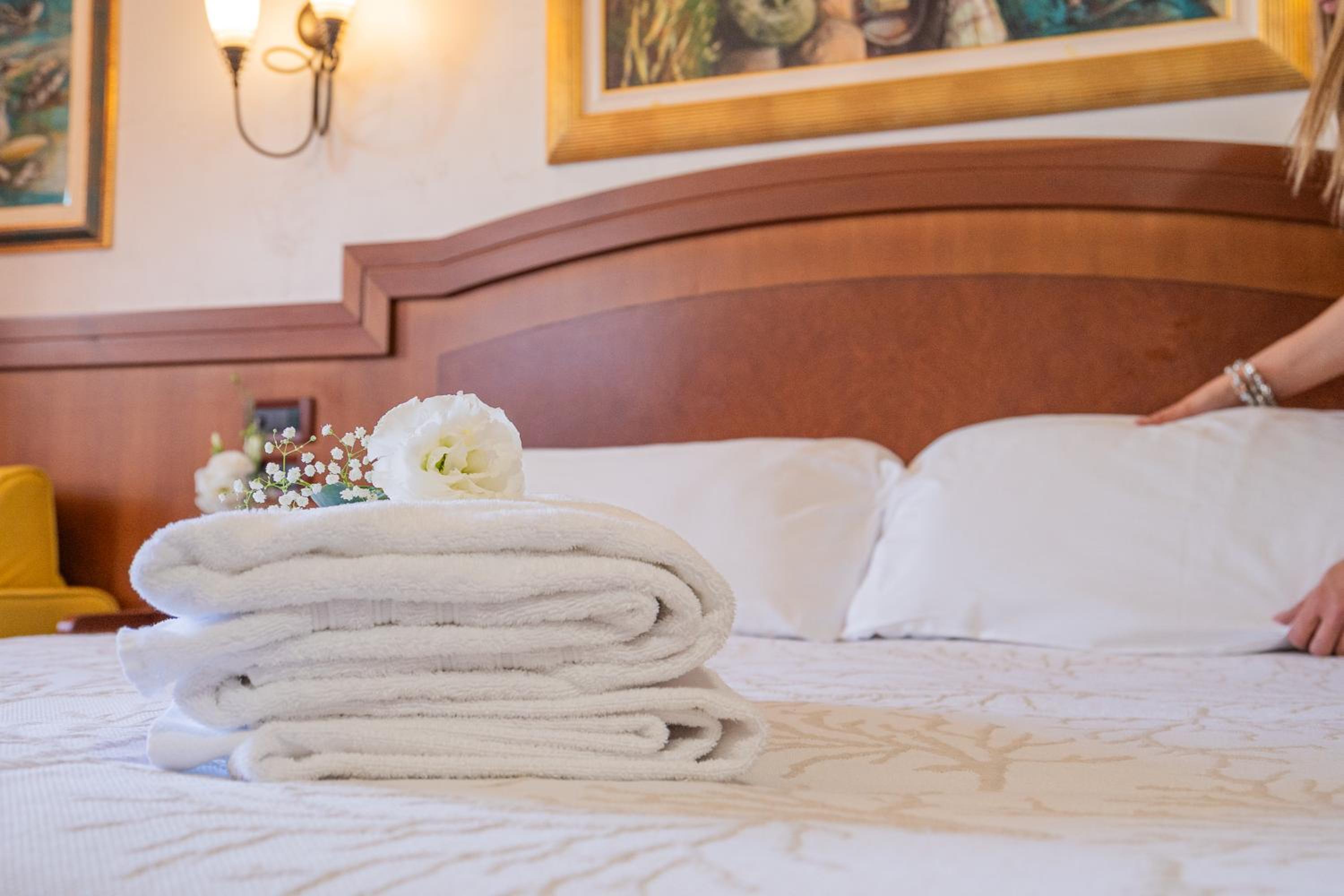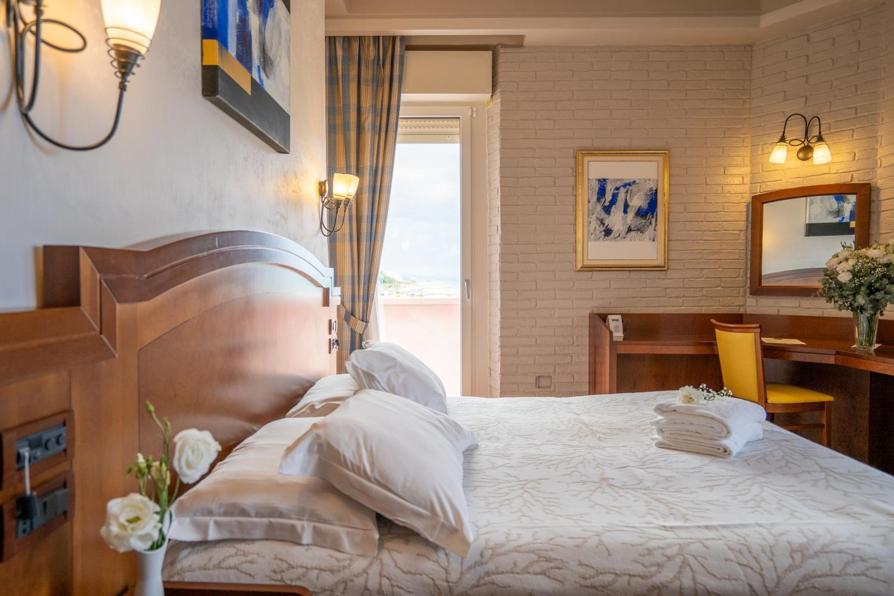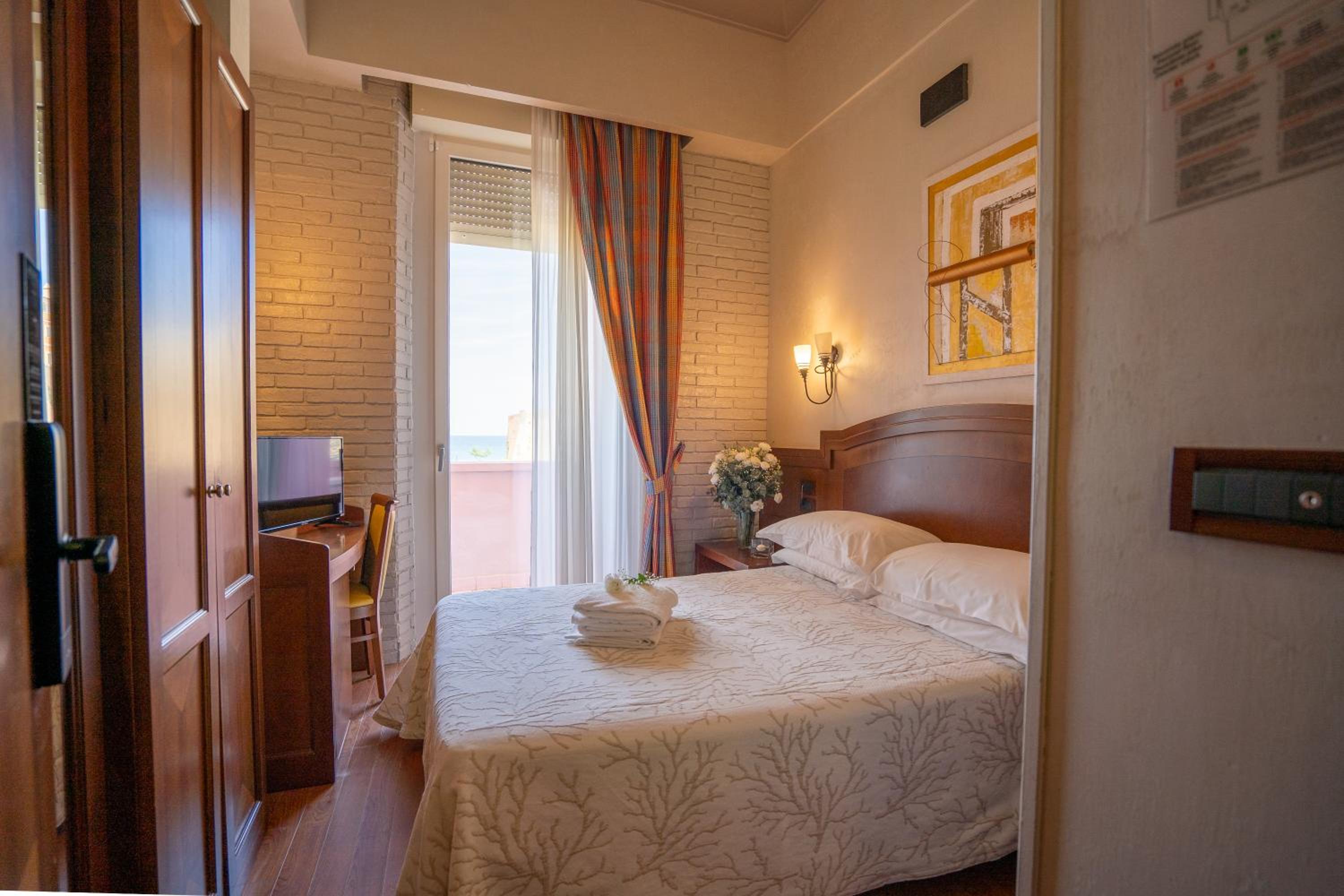 Stanza con vista sul mare molto bella, si sente il rumore del mare che rilassa. La struttura non e’ caotica, anzi, la colazione ha un po di tutto, molto accogliente la sala, non c’è confusione.