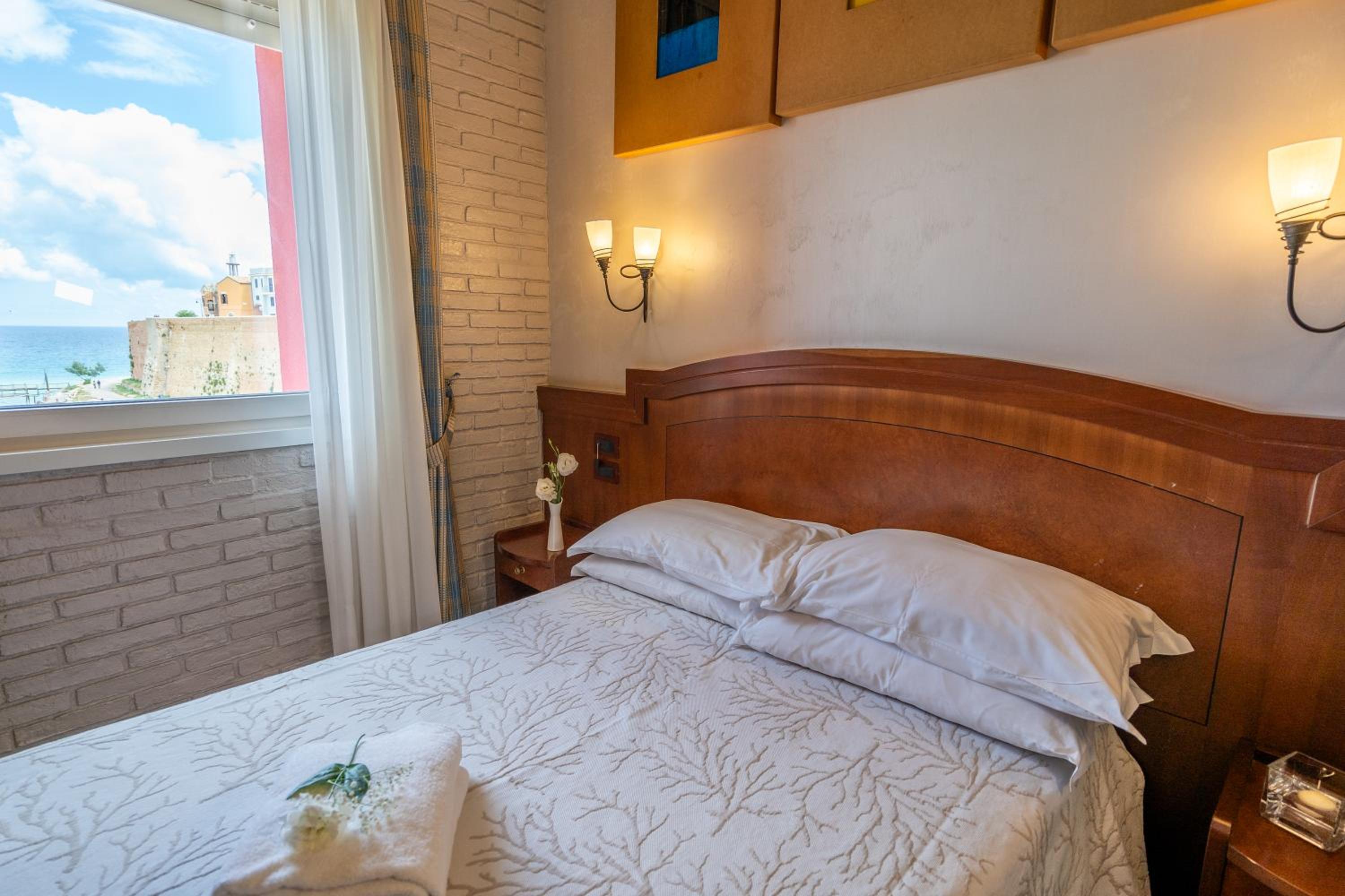 La posizione di fronte al mare e alle mura della città, la brevissima distanza dal centro, la colazione buona, la stanza ampia ed il bagno comodo, lo staff gentilissimo e professionale