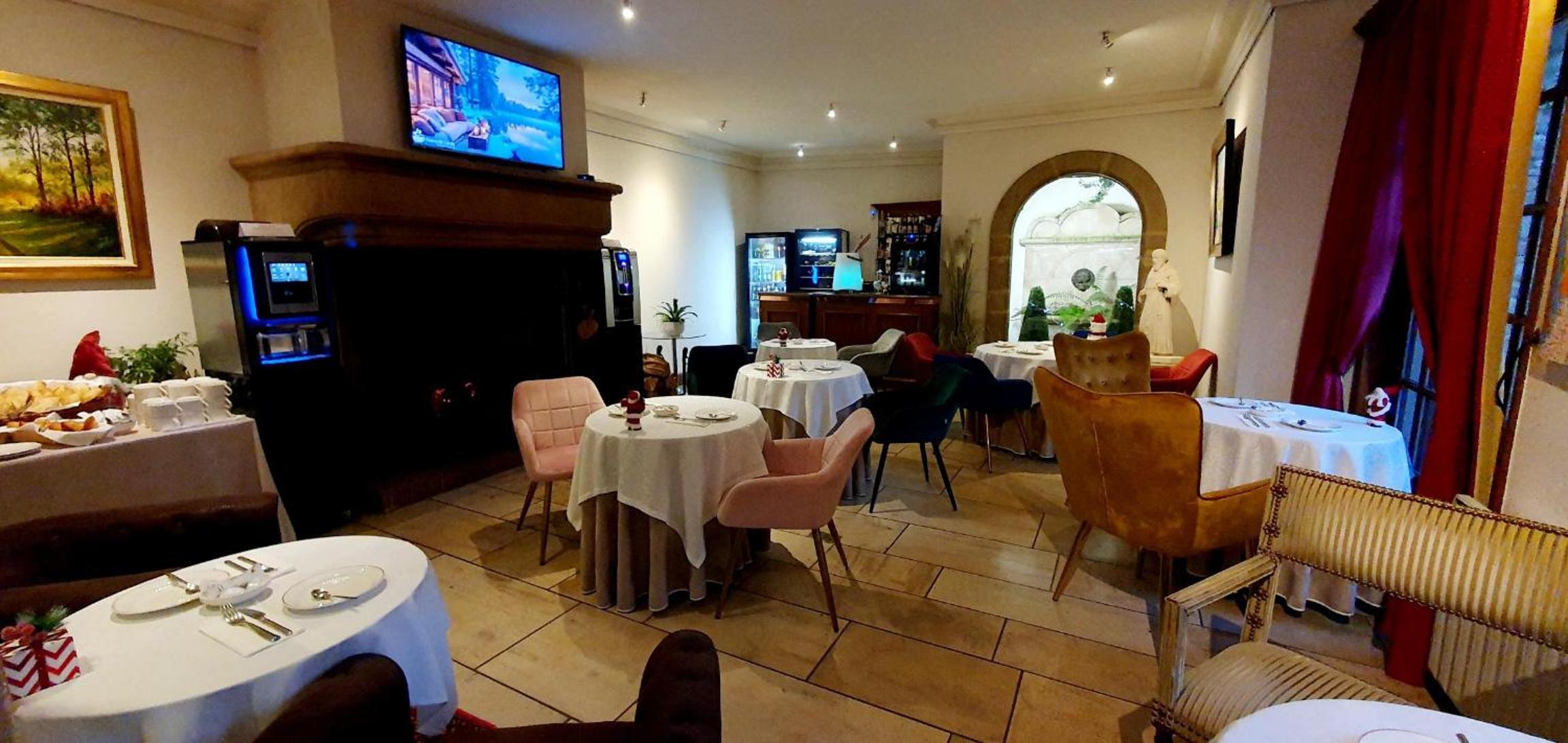 Wir wurden sehr herzlich empfangen, obwohl wir sprachlich Probleme hatten. Unser Zimmer war ganz niedlich eingerichtet und das Bad war toll, sogar mit Badewanne. Bei dem mit viel Liebe angerichtetem Frühstücksbuffet brasselte sogar das Kaminfeuer und Wünsche wie gekochte Eier waren kein Problem. Das Auto konnte man in dem über Nacht abgeschlossenen Innenhof parken.