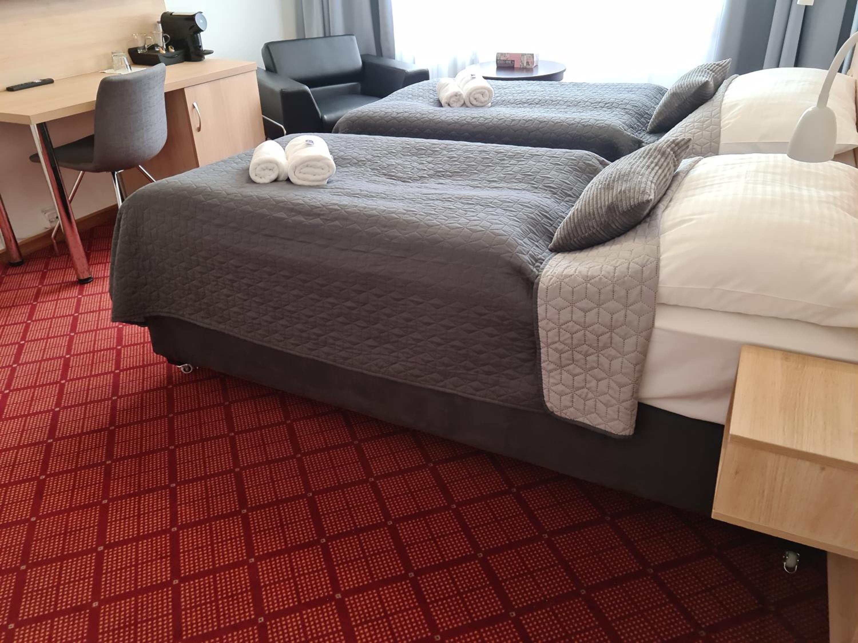 Czysty, schludnie wyglądający pokój. Strefa rekreacji bardzo fana, graliśmy w tenisa stołowego. Śniadania bardzo dobre i obfite, trochę szkoda, że od 8:00 w weekend, a nie wcześniej. Parking ok. W okolicy można zjeść w barach.