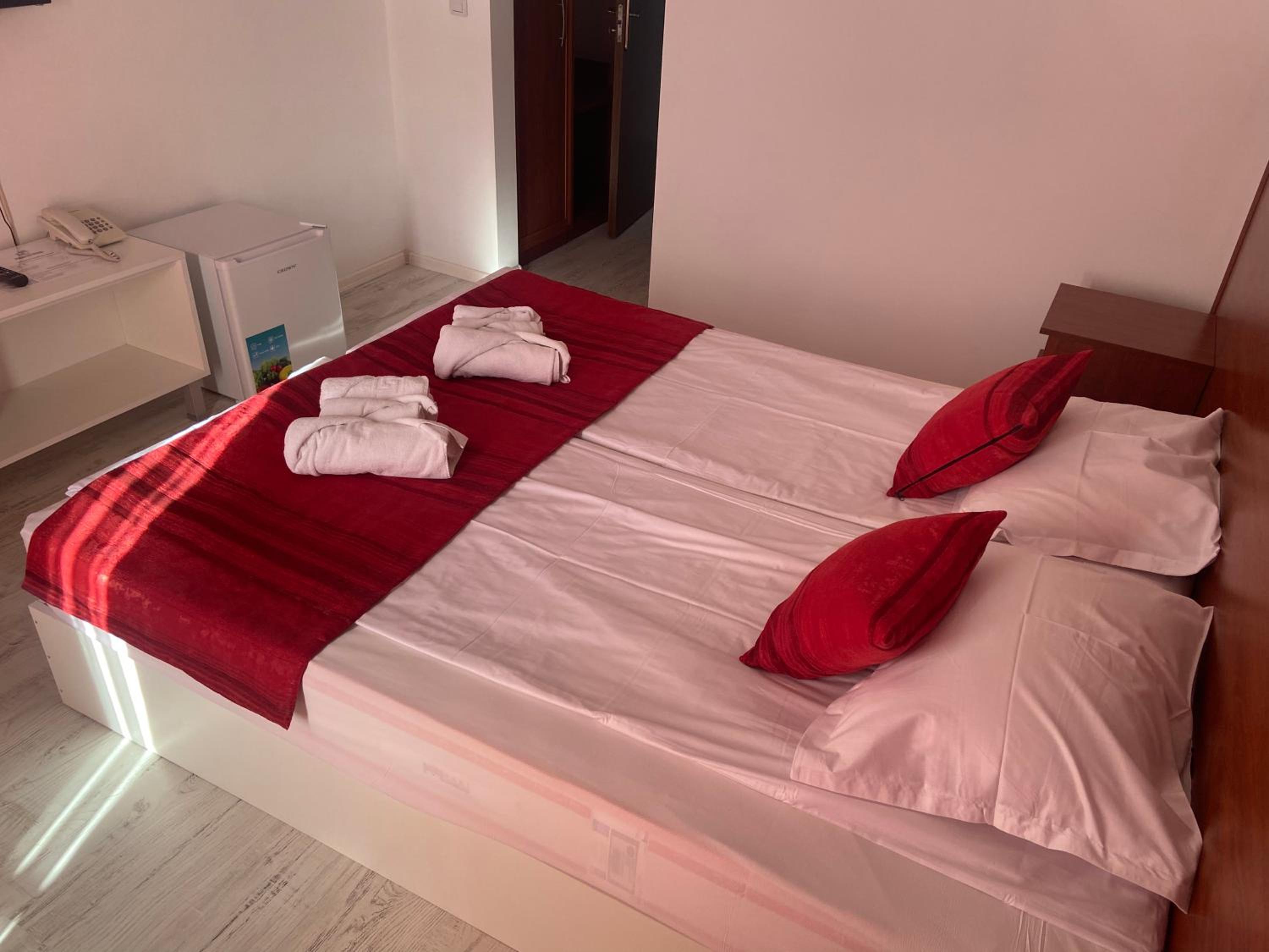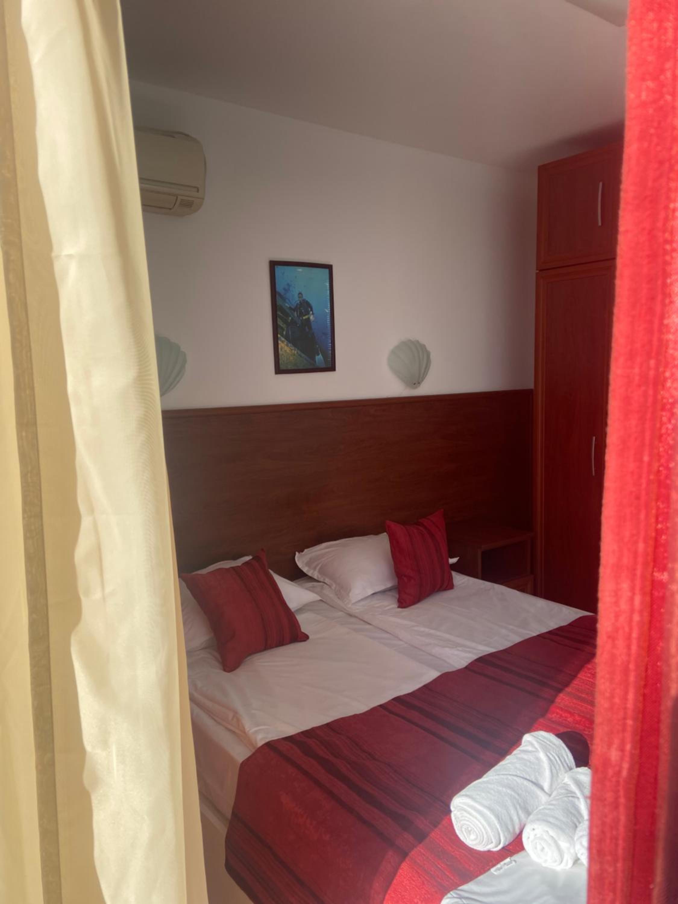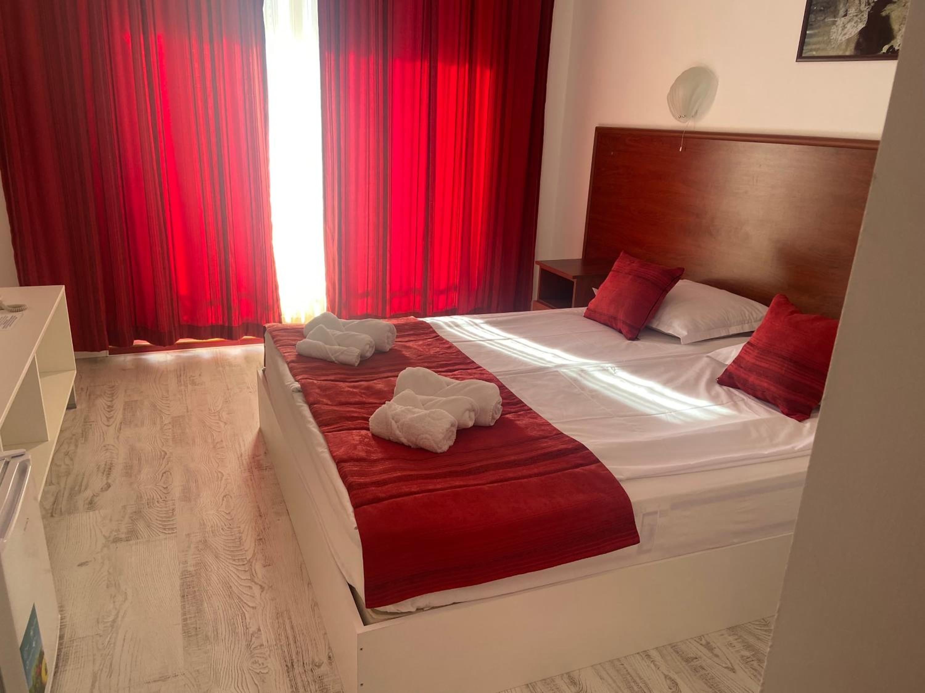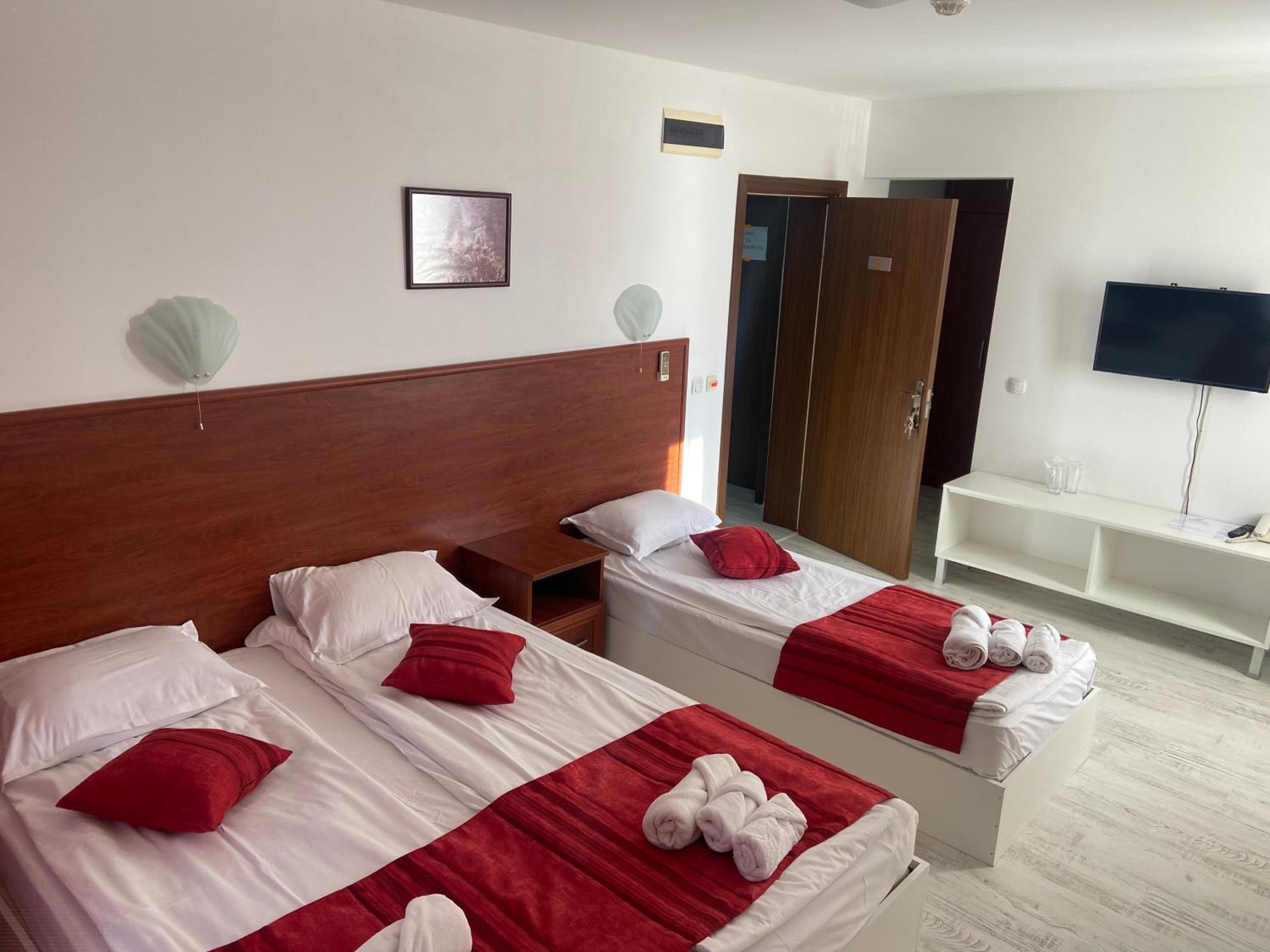 От 8 години отсядаме тук само заради местоположението гледката и паркинг а. За пръв път стаята ни бе пълно разочарование. До сега не бях виждала легла с детски матраци върху сковани и законвани за стената сандъци от дъски!!!!! Такова нещо няма в нито един хотел а аз съм обиколила страната...... дори и за букинг цена това е под всякакво ниво.....