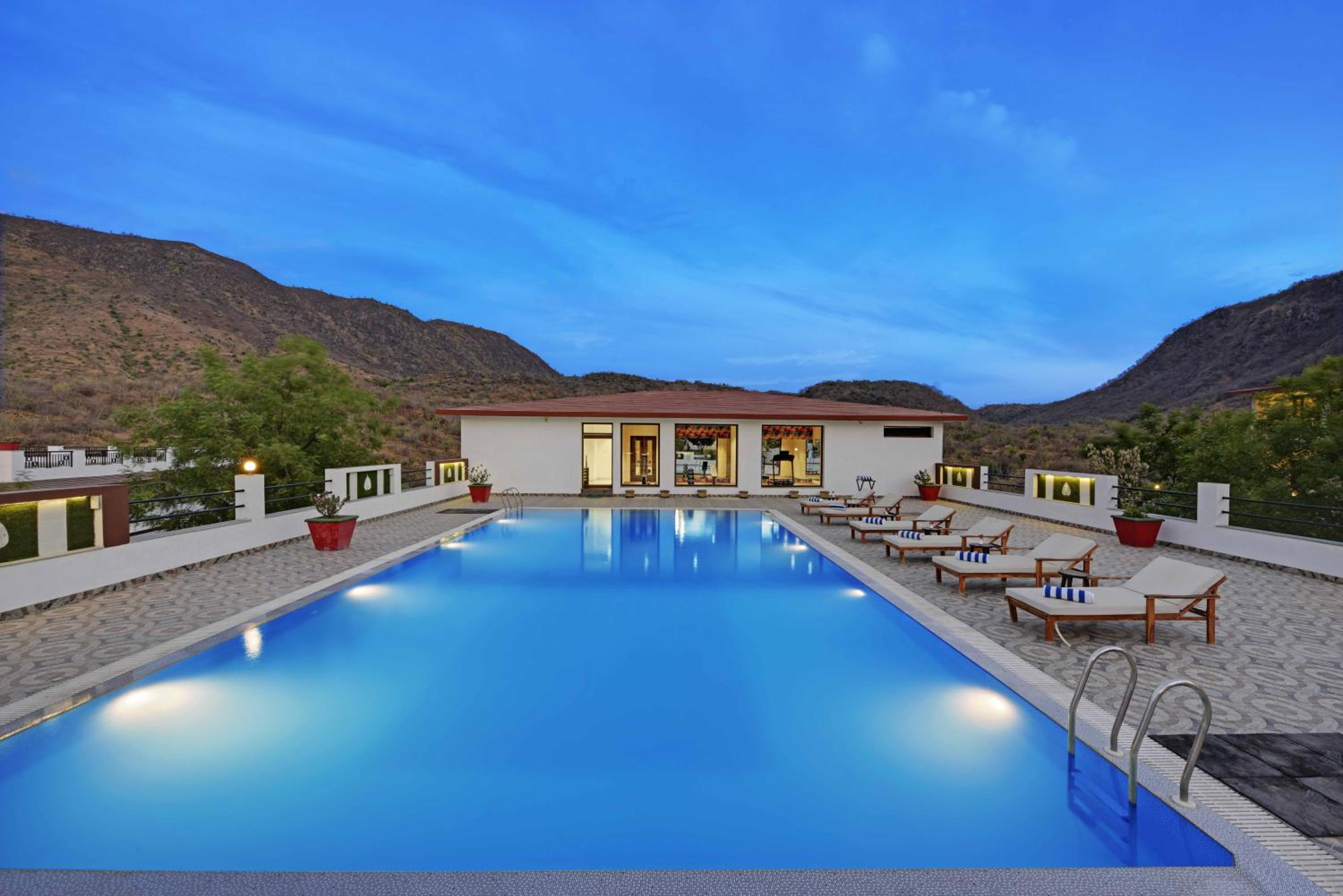 Nestled in Udaipur, The Maharana Bagh by Trulyy offers a luxurious stay with an outdoor pool, garden, and shared lounge. The 4-star hotel boasts air-conditioned rooms with free WiFi, each featuring a private bathroom and some offering pool views from a balcony. Indulge in Chinese and local cuisine at the on-site restaurant or unwind at the children's playground.