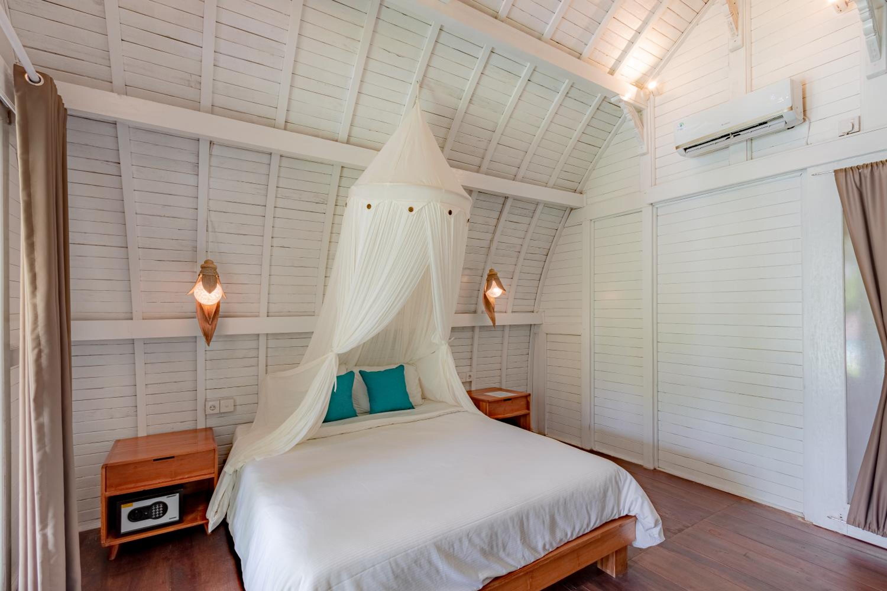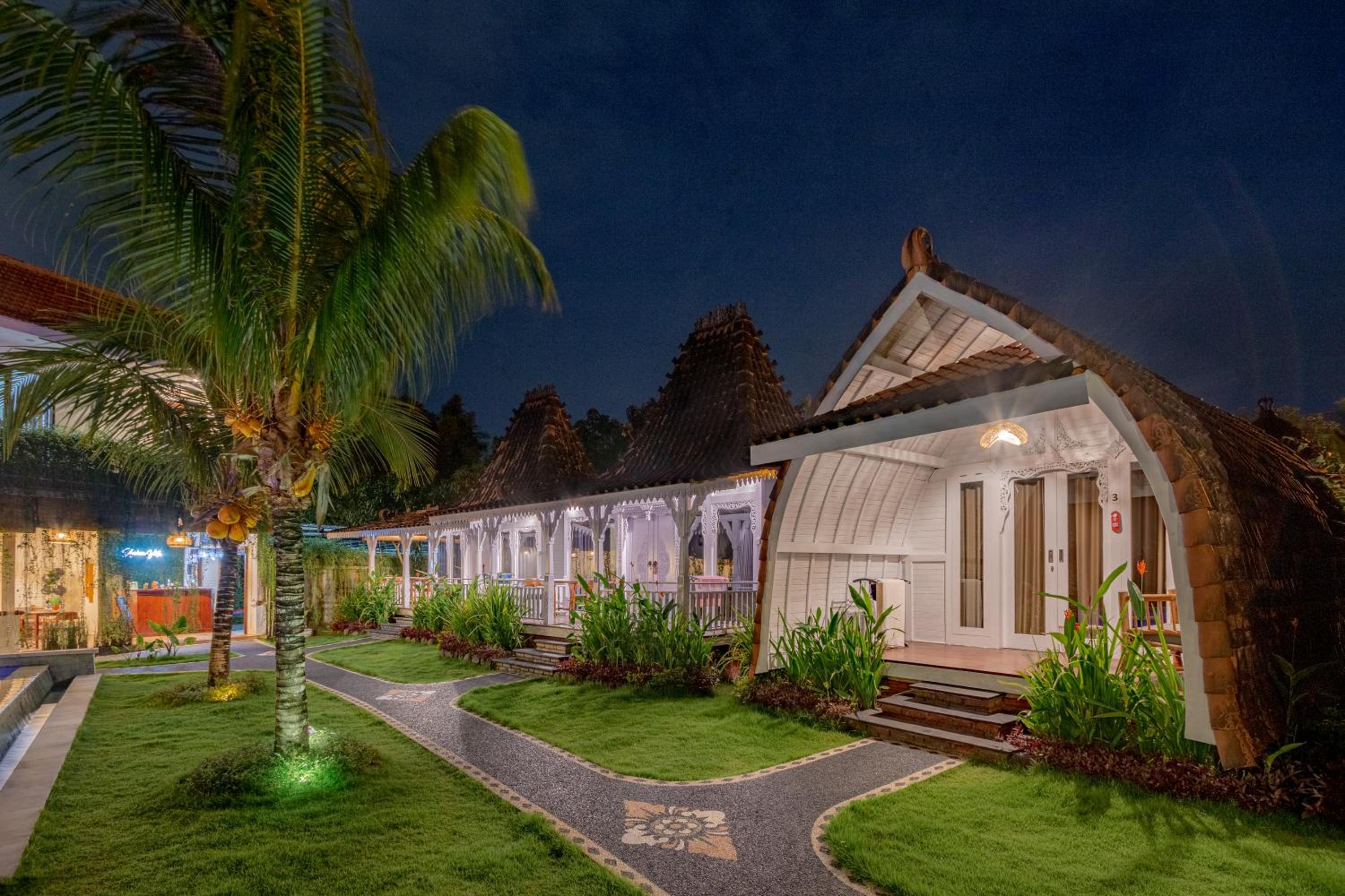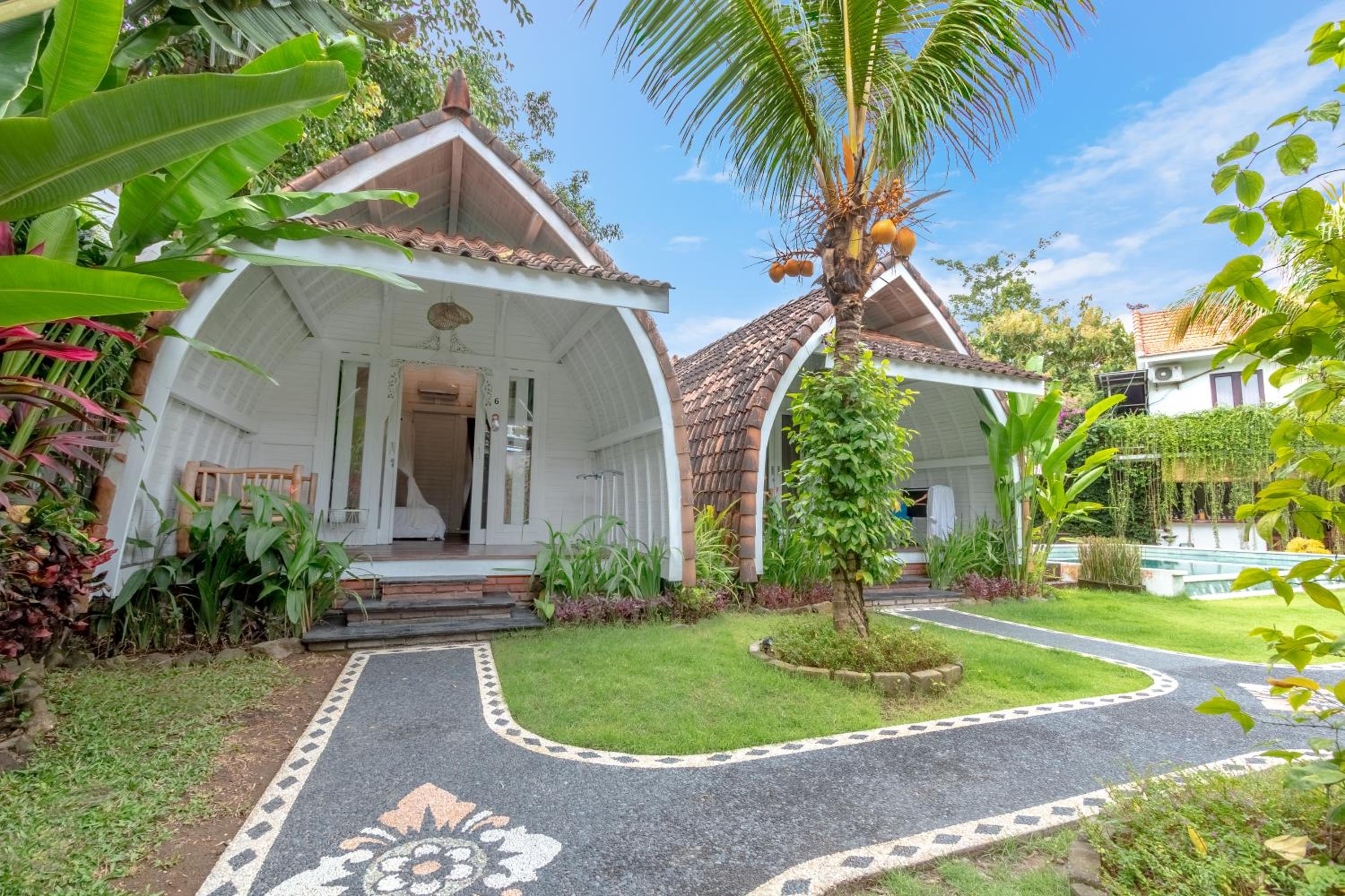 Seitsemän villaa hotellissa. Villat kivoja ja siistejä. Piha-alue viihtyisä. Ravintolapalveluita ei ole hotellissa. Henkilökunta ystävällistä. Olin lukenut varoituksia melusta, mutta meidän 4 yön vierailulla emme heränneet öisin meteliin.