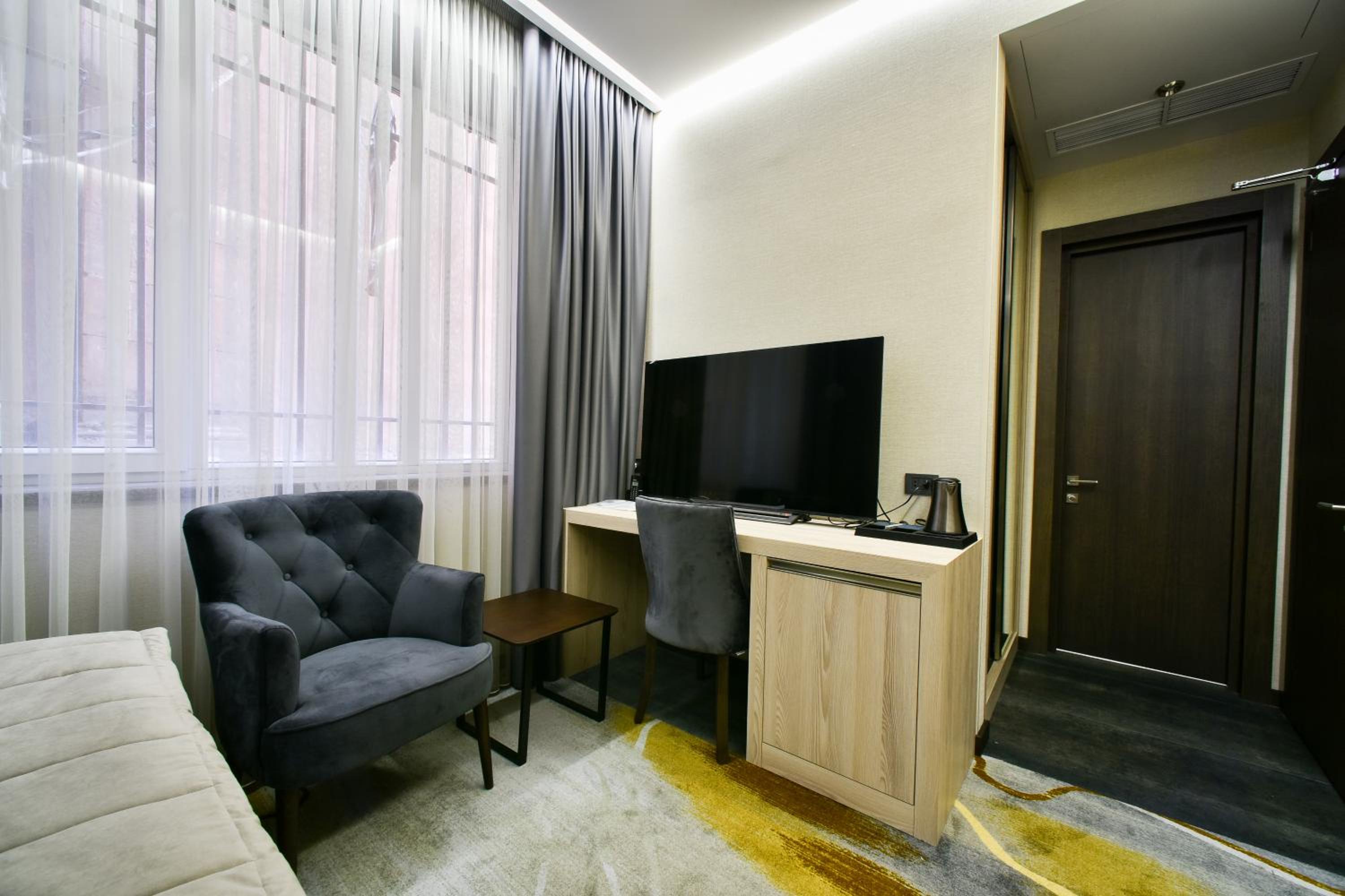 отличное расположение для вечерней прогулки по Еревану , множество приятных кафе и ресторанов рядом с отелем , номер современный , просторный, чистый , все необходимые опции , удобная кровать , размещал приятный сотрудник на рецепции