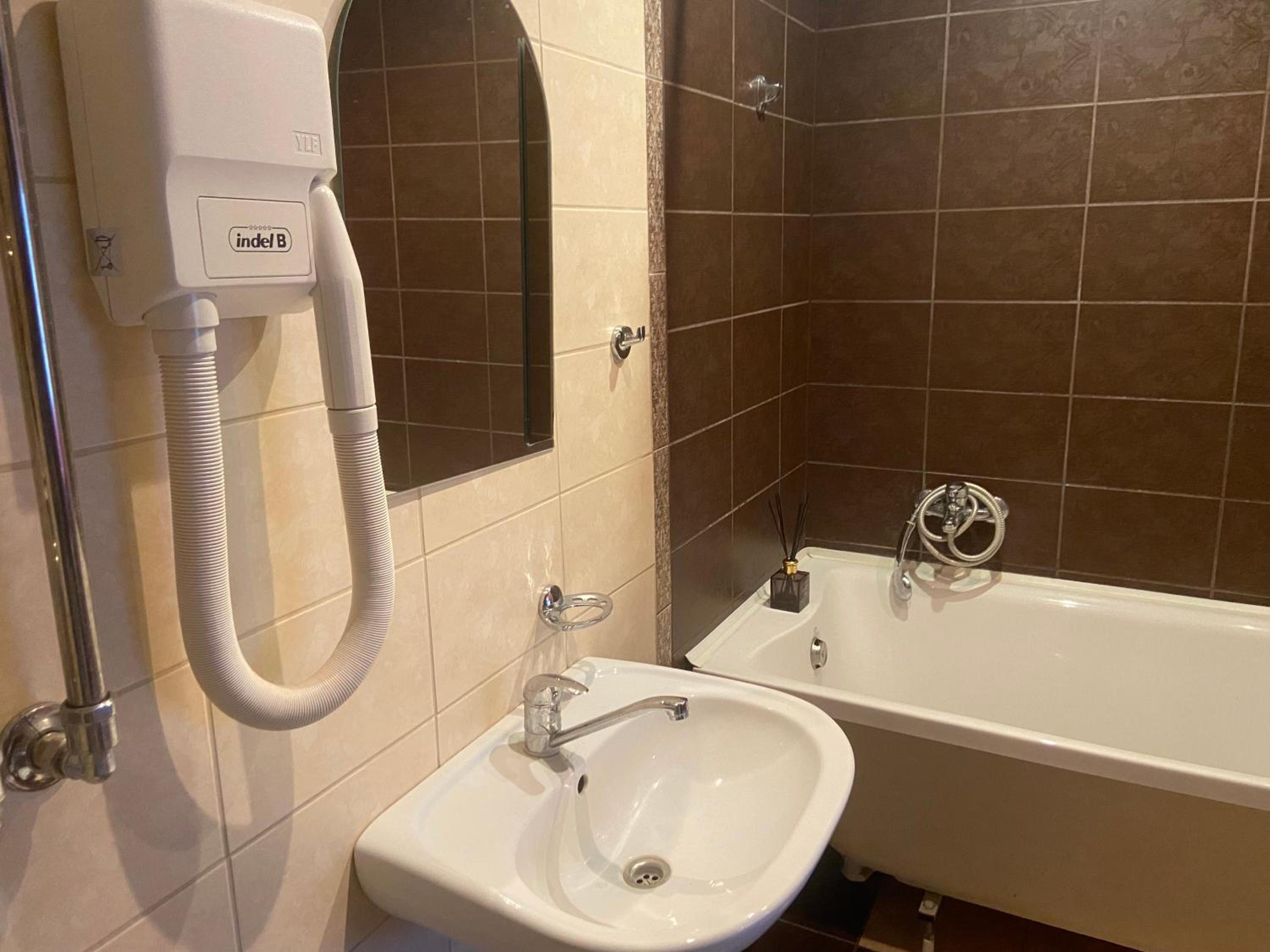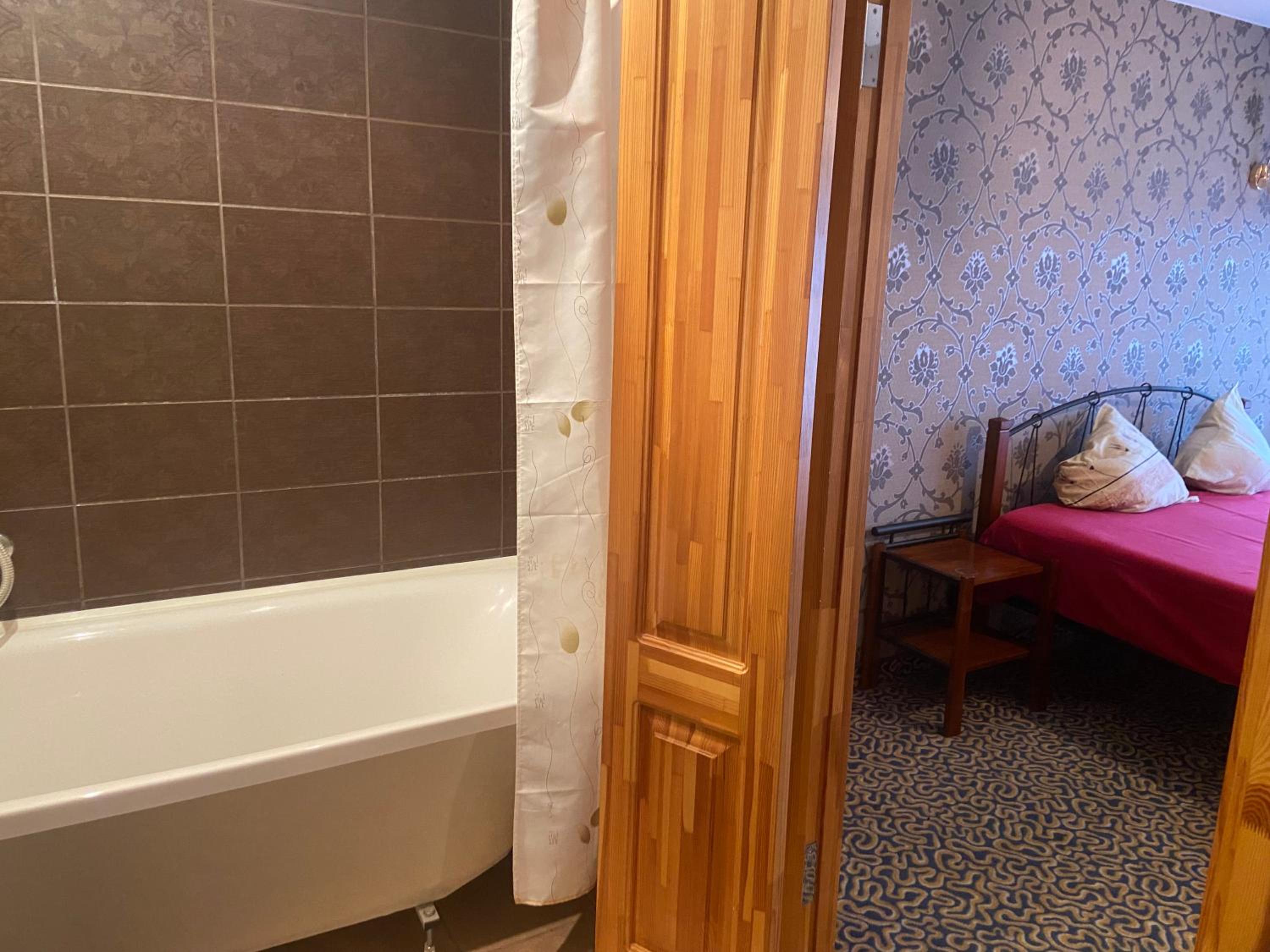 Sienā caurums, gulta čīkst un bija saplēsta, zem gultām nebija izsūknēts paklājas. Nolaižot podā ūdeni, tad ūdens tek. No vannas ūdens tek. Durvis uz tualeti/vannas istabu nevar normāli aizvērt, nav iespējams aizslēgt vispār.