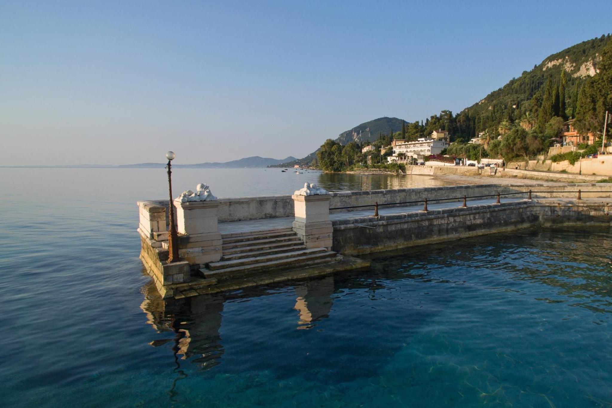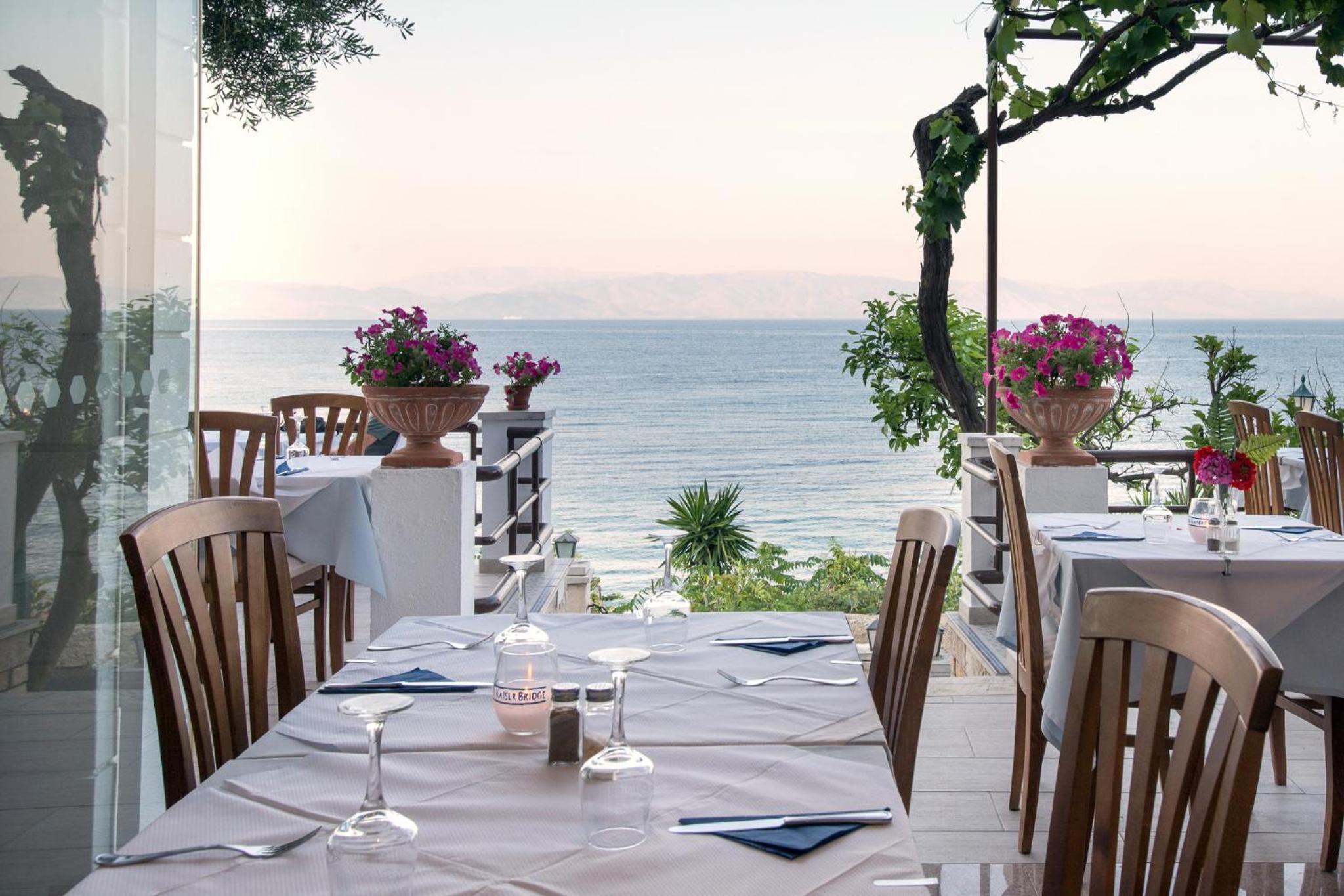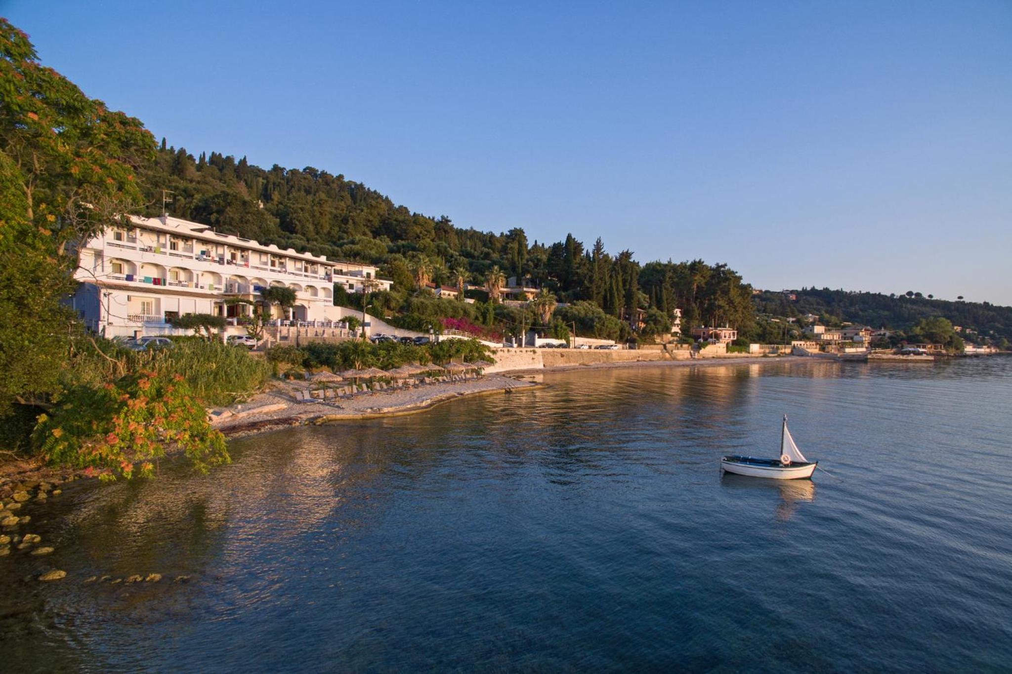 Kaiser Bridge, a family-run hotel, offers stunning views of the Ionian Sea and provides complimentary sun beds on the nearby beach.