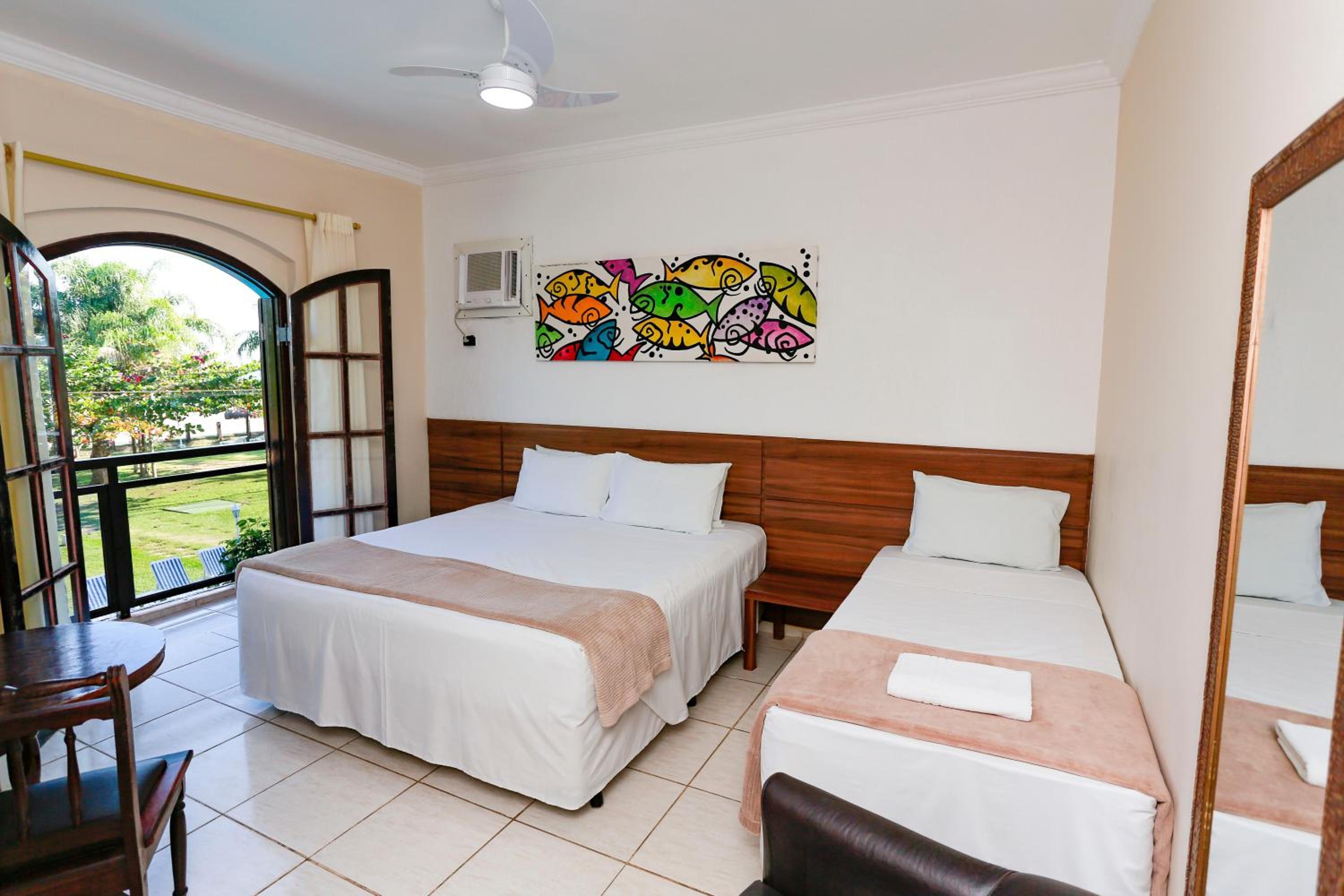 O quarto é antigo e simples, com chuveiro elétrico muito ruim e fraco, faltou energia na metade do hotel e passamos a noite do sábado sem nenhum recurso no quarto e não há gerador no hotel e nem apoio aos hóspedes nessa situação. Fiquei dois dias e consumindo no hotel tanto no serviço de praia quanto no restaurante e no dia do check-out que se encerra às 13h, solicitei para realizar o check-out às 14h pois iria almoçar no hotel e não cederam, ou seja, não há empatia com os hóspedes, pois, o hóspede pode passar o sábado no quarto sem energia, porém, não pode no dia seguinte ficar apenas mais uma hora para comodidade em pegar a estrada após o almoço não pode, sendo que o check-in inicia somente as 16h. Ou seja, é nos pequenos detalhes que se encanta ou desencanta o cliente. O hotel é focado para grupos de viajantes/excursão creio que a preocupação é no volume de ocupação e se soubesse disso antes não teria optado por esse hotel. Buscarei outra opção na próxima viagem.