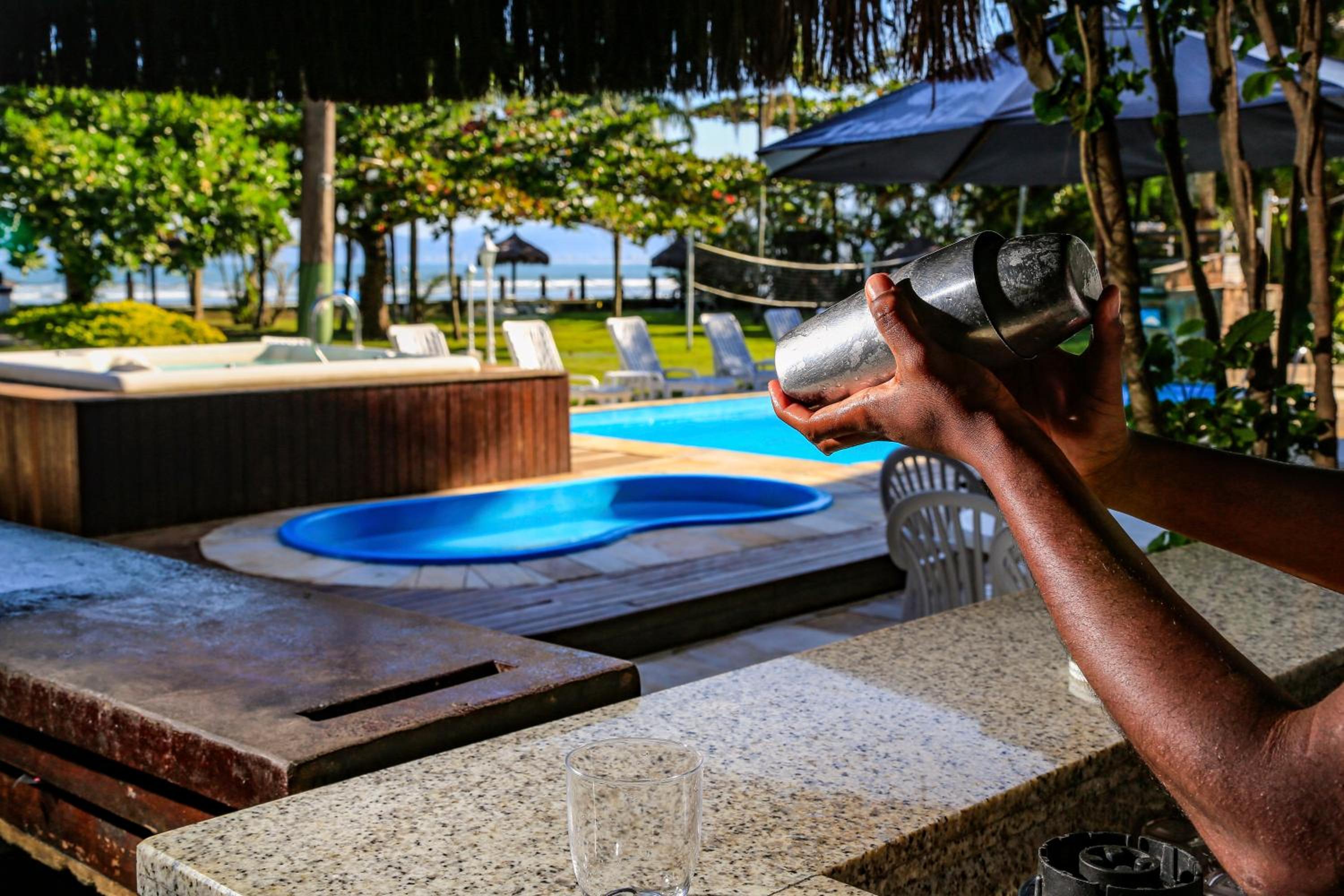 Piscina, de frente ao mar, café da manhã tem suco de laranja natural e ganhou meu coração, serviço de quarto incrível, pedir uma porção de frango a passarinho e salada que estava impecável