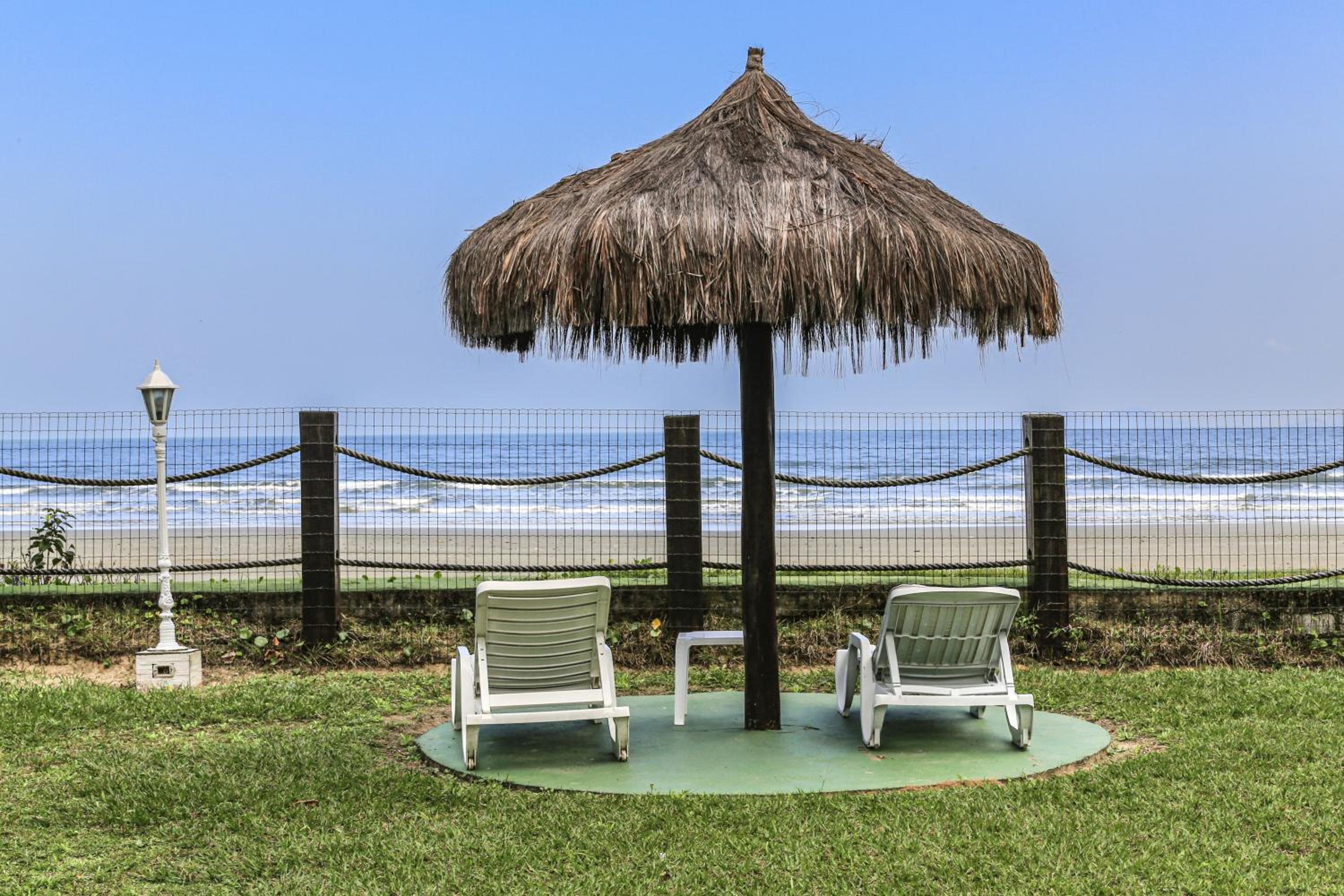 A localização por ser beira-mar, o café da manhã é bom e o serviço de praia com guarda-sol com atendimento é muito bom e cômodo.