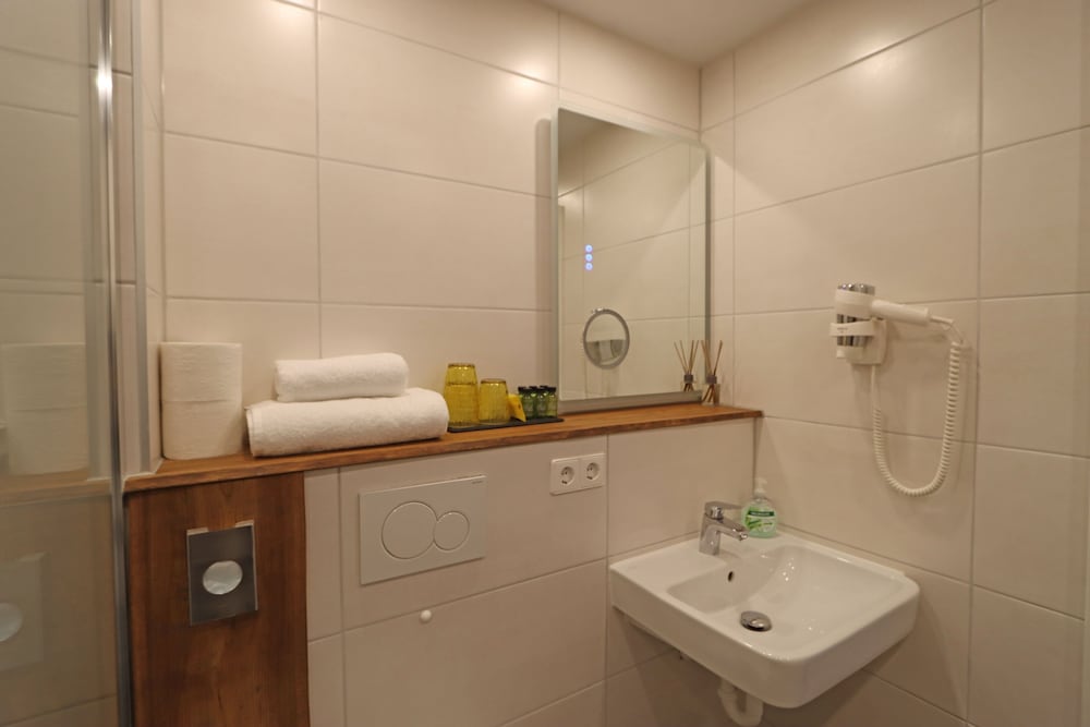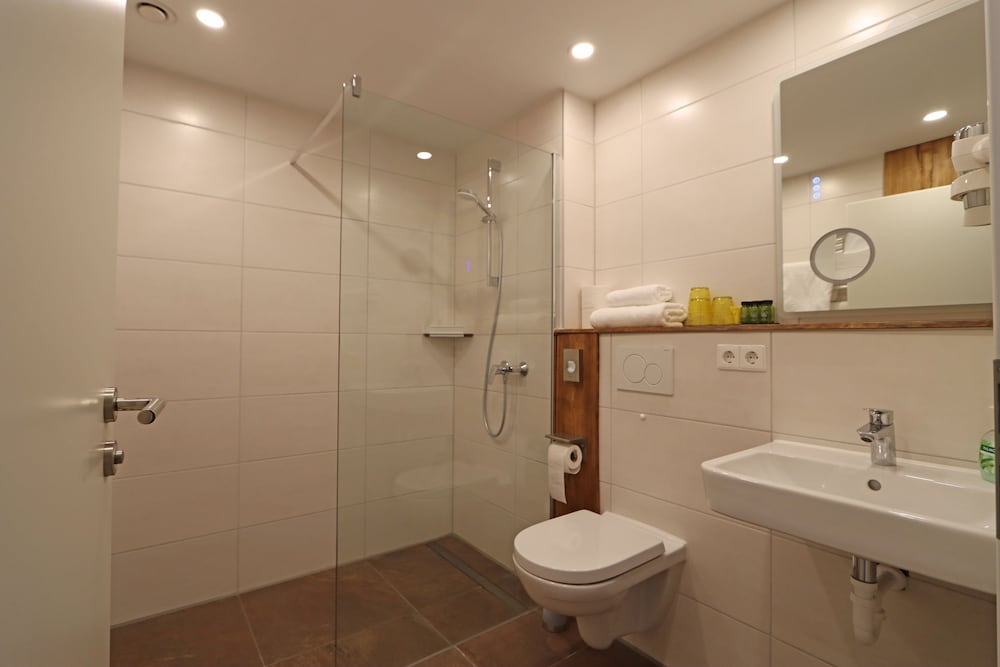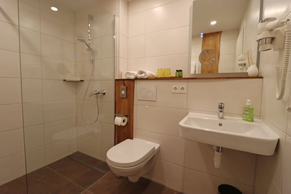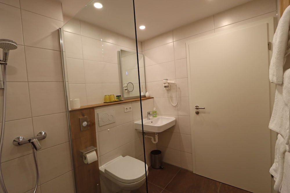 Das Bad war modern und neu! Zimmer sauber.