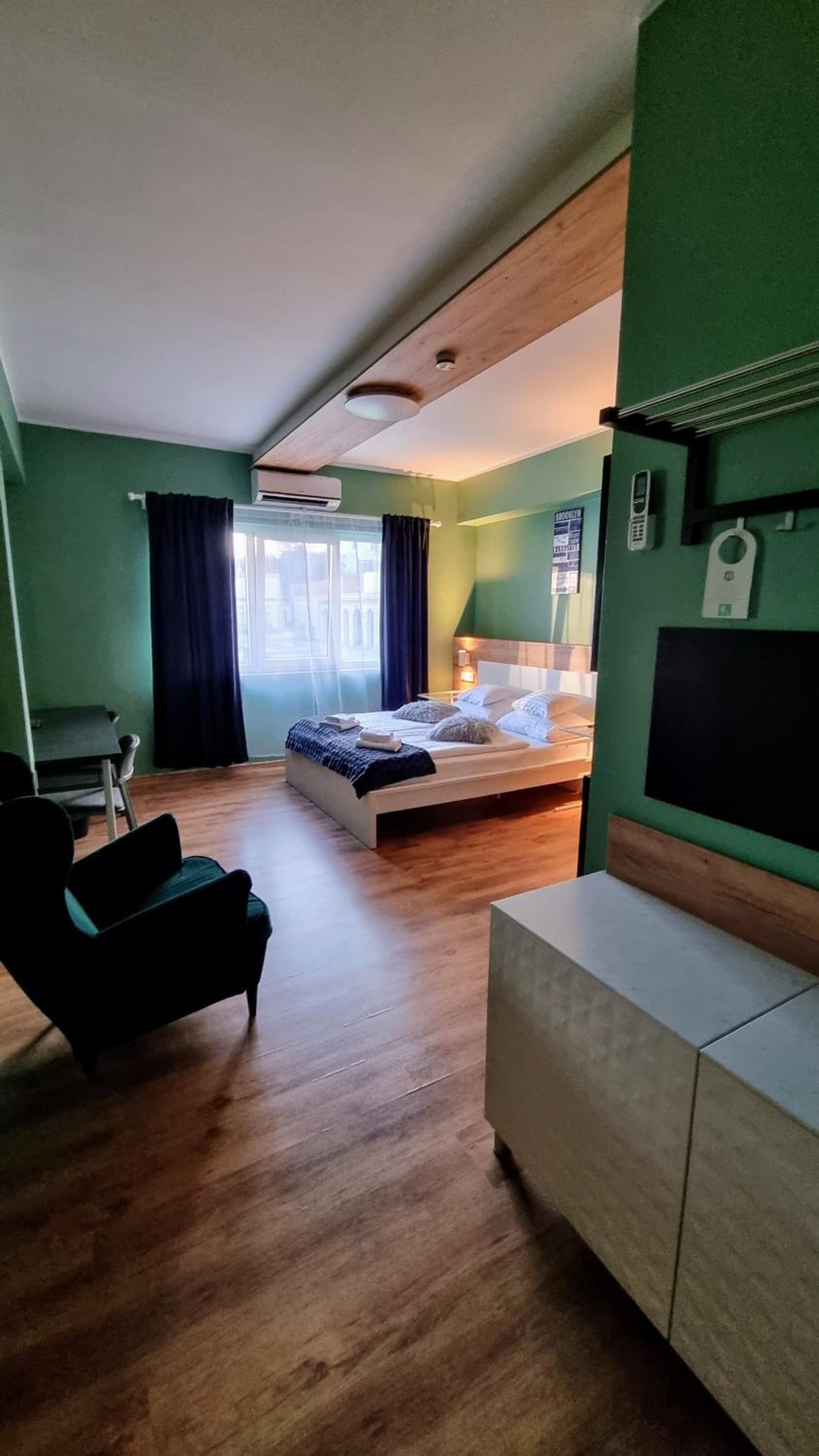 A Jacuzzi körül a booking - on elhúzható függöny szerepelt, de a valóságban nem volt semmilyen függöny illetve a szoba nagyon kicsi és zsúfolt volt.