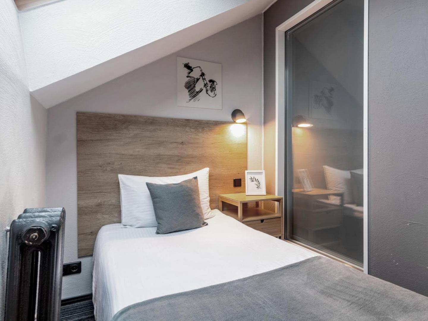 Comfortable bed, nice room, everything there that was needed (shampoo, soap, hairdryer, thick curtains) in a central location. There is no elevator but the stairs were so flat that it wasn't a problem notwithstanding my heavy luggage.