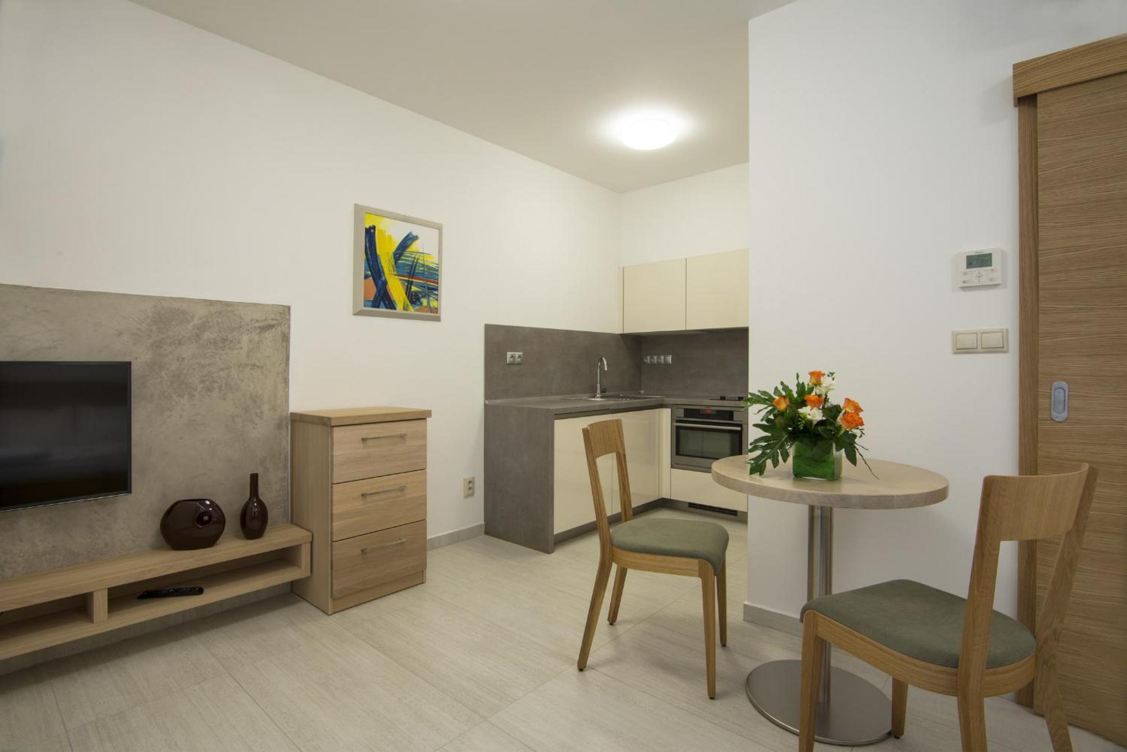 Bohužel byl slyšet hluk z ulice i přes zavřené okno, takže mě auta kolem páté ráno vzbudila. Recepce pouze do 20:00, pak se klíče vyzvedávají podle SMS s kódem.