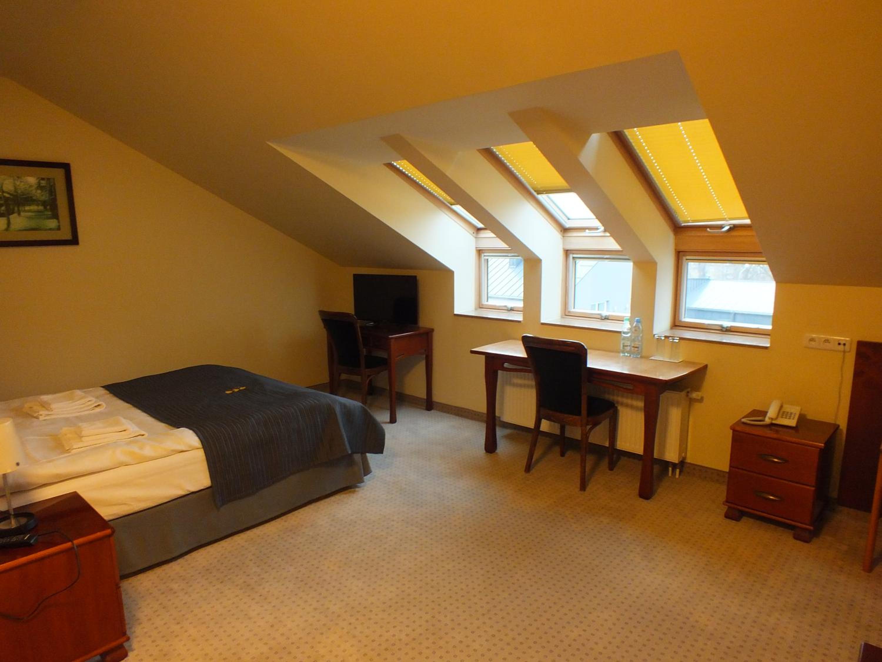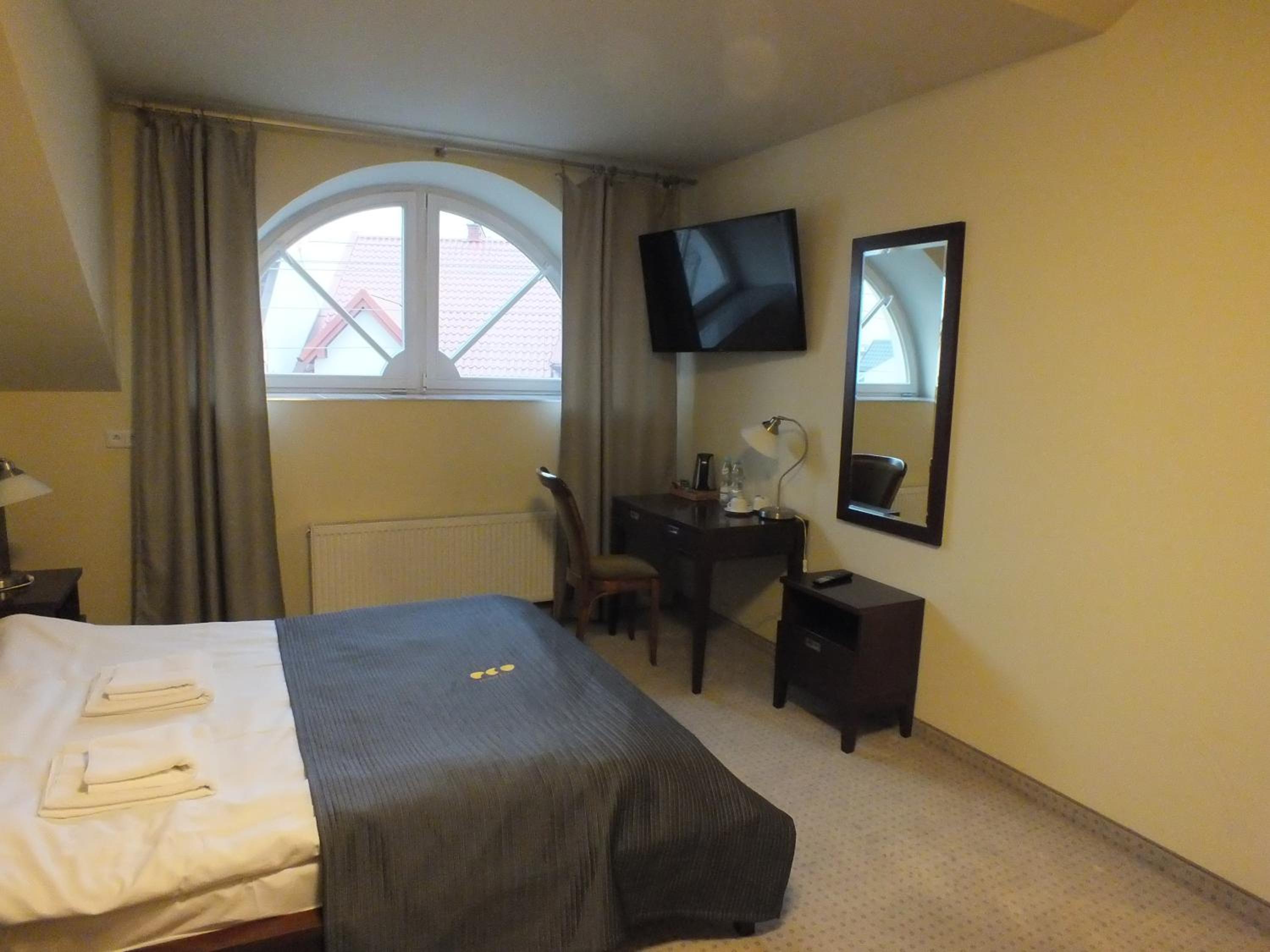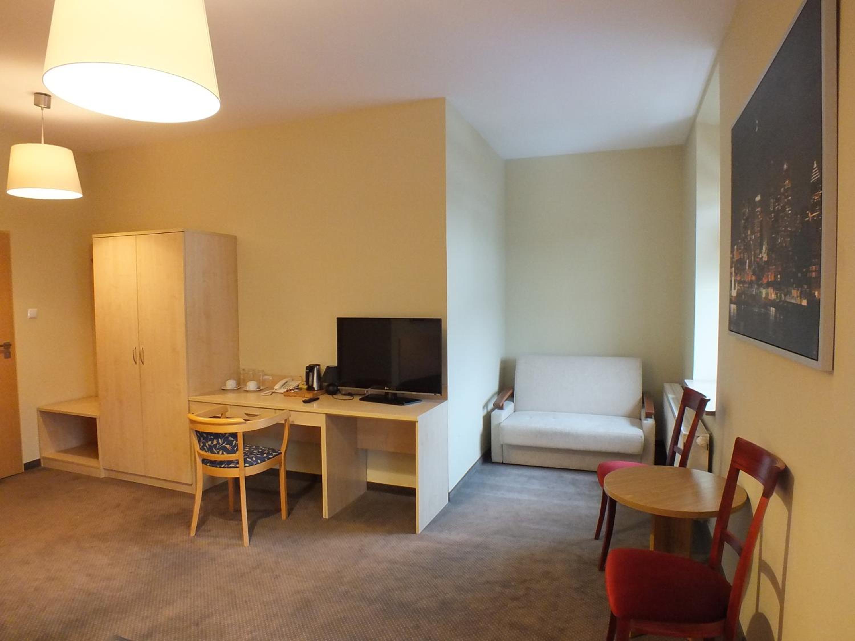 Hotel Eco in Łowicz offers classically decorated rooms with wooden furniture and green carpets. Each room features an LCD TV with satellite channels, a spacious work desk, and a private bathroom with shower and toiletries.
