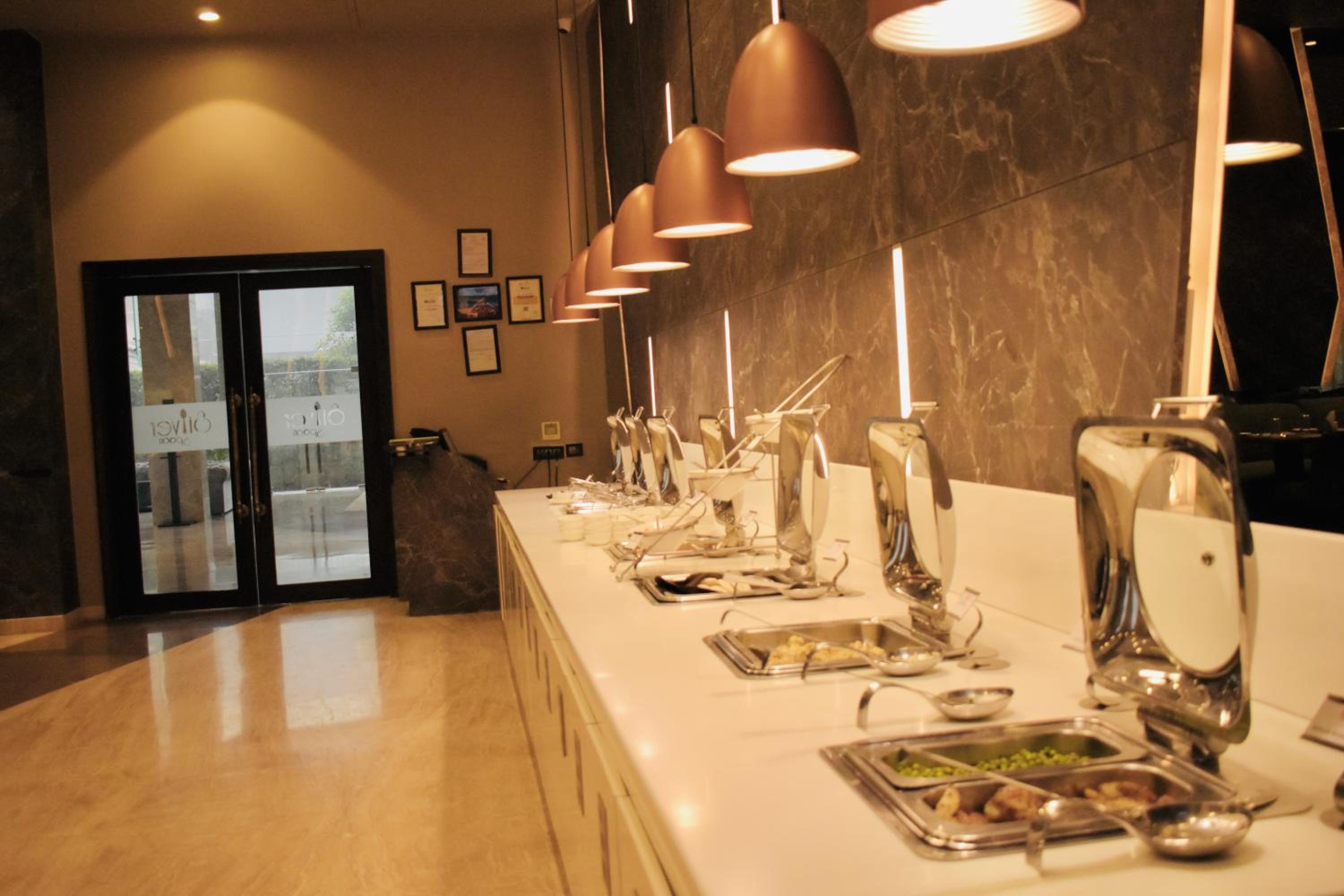 Start your day with a buffet breakfast offering continental, vegetarian, and local delicacies. The on-site restaurant serves Chinese, Indian, and Italian cuisine, catering to diverse tastes with vegetarian, dairy-free, and halal options available upon request.