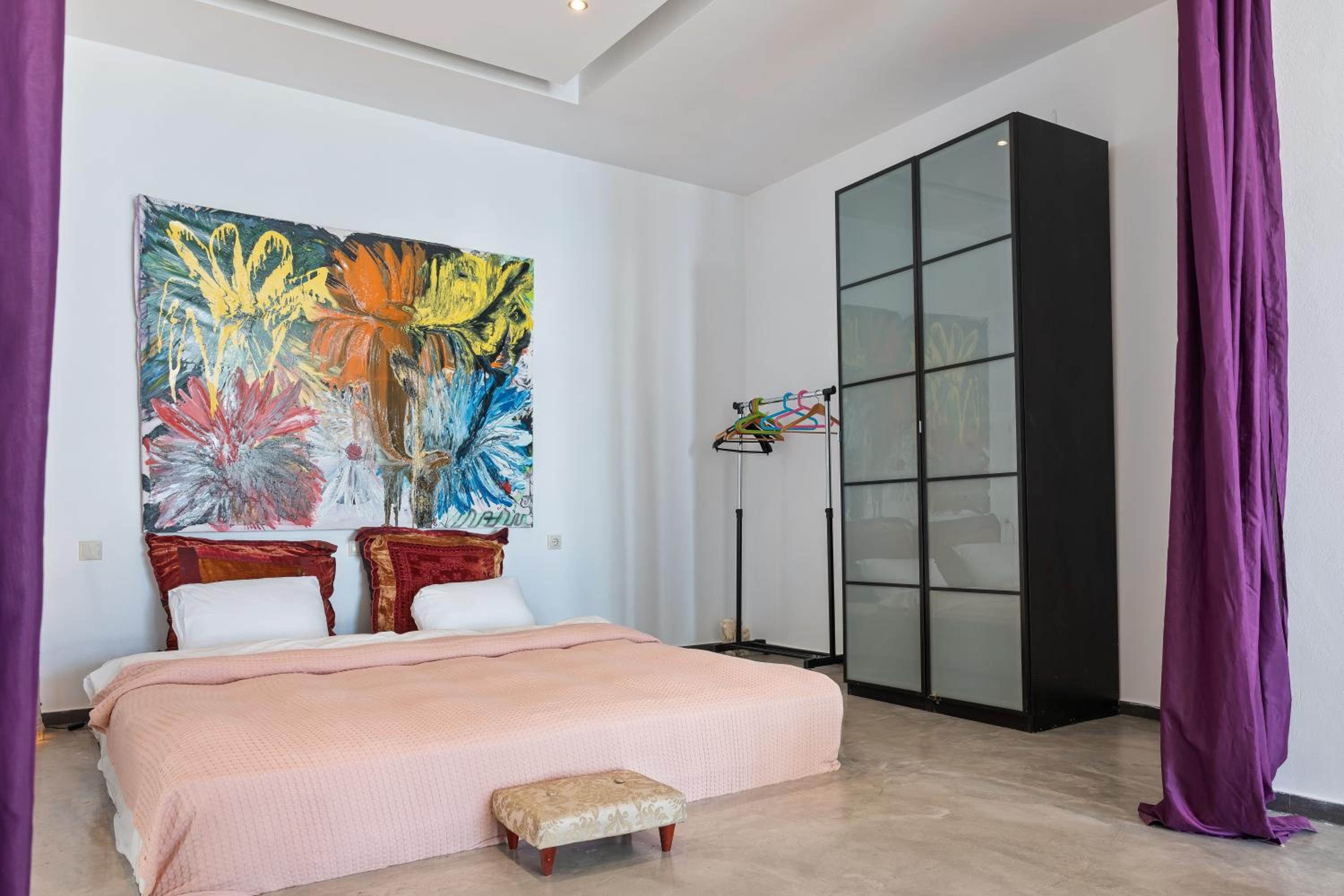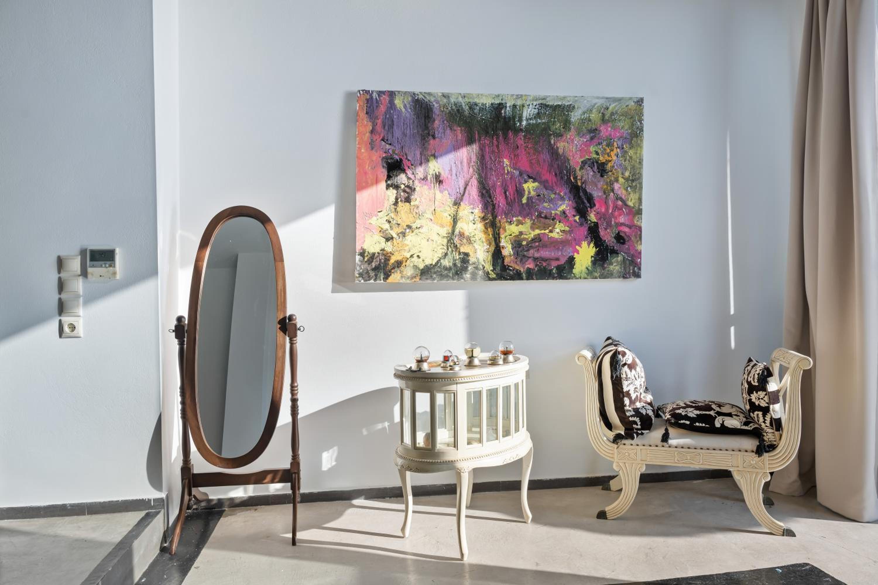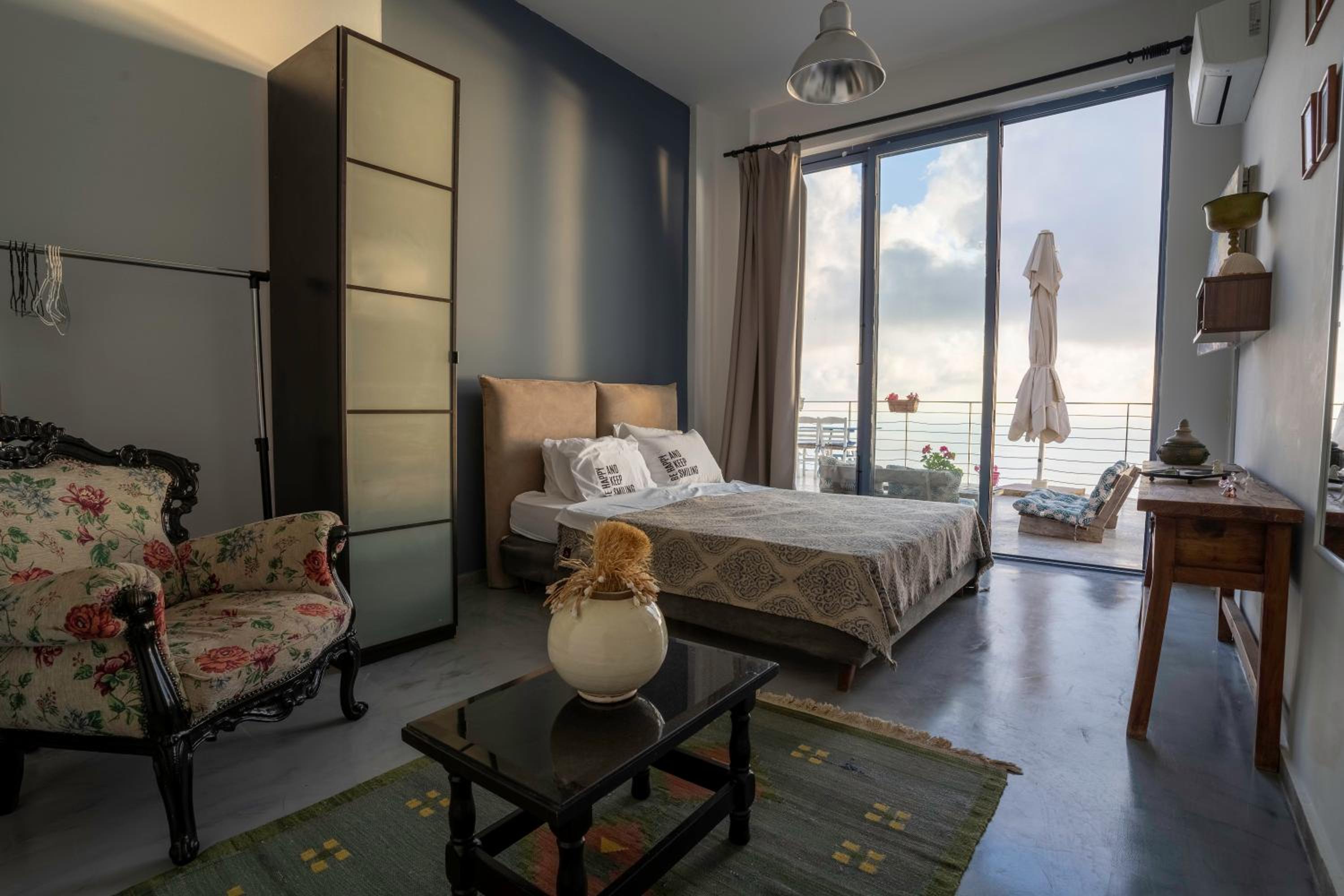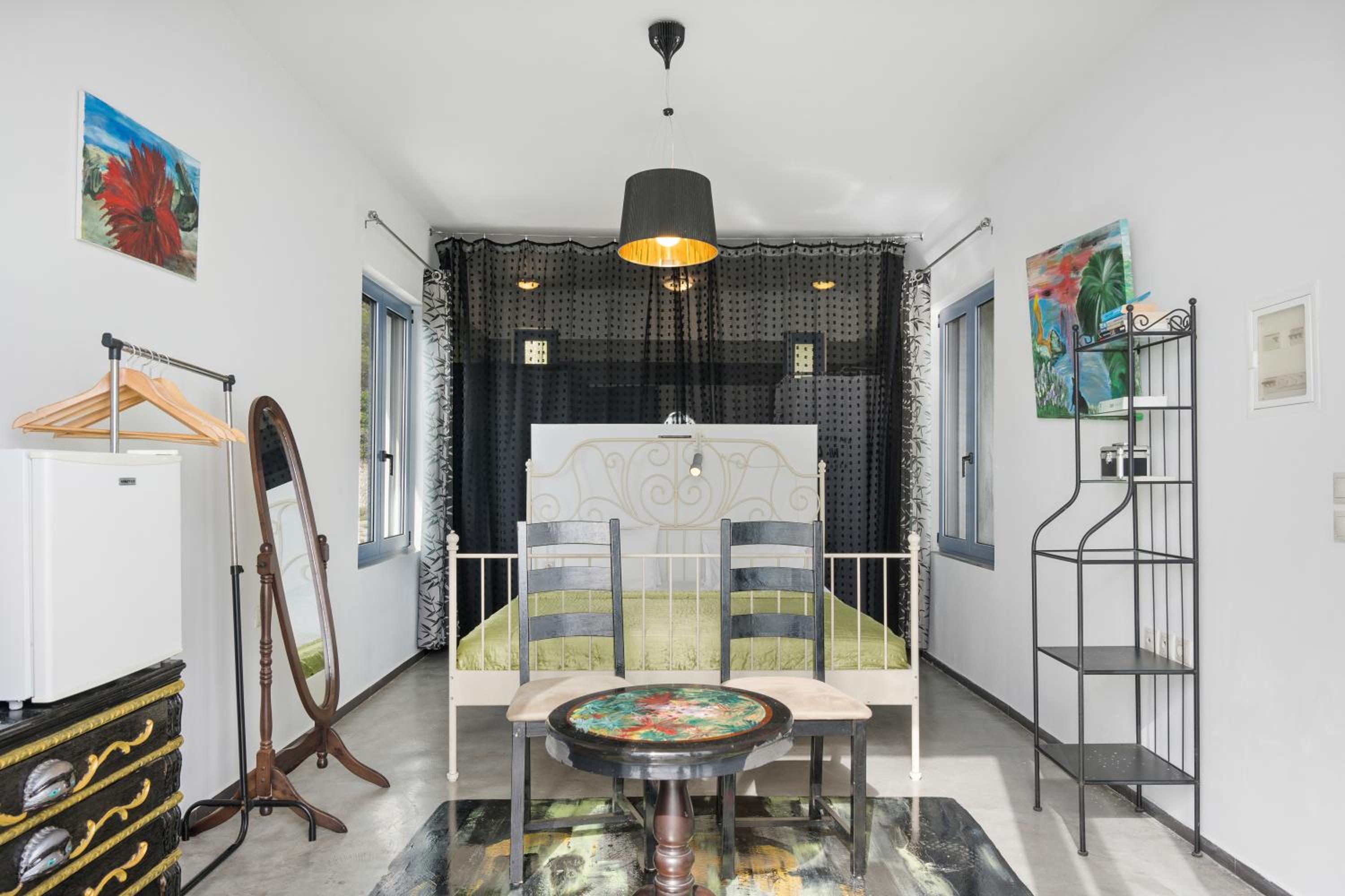 Very artsy place on top of the island with amazing sunset view and great organic breakfast!