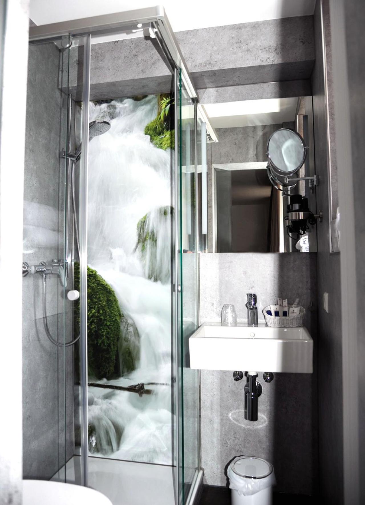 Glastüre + Fenster zum Badezimmer. (Warum????) Wenn man nachts aufs Klo muss, ist es taghell im Schlafzimmer. Blöd für den, der noch schläft. Mit Handylampe bringt nichts - das Licht geht automatisch an und aus! Es teilt sich auch nicht jeder mit seinem Partner das Zimmer . Manche sind auch mit Freunden, Kollegen etc. unterwegs. Die können dann, bei allem was man so im Badezimmer macht, zuschauen. Nicht gut durchdacht. Schade.