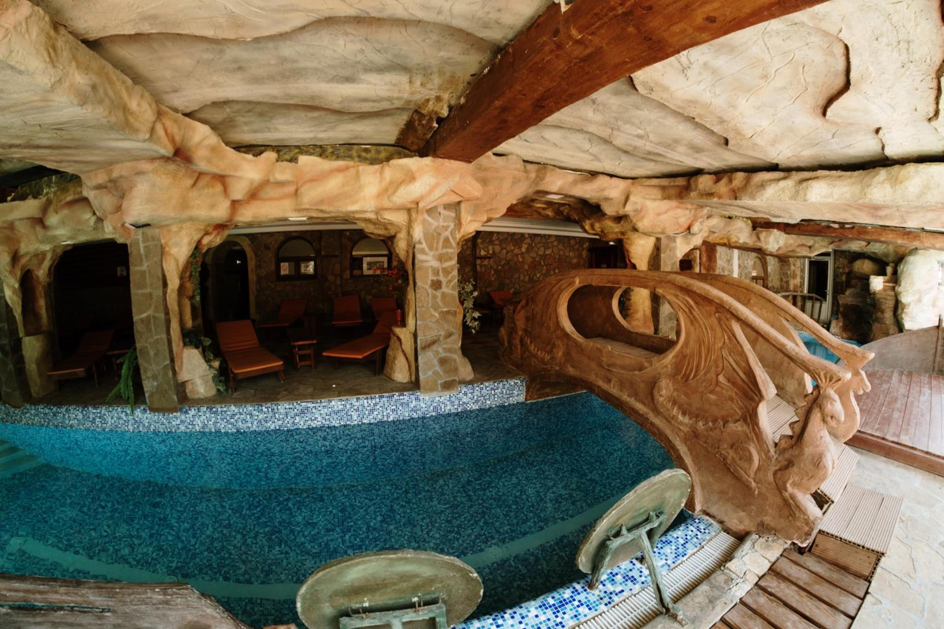 Ultimate Relaxation: Indulge in a meal at the tavern, sip a drink at the bar, and unwind on the terrace. The hotel also features a spa and wellness area with saunas and hot tubs, as well as aqua park facilities at the pool area.