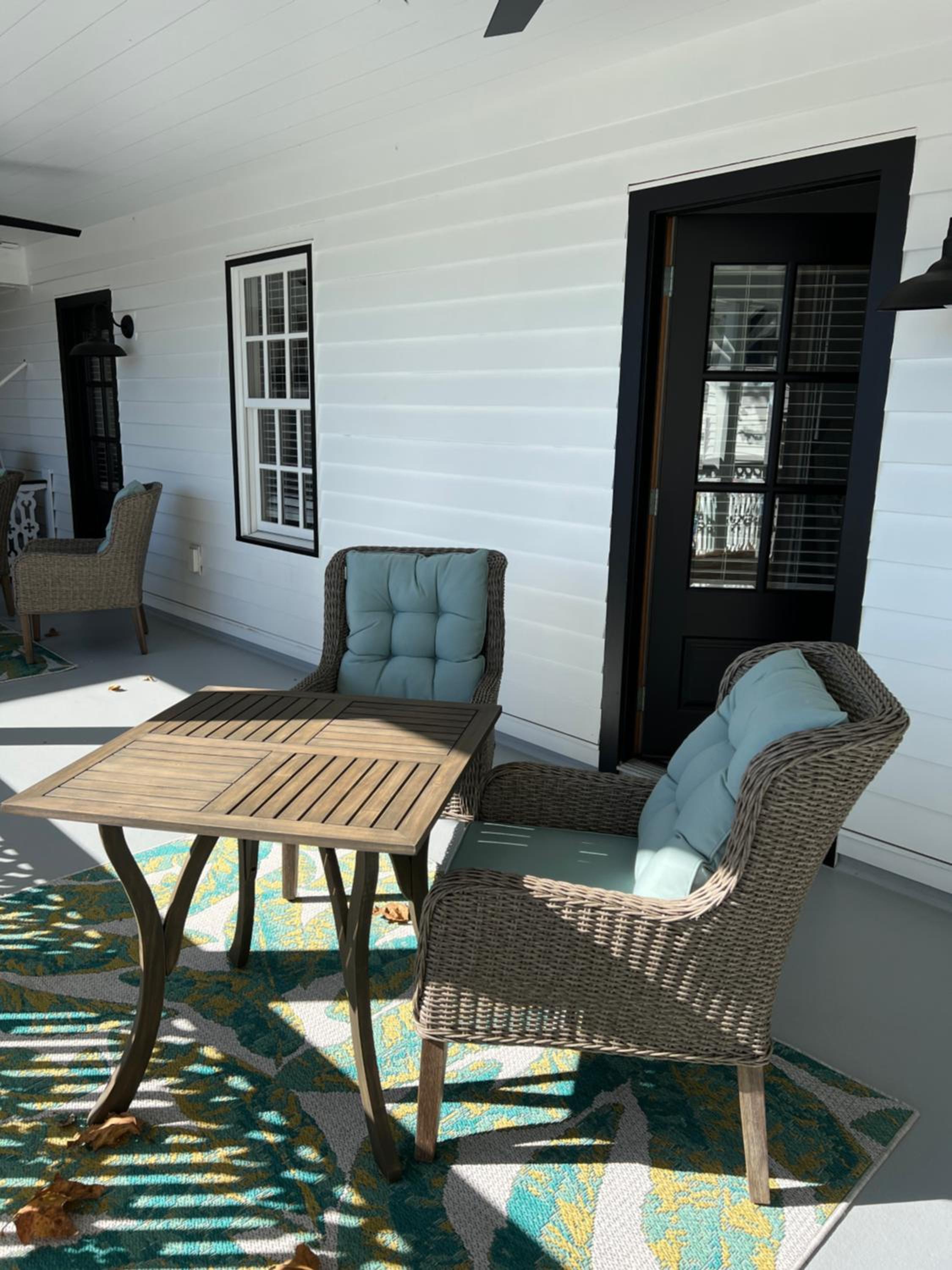 The outside balcony with our own rather secluded corner.