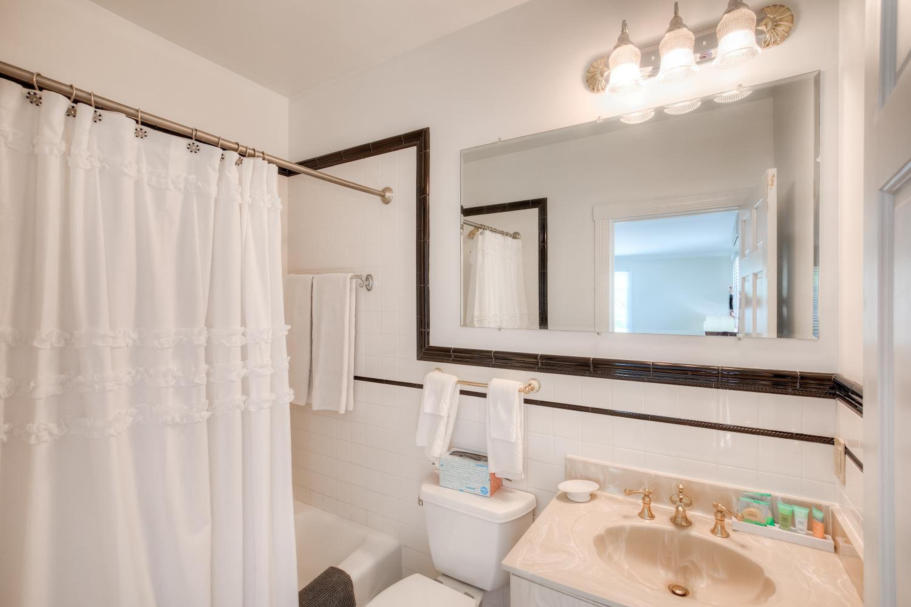 Elaine's Cape May offers a luxurious stay in Cape May, just steps away from Cape May Convention Hall and Emlen Physick Estate. The hotel boasts elegant rooms with modern amenities, including flat-screen TVs and private bathrooms. Some rooms even feature a cozy seating area for relaxation.