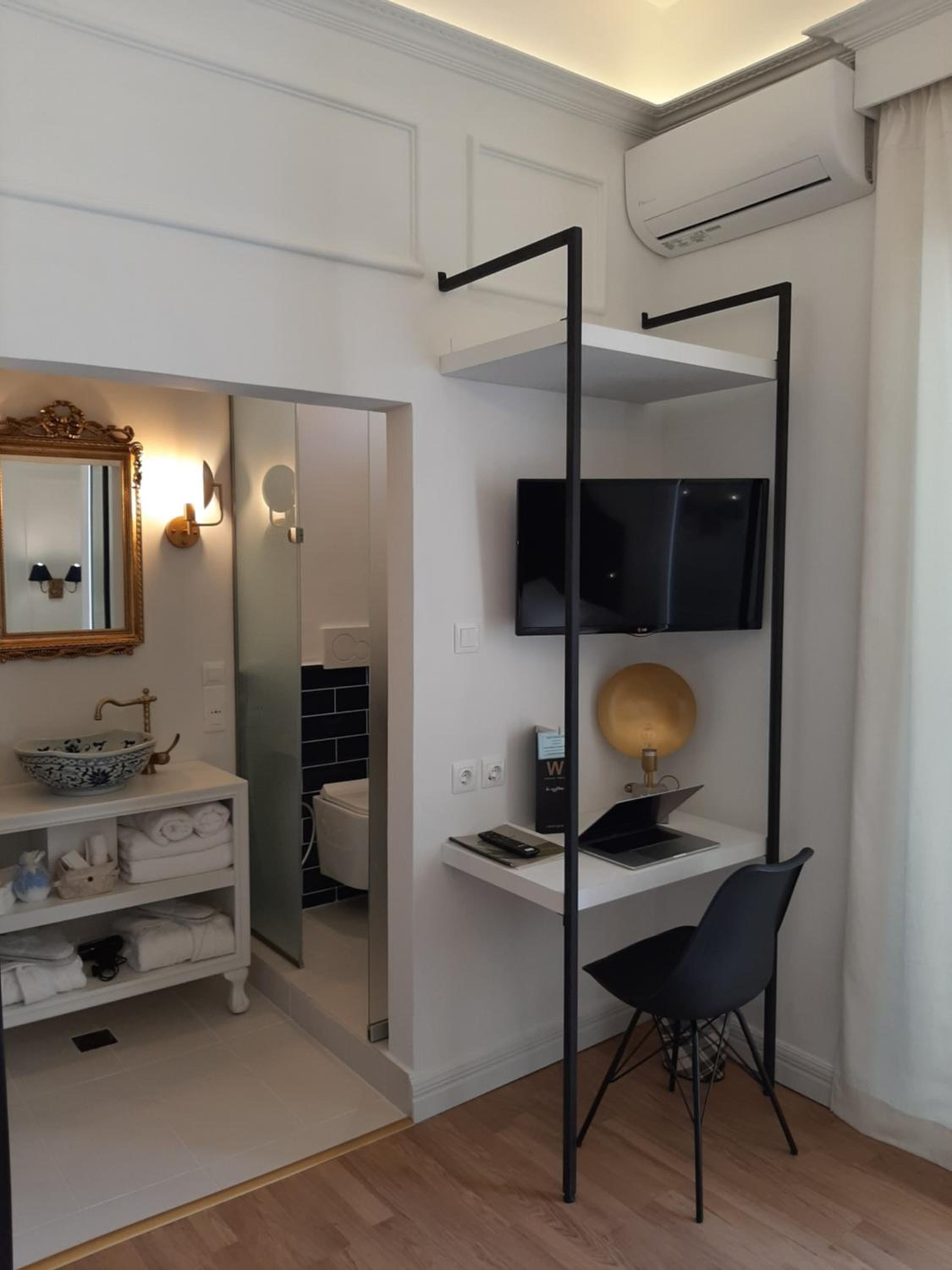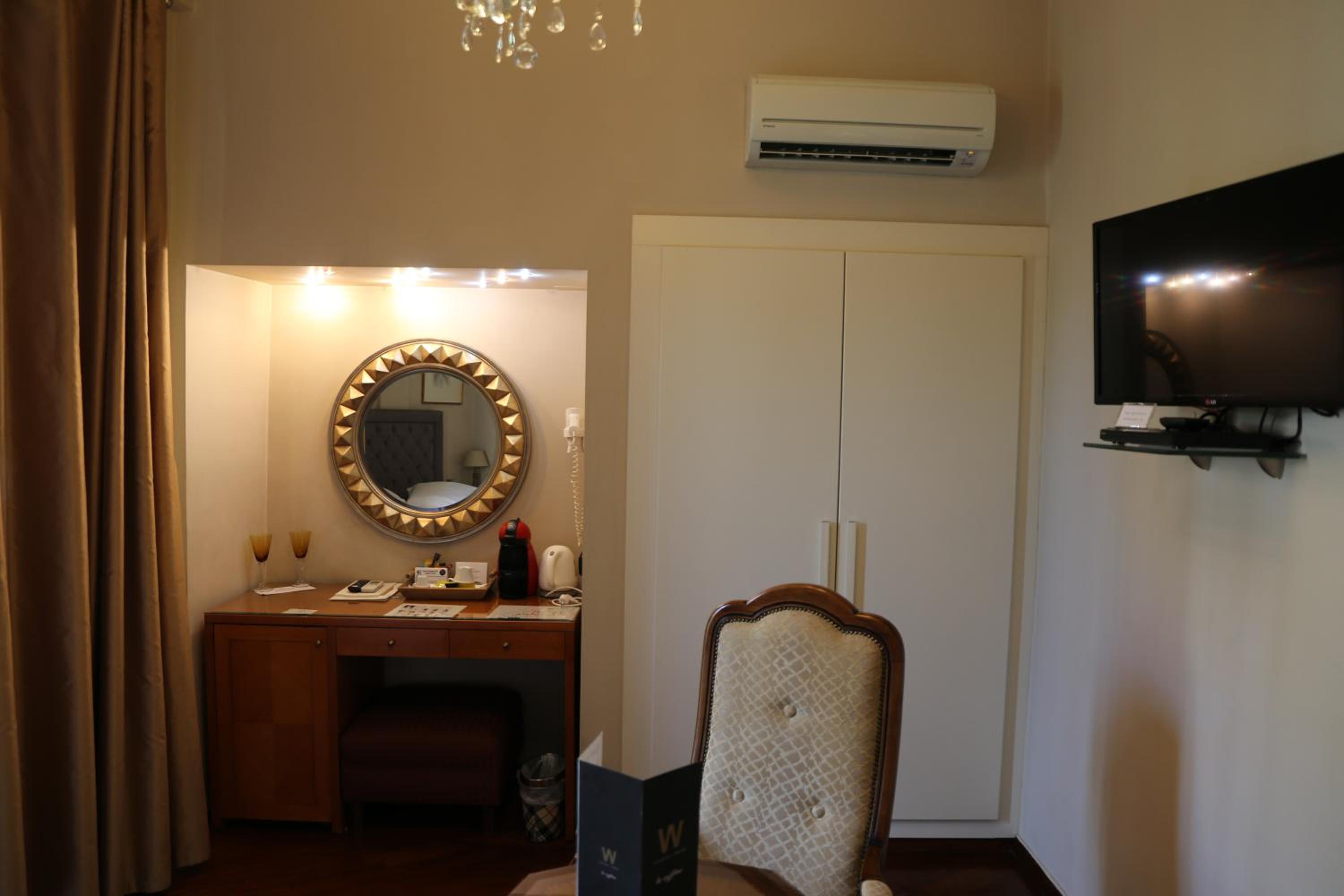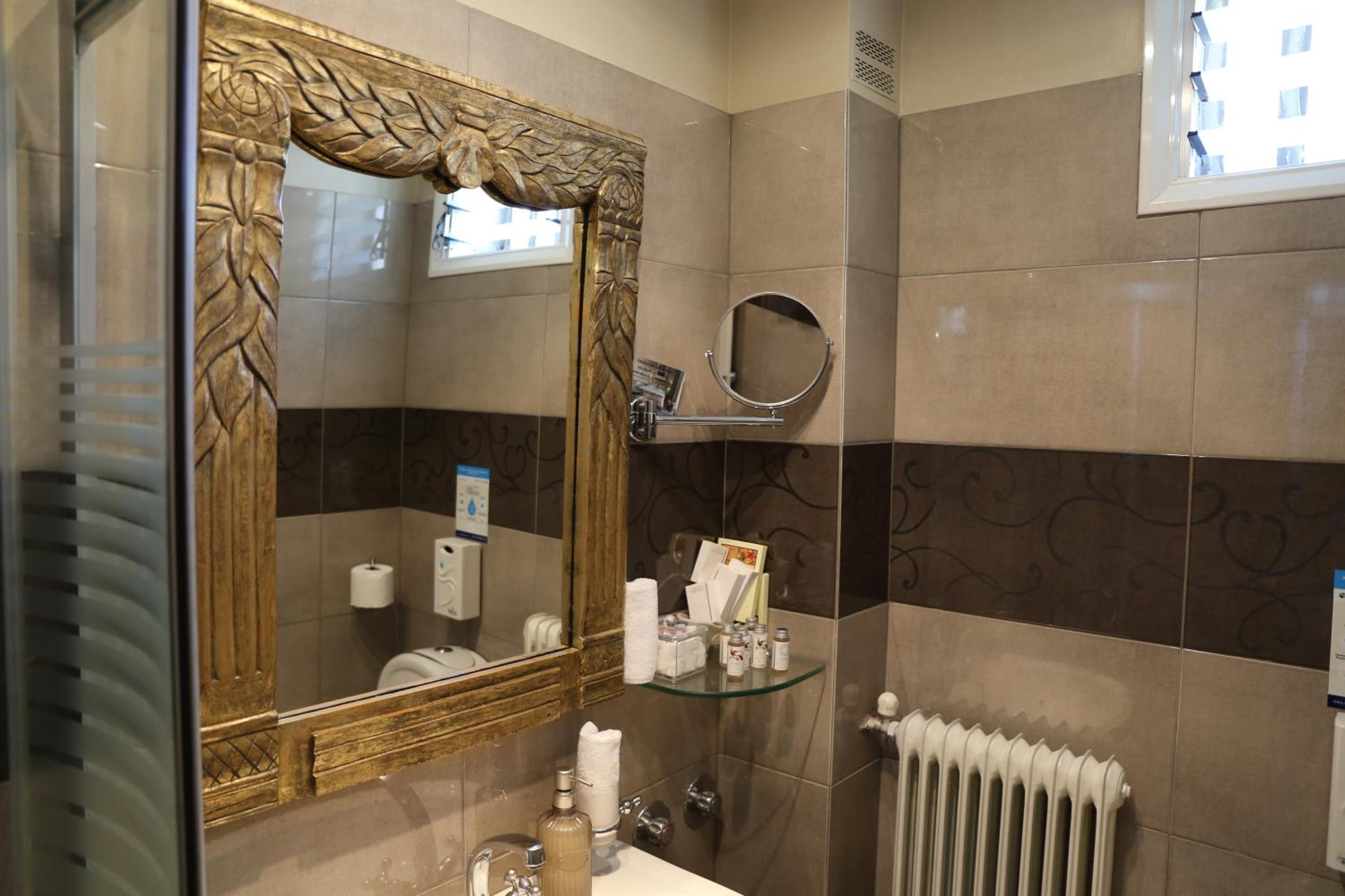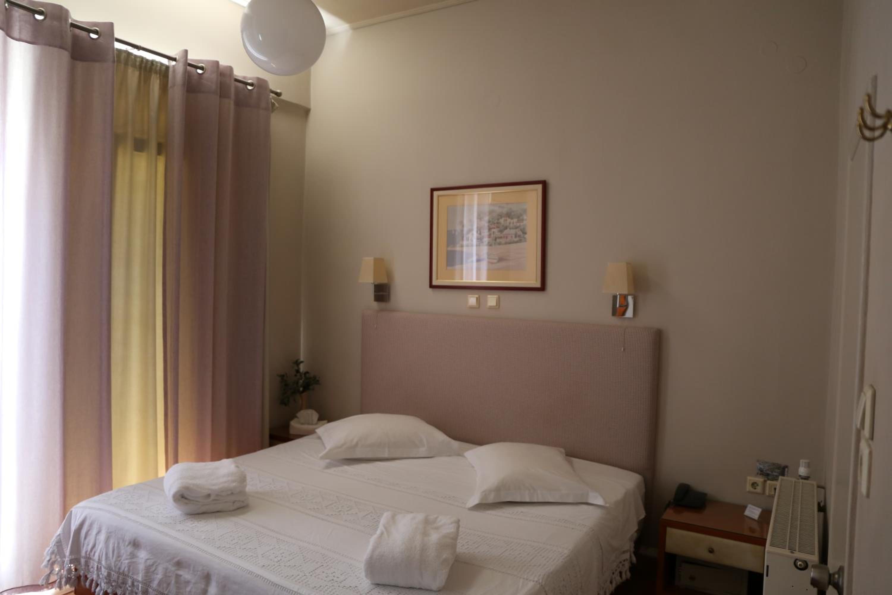 Esperia Boutique Hotel in Agrinio offers elegant rooms with modern amenities, including a flat-screen TV and a coffee machine. Indulge in comfort with provided bathrobes and slippers for a relaxing stay.