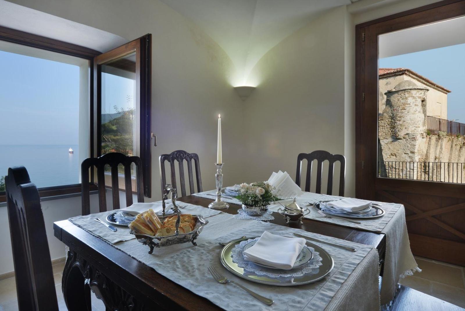 This is a little gem of a hotel. An old monastery that is simply and beautifully done. The staff go out their way to make you feel at home. Breakfast was simple but good served on the terrace overlooking the sea. Dinner one evening was outstanding--beautifully served and delicious. Wish we could have stayed a week!!!