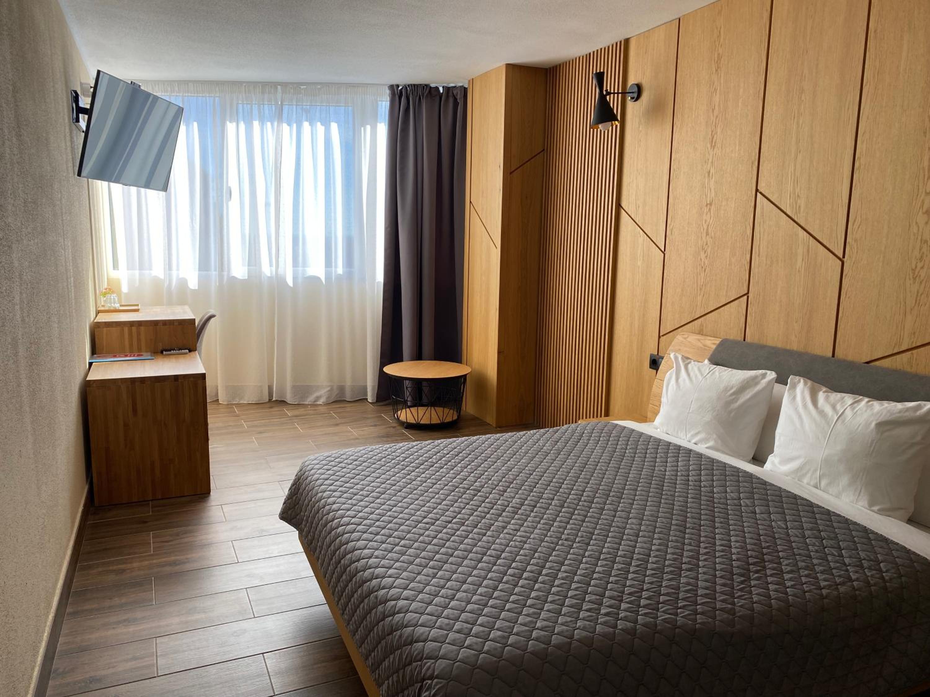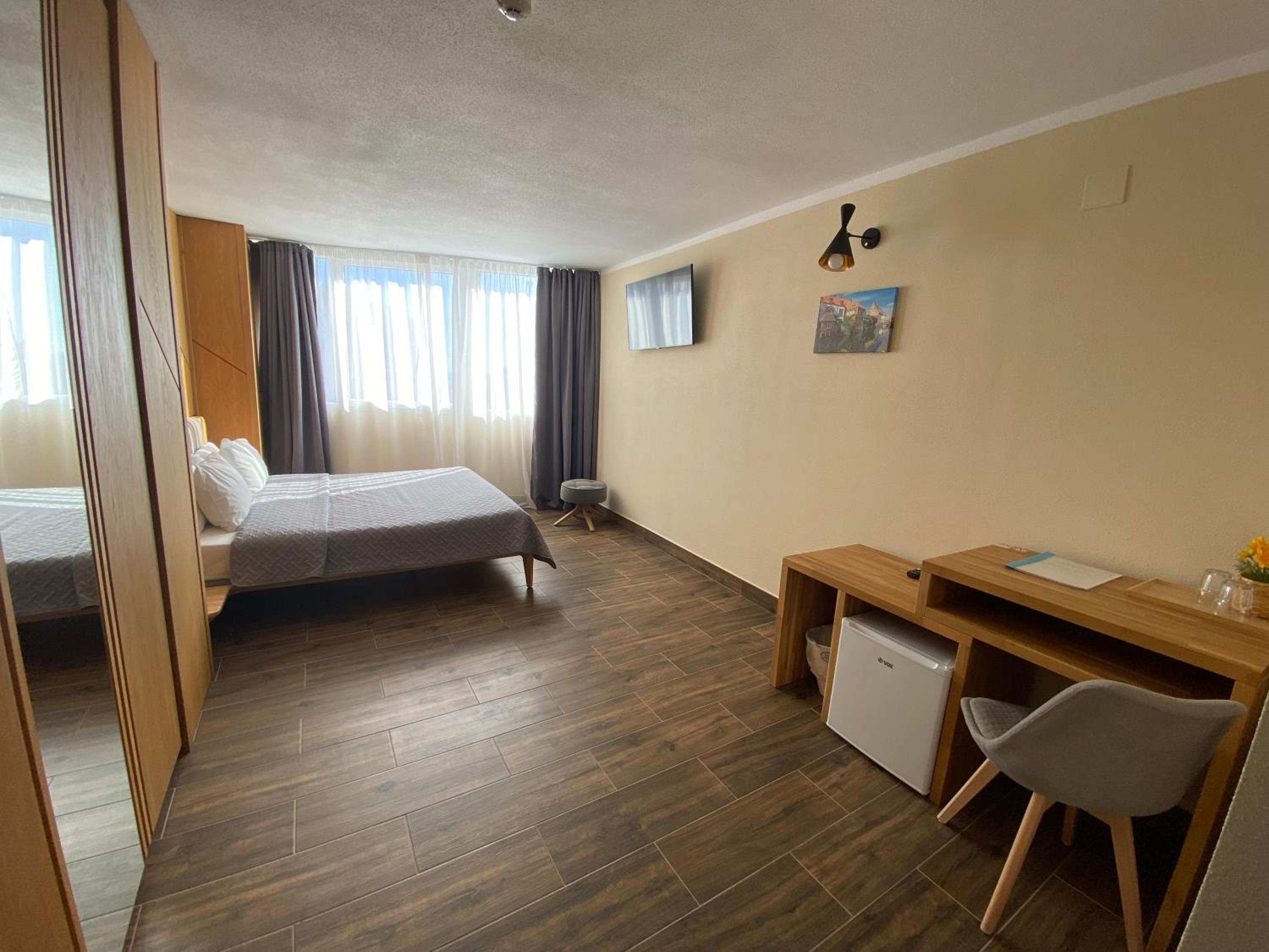 Wszystko co potrzebne znajduje się w pokoju. Klimatyzacja, mała lodówka, suszarka do włosów, sejf, naczynia i sztućce, na zewnątrz czajnik i mikrofalówka. W hotelu czysto. Obsługa bardzo miła i pomocna. Polecam!