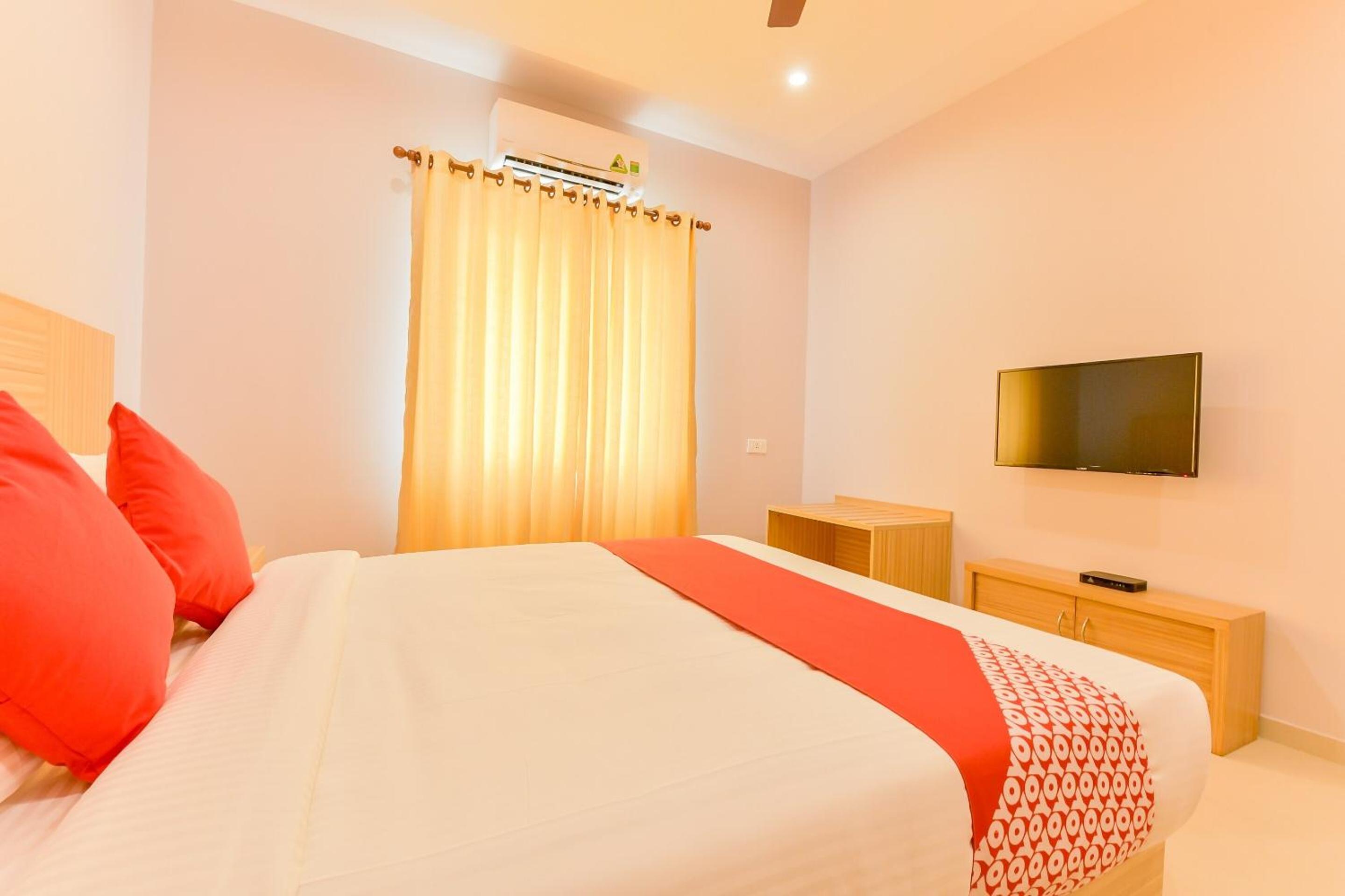 Experience comfort and convenience at Capital O Edassery Blue Bells, offering air-conditioned rooms with free WiFi and a shared kitchen. Each room is equipped with modern amenities including a TV and private bathroom, ensuring a relaxing stay.