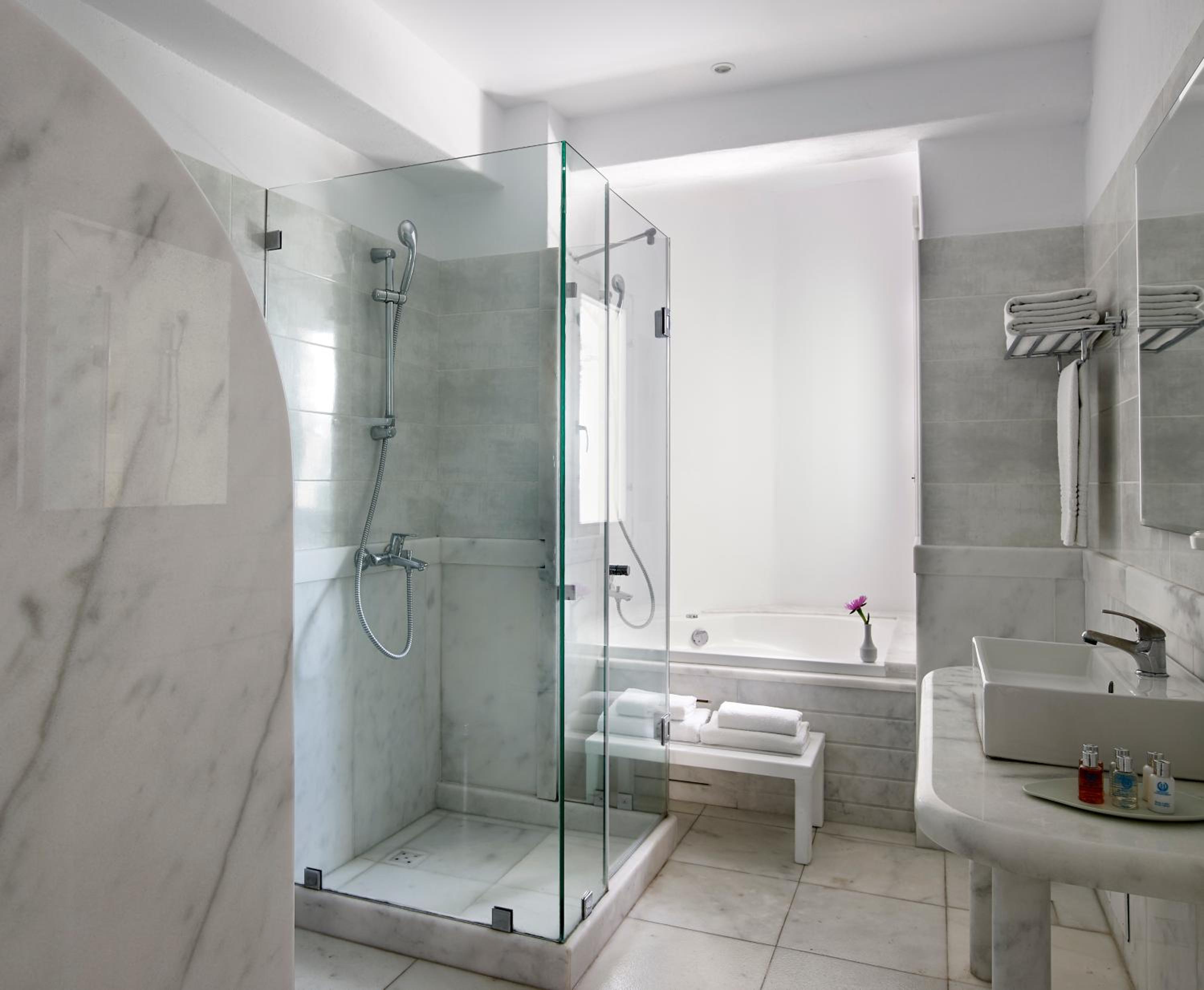We treated ourselves to a villa with a pool and loved it! It felt like a little hideaway with amazing views. The staff were lovely and kind. They helped us with getting our luggage to and from the room, and assisted with transfers to the port. The property also offers a shuttle bus to and from town.