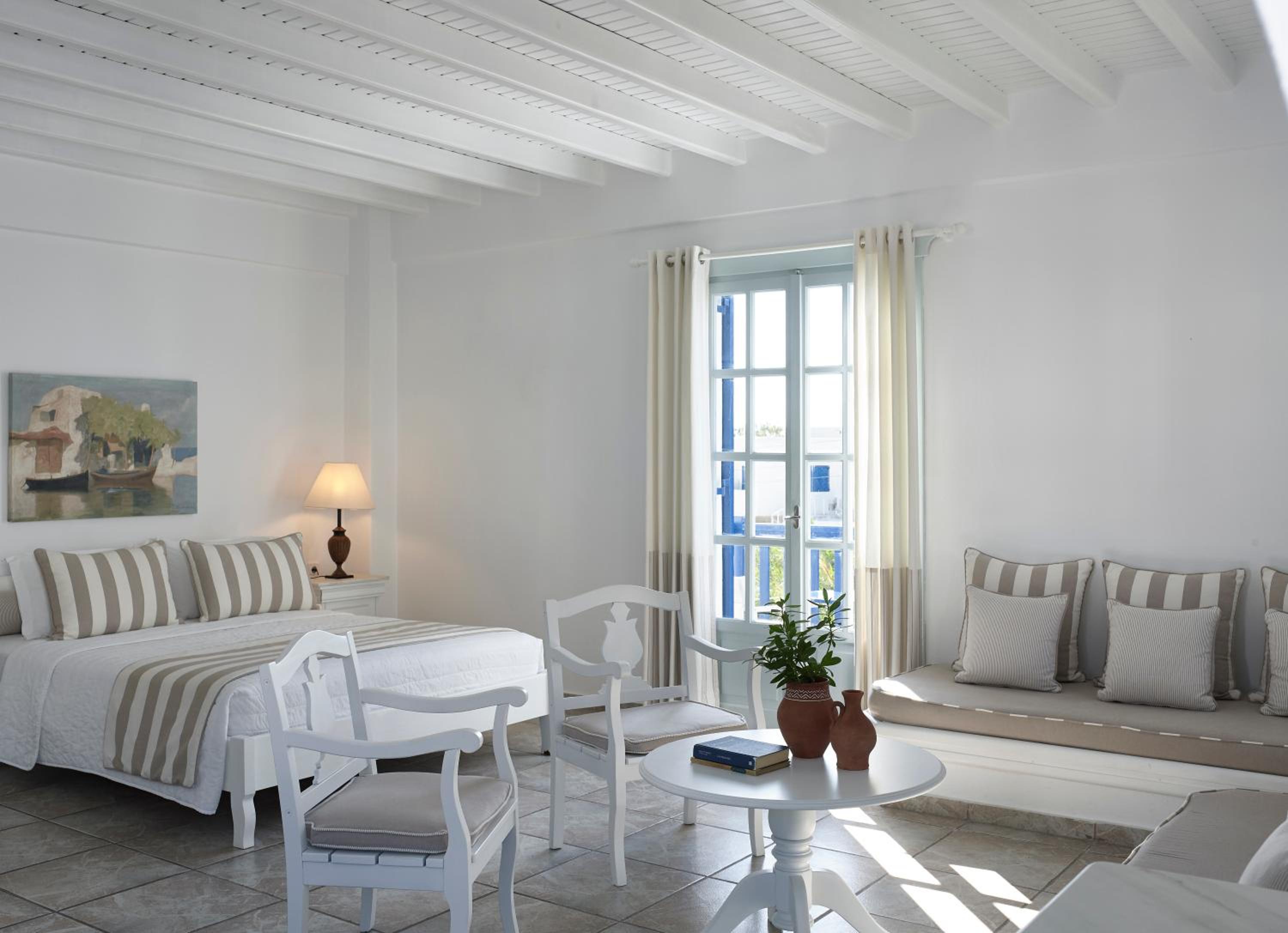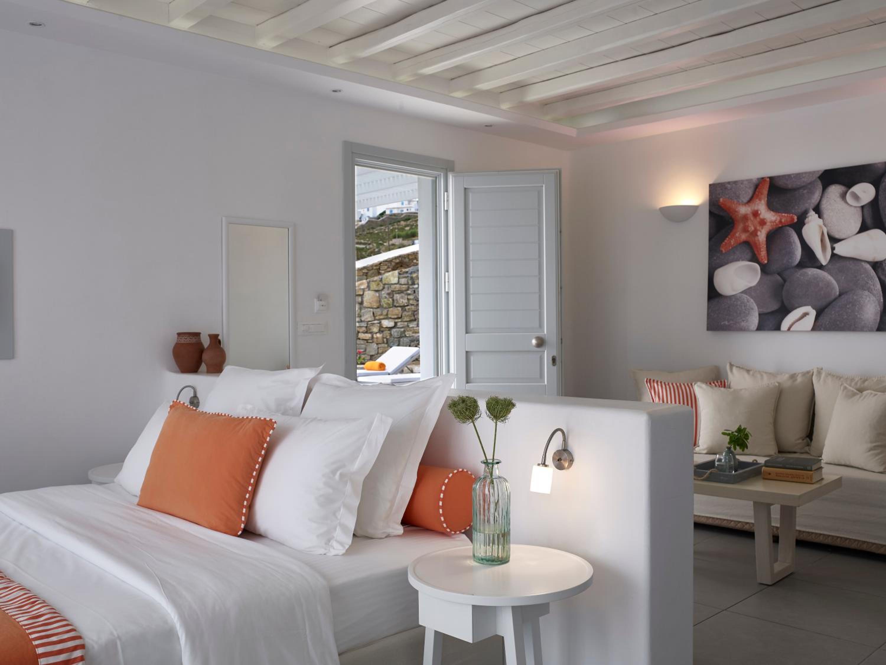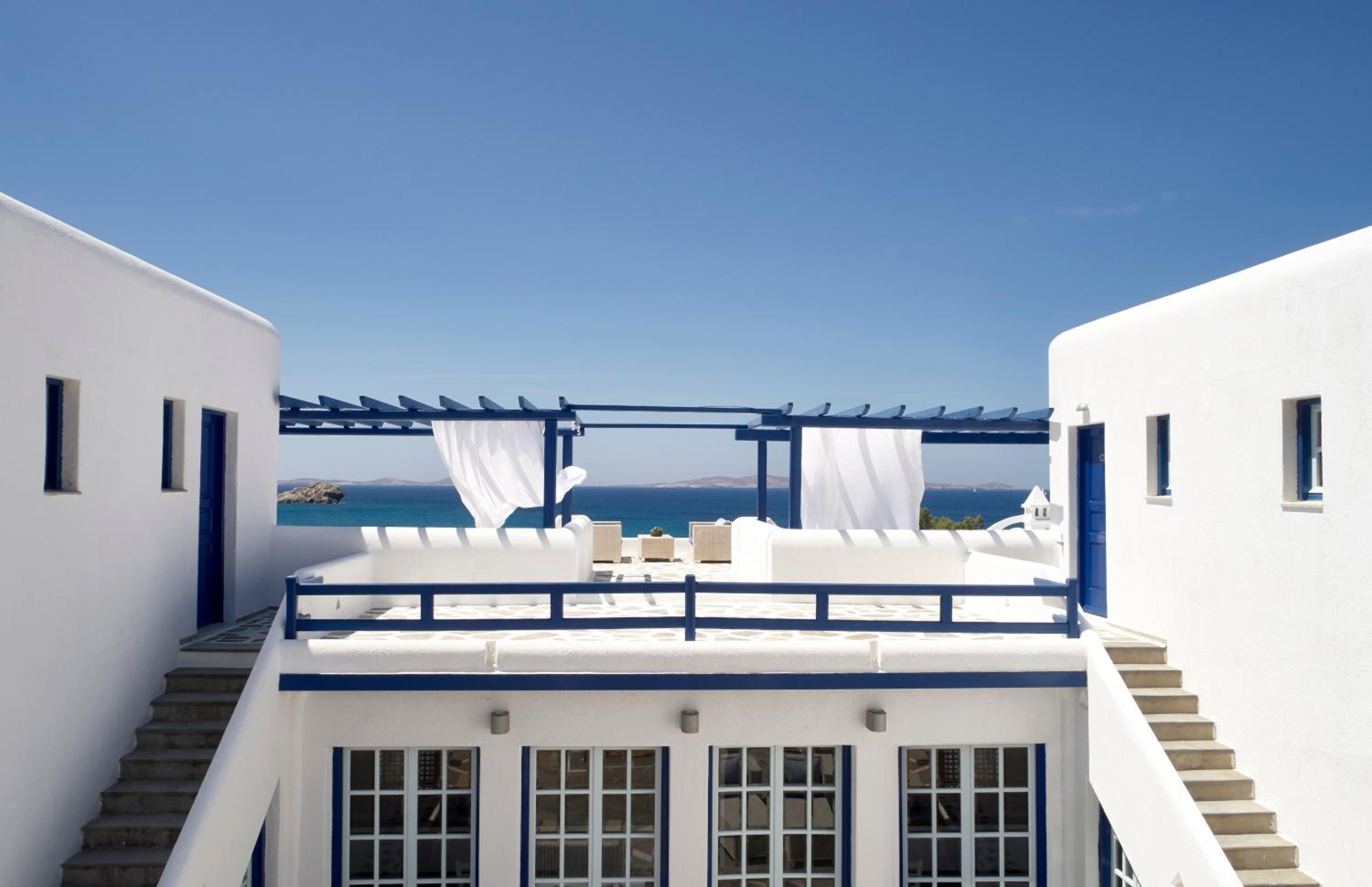 Benefit from the free shuttle service to Mykonos Town, explore the nearby pebbled beach, and take in the natural beauty. With 24-hour room service, complimentary parking, and proximity to the airport and port, San Marco Hotel and Villas ensures a seamless and enjoyable stay.
