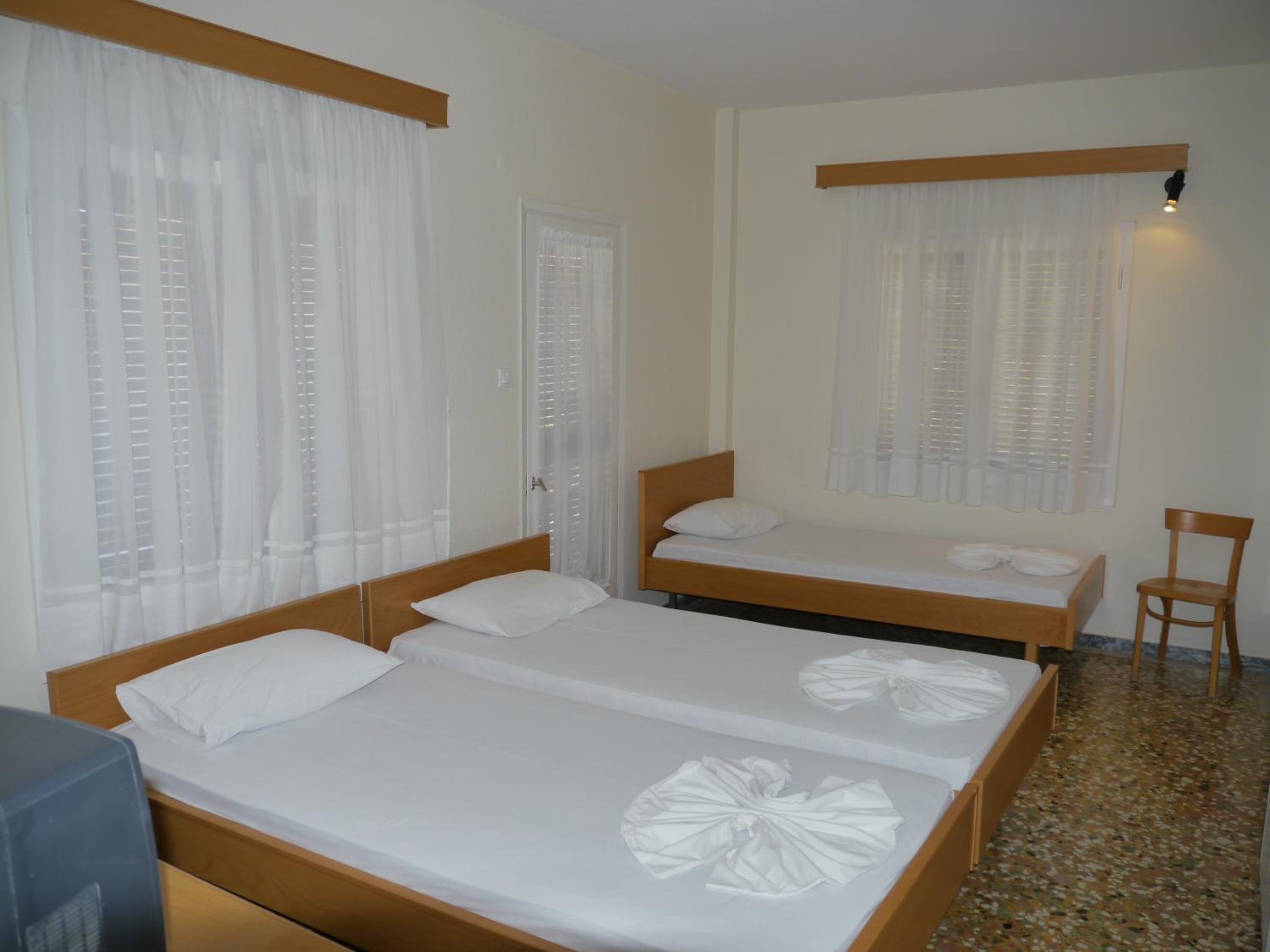Comfortable Accommodation: Stay in air-conditioned rooms with private balconies, offering views of the Aegean Sea or the garden. Each room is equipped with a TV, fridge, and a private bathroom.