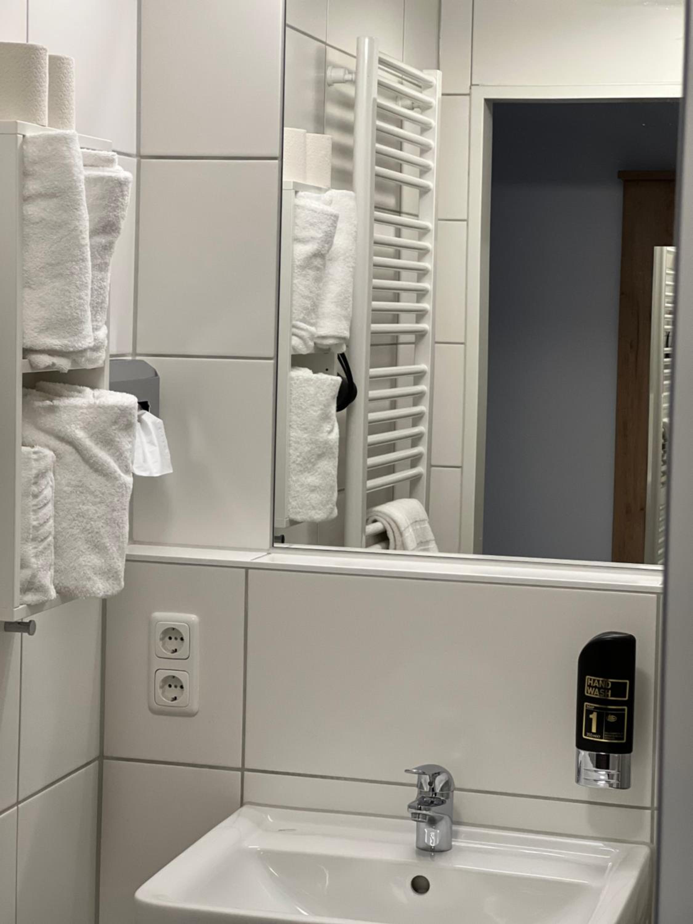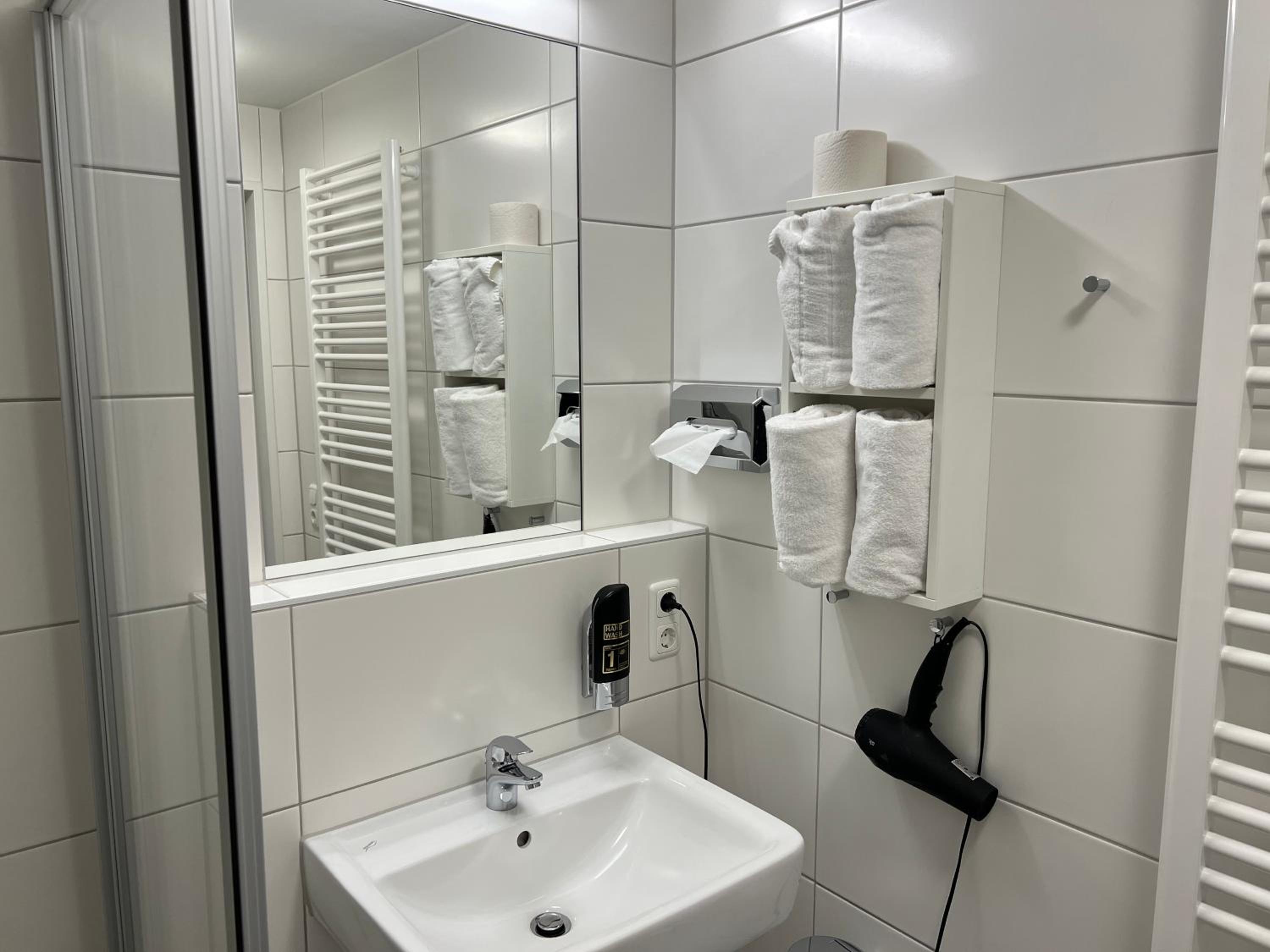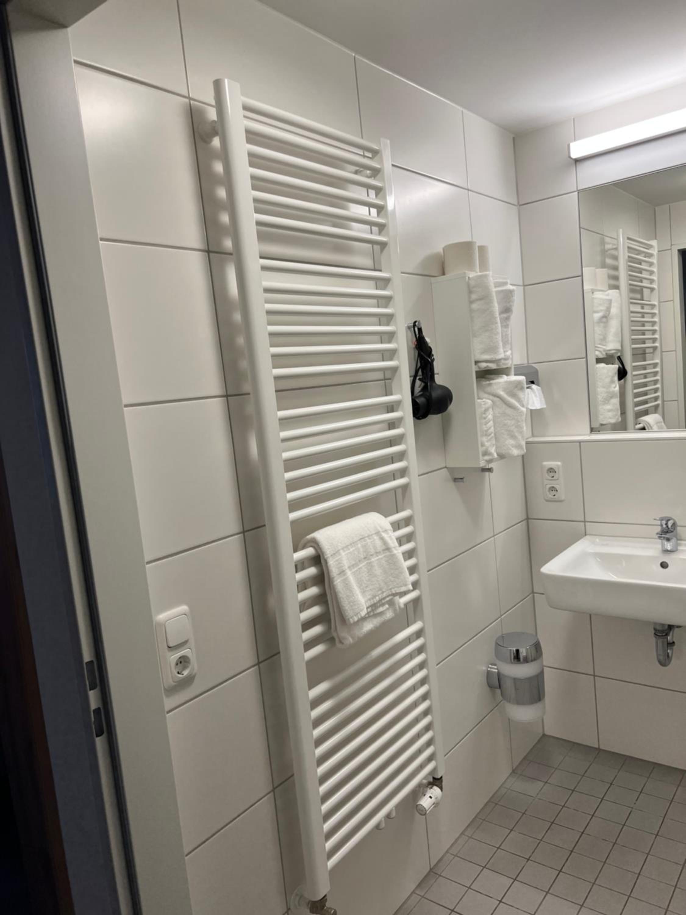 The rooms at HHotel Augsburg feature private bathrooms, ensuring a comfortable stay for all guests.