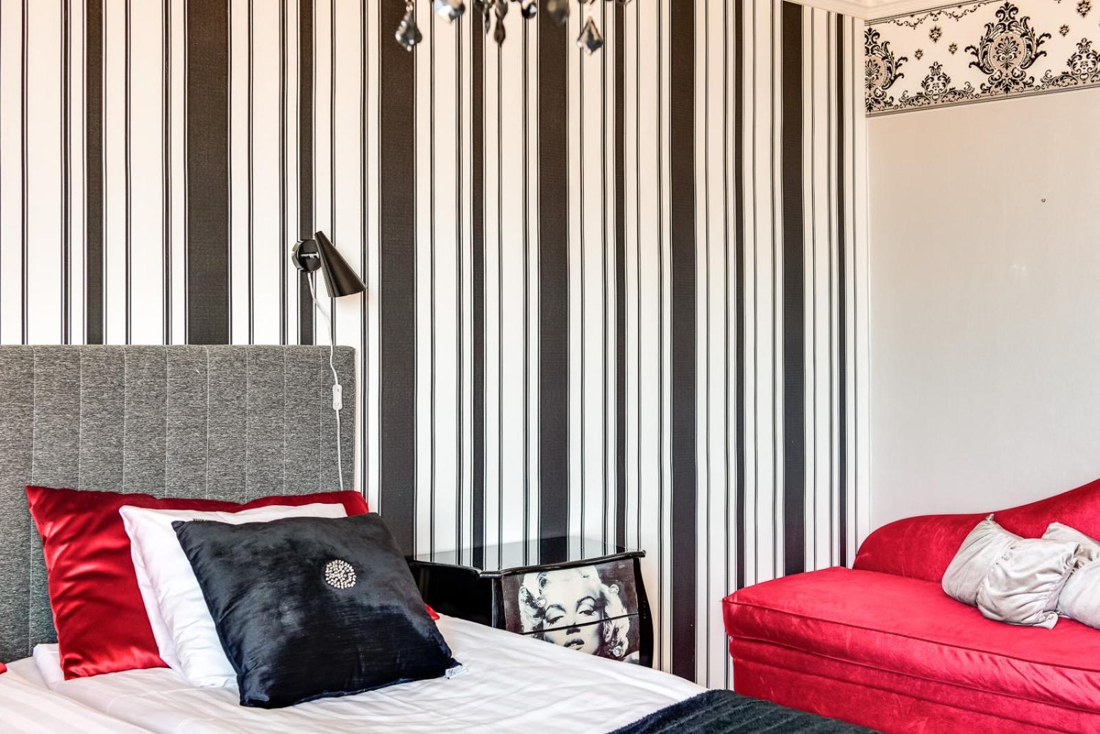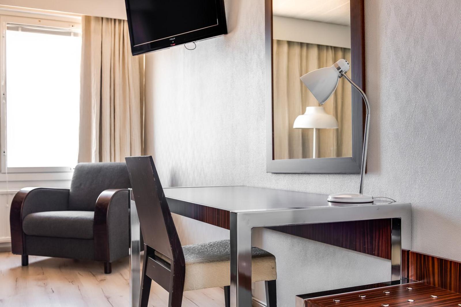 Ikkuna on ilta-aurinkoon ja hellekelillä huone oli todella kuuma. Huoneessa oli vain pöytätuuletin, jota ei äänen vuoksi voi pitää yöllä käynnissä. Huoneessa ei myöskään ollut pimennysverhoja, joten meni pitkälle yöhön, että sai nukahdettua ilta-auringon vuoksi.