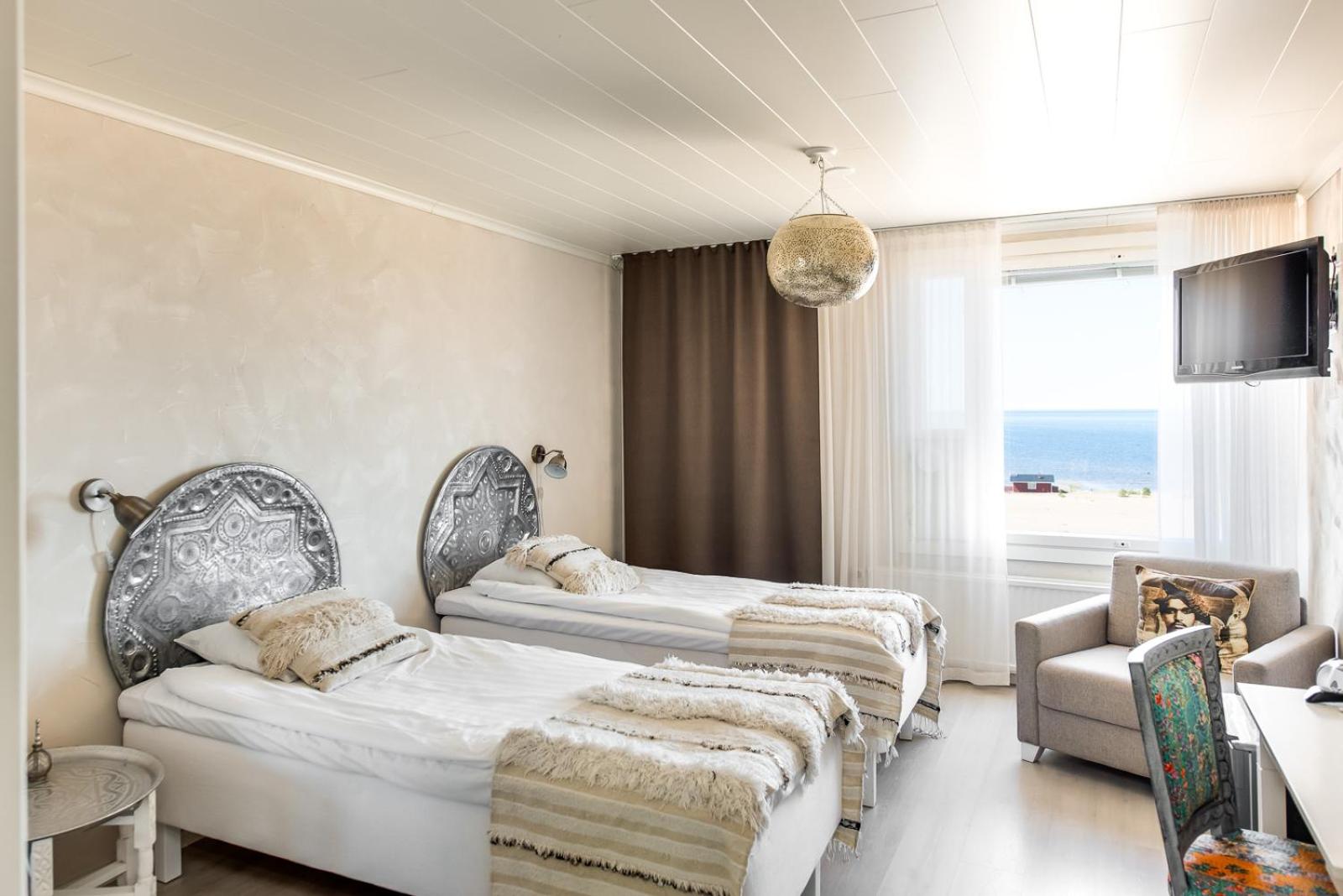 Hotel Rantakalla in Kalajoki Hiekkasärkät offers a perfect blend of relaxation and adventure. Spectacular Views and Comfortable Rooms await you with sea views, cable TV, and modern amenities. Enjoy a hearty buffet breakfast and unwind at the seasonal bar. Exciting Adventures Await with activities like canoeing, hiking, and snowmobile safaris. Whether it's a leisurely day at the beach or a thrilling boat tour, there's something for everyone. Convenient Location for Leisure with golf, water parks, and spas just a stone's throw away. Book now for an unforgettable seaside getaway at Hotel Rantakalla.