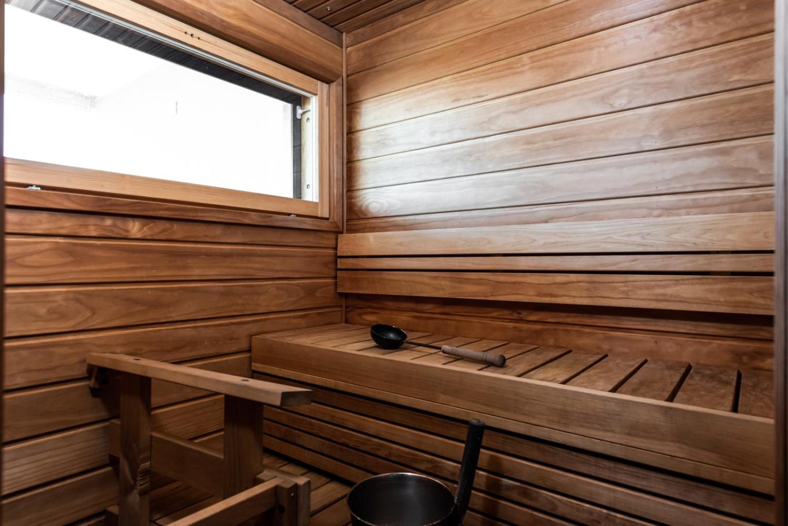 Huoneen ainutta ikkunaa oli pakko pitää auki ja ikkunan takana oli miesten saunan Terassi. Ikävää yrittää nukuttaa taaperoa kun ikkunan takaa kuuluu ukkojen meteliä niin myöhään asti.