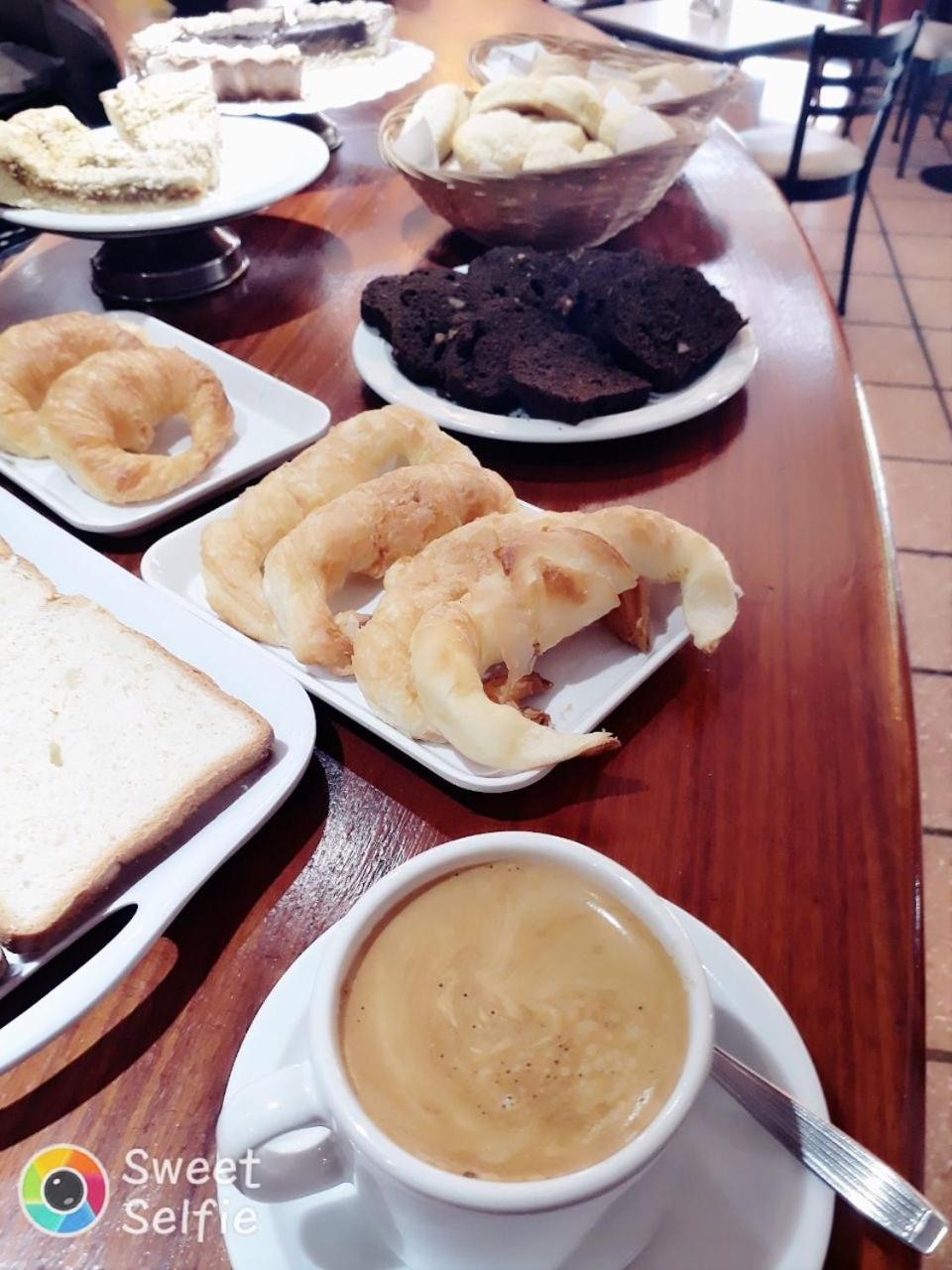 El desayuno bueno, saludable, quizás podrían incrementar jamón, queso para acompañar sus ricas medias lunas, que es lo típico de ese hermoso país.