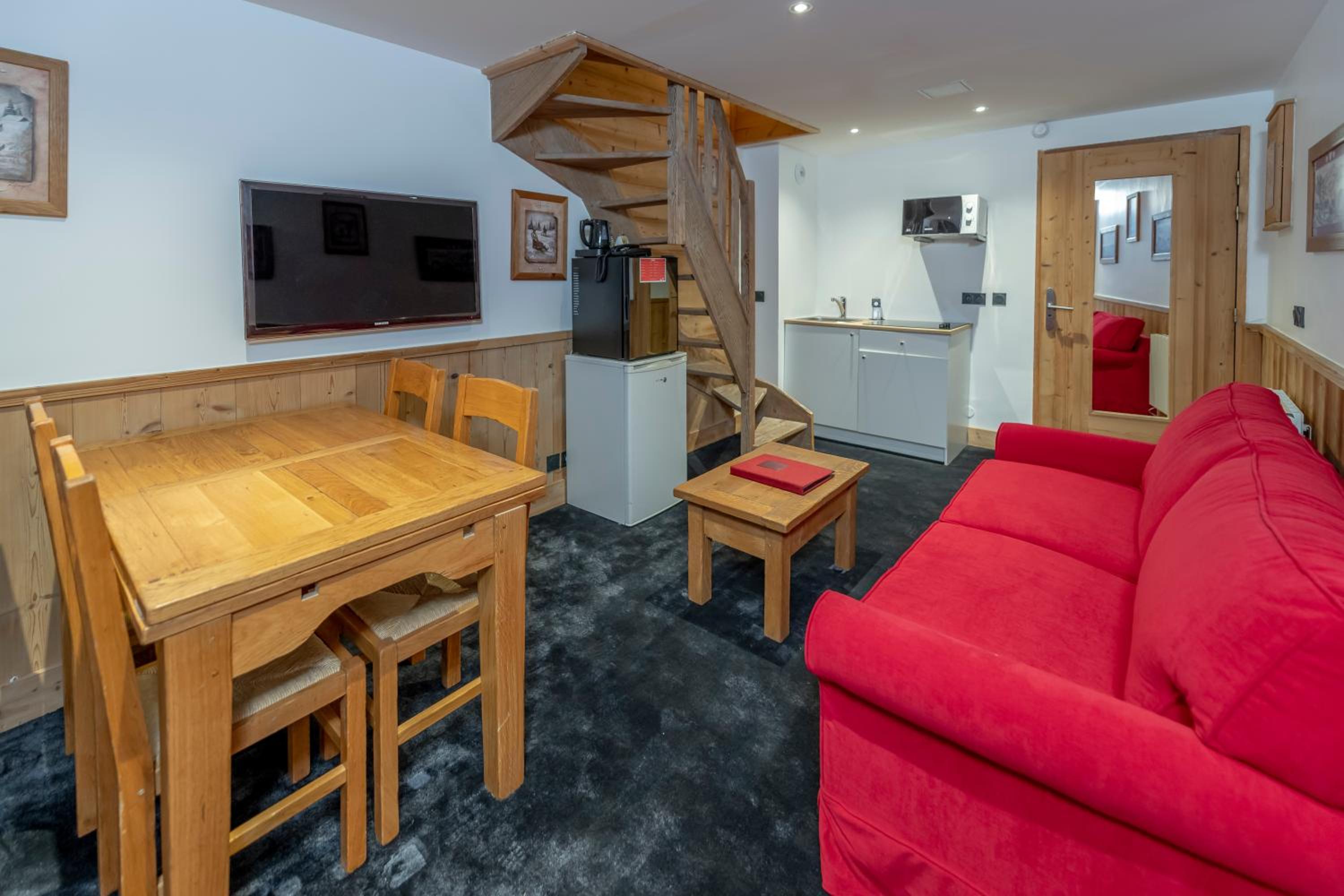 In winter, for half-board bookings, the dinner : You choose your 3-course menu from the daily selection: 2 starters (1 soup / 1 starter), 2 main courses (1 meat or fish / 1 Savoyard dish) and 2 desserts. Drinks not included. A vegetarian option is possible. Reservation essential.
