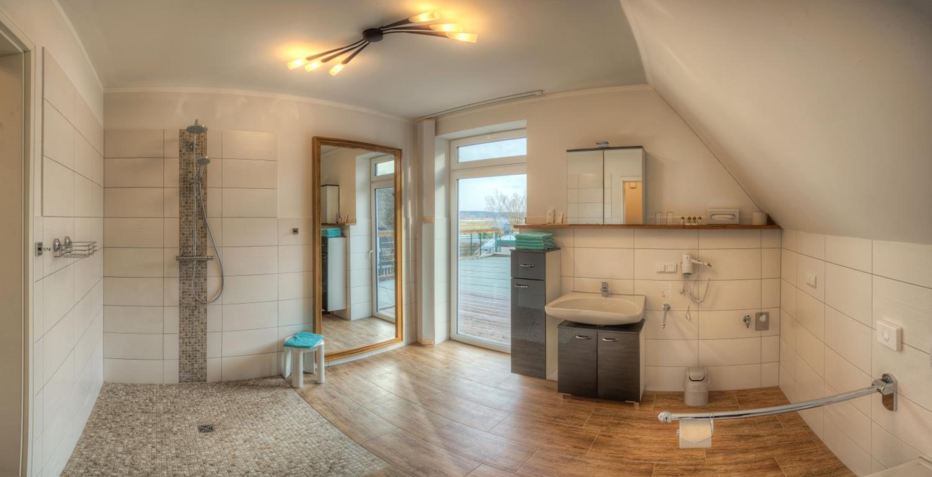 Der Treppenaufgang ist etwas eng, mit Gepäck schlecht zu realisieren.