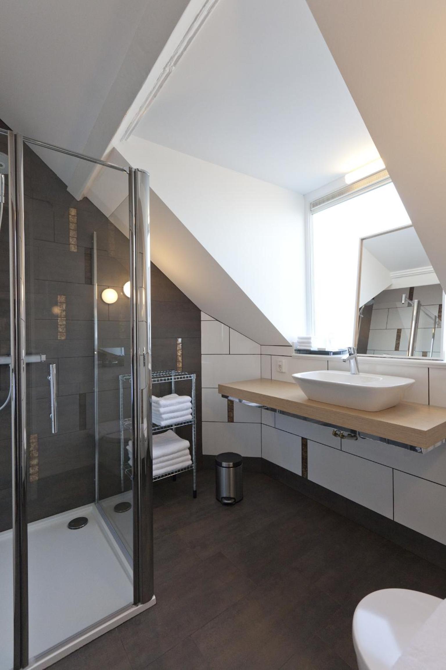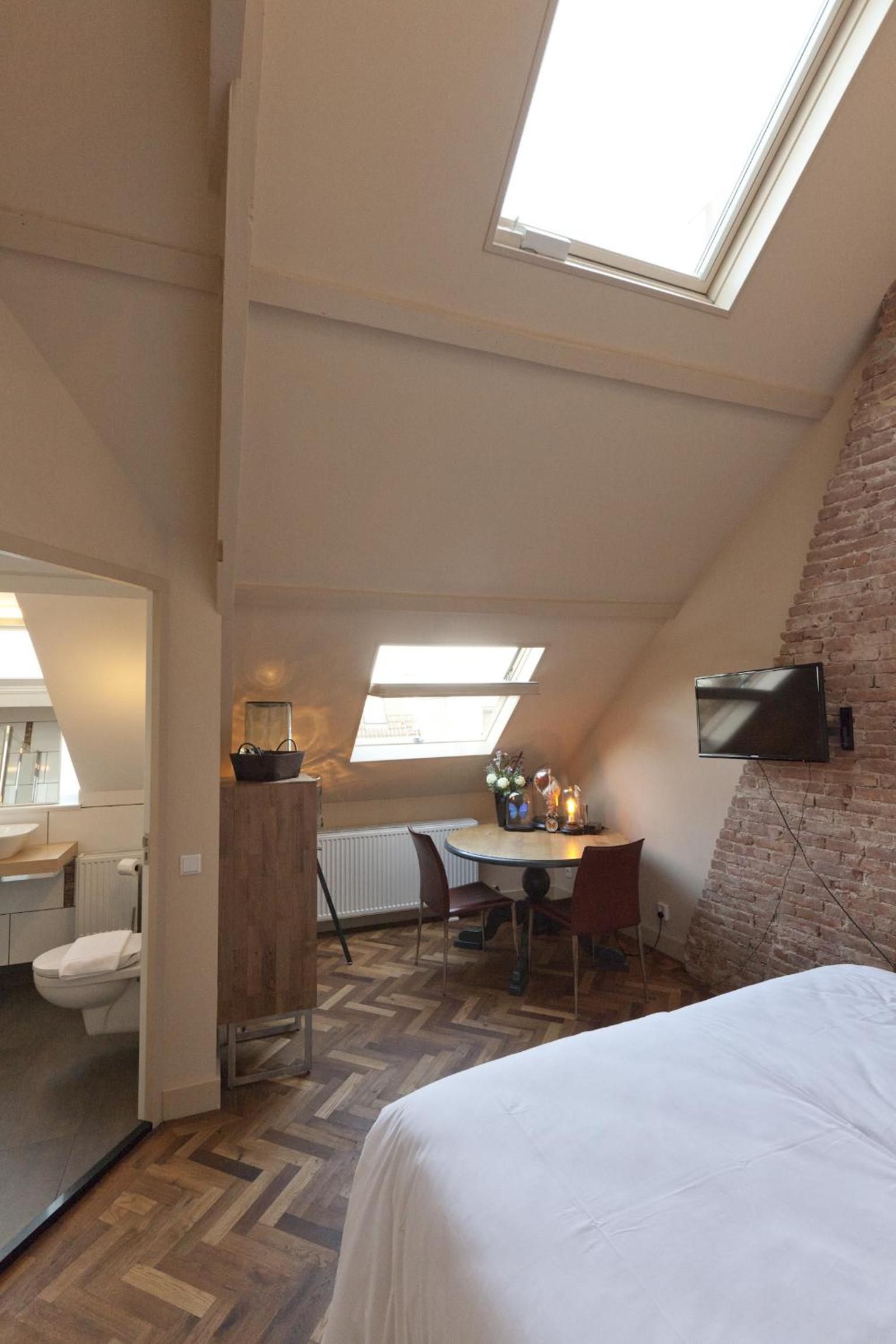 De locatie en het uiterlijk van de kamer. Mooie badkamer, fijne douche, heerlijk bed