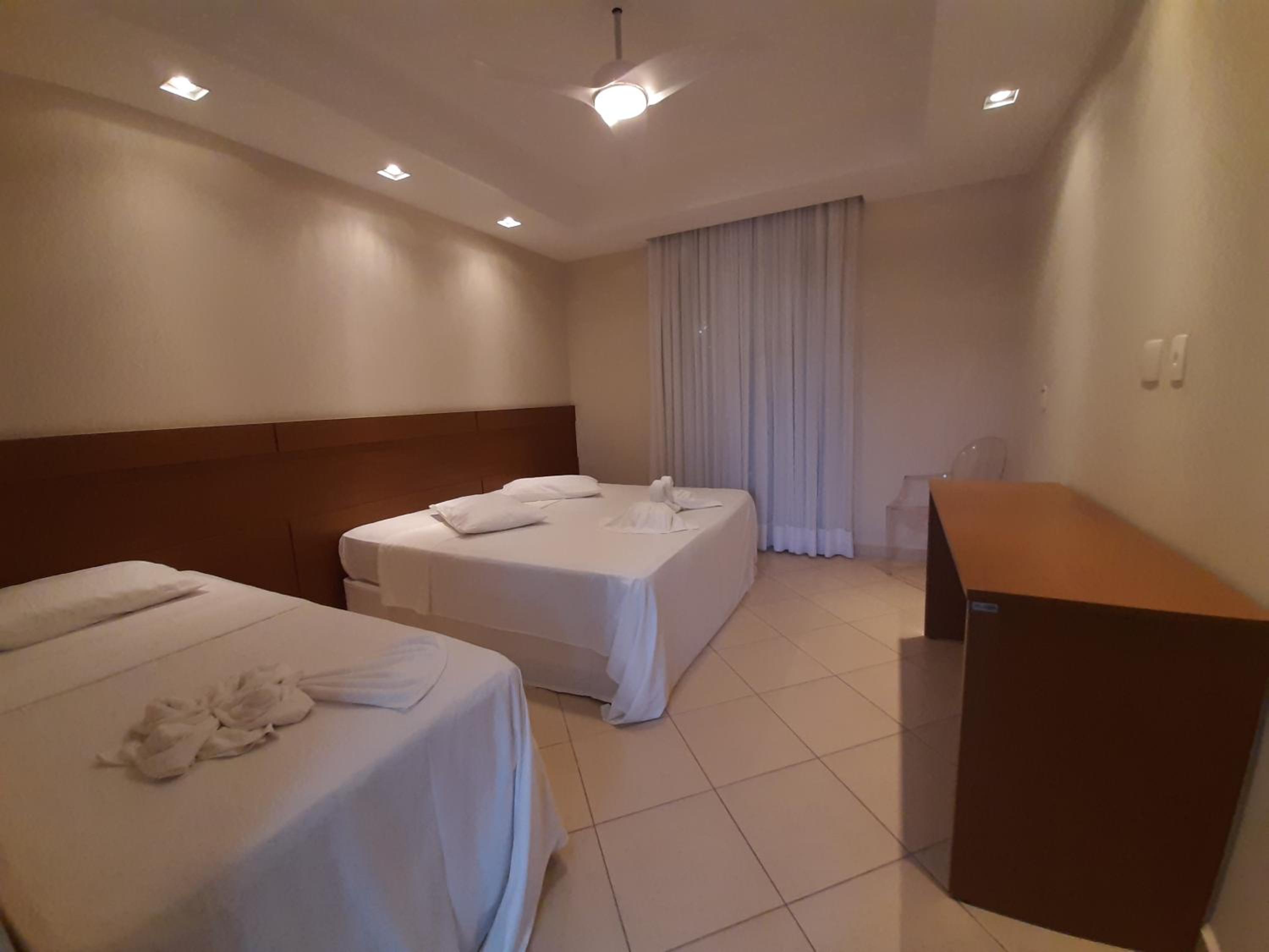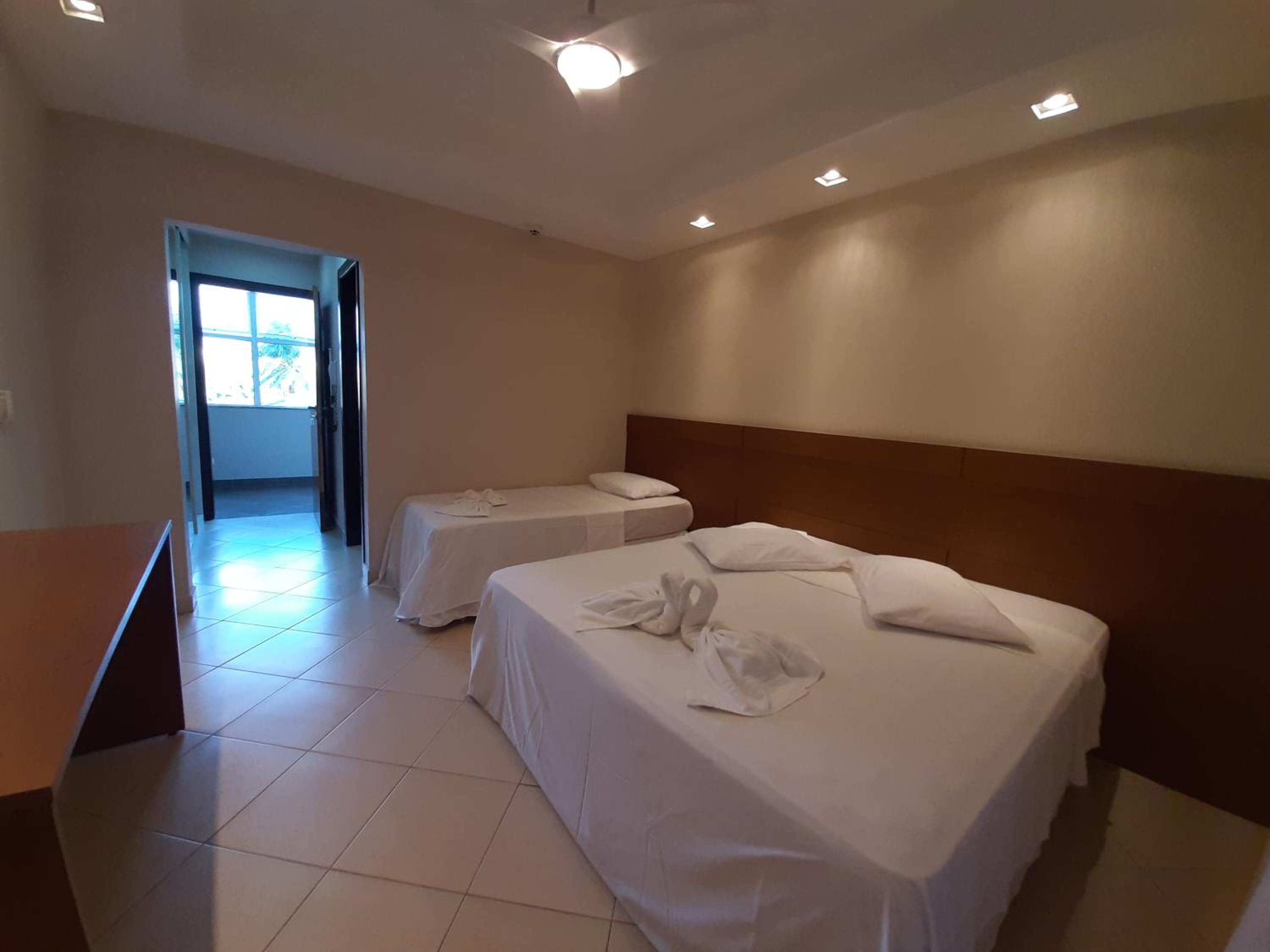 Quartos são arejados, porta de correr com tela para mosquitos, sacada e de frente para montanha e piscina. Obs: não tem ar condicionado, mas tem ventilador de teto bem forte. Não tem frigobar, dificulta para gelar águas. Tem armários com gavetas e alguns cabides e um espelho grande, adorei! Quarto bem espaçoso. Sugiro um pequeno varal na sacada para pendurar roupas molhadas.