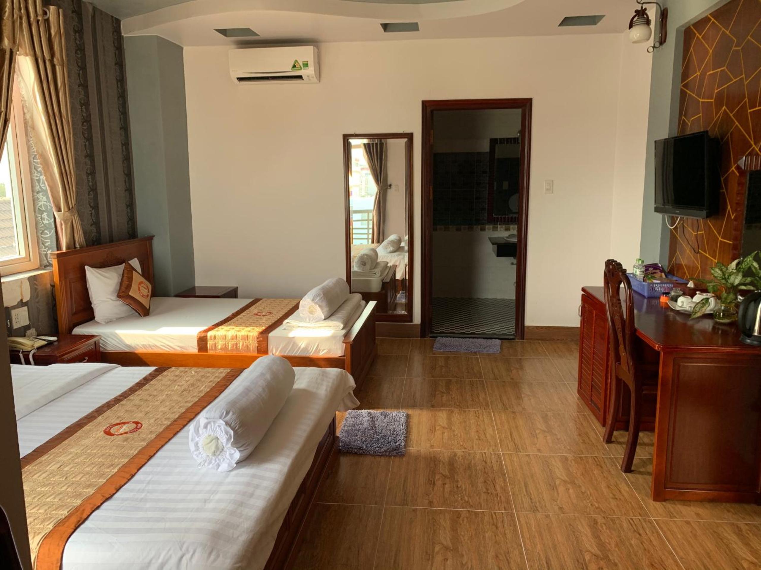 Discover a 2-star hotel in Rach Gia offering a 24-hour front desk, free WiFi, and cozy family rooms. Unwind in rooms equipped with air conditioning, flat-screen TVs, and minibars for a relaxing stay. Indulge in the convenience of a private bathroom with free toiletries and a soothing shower.