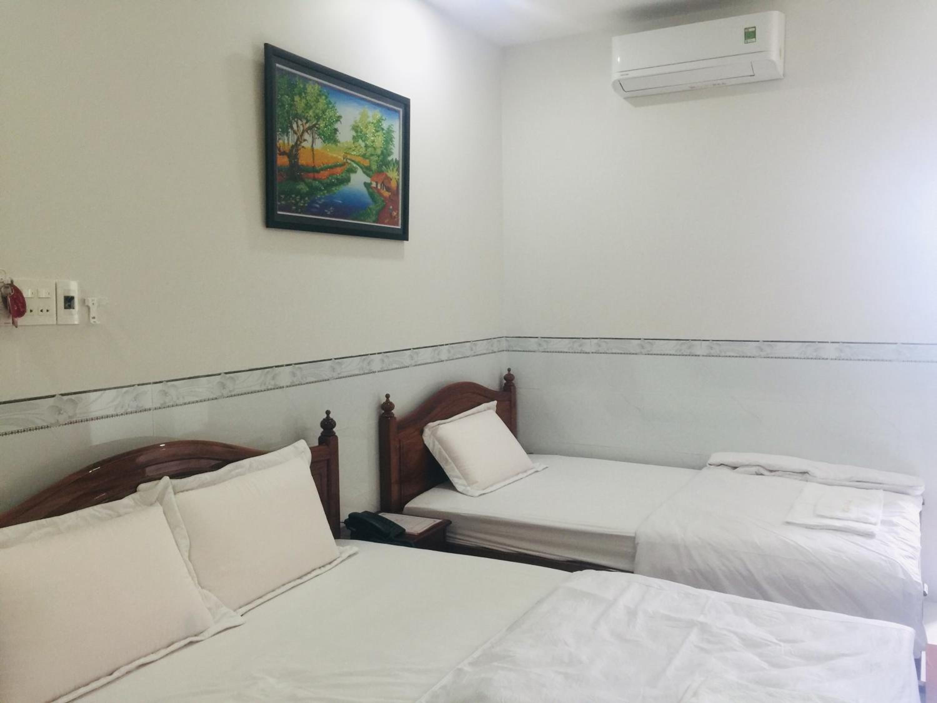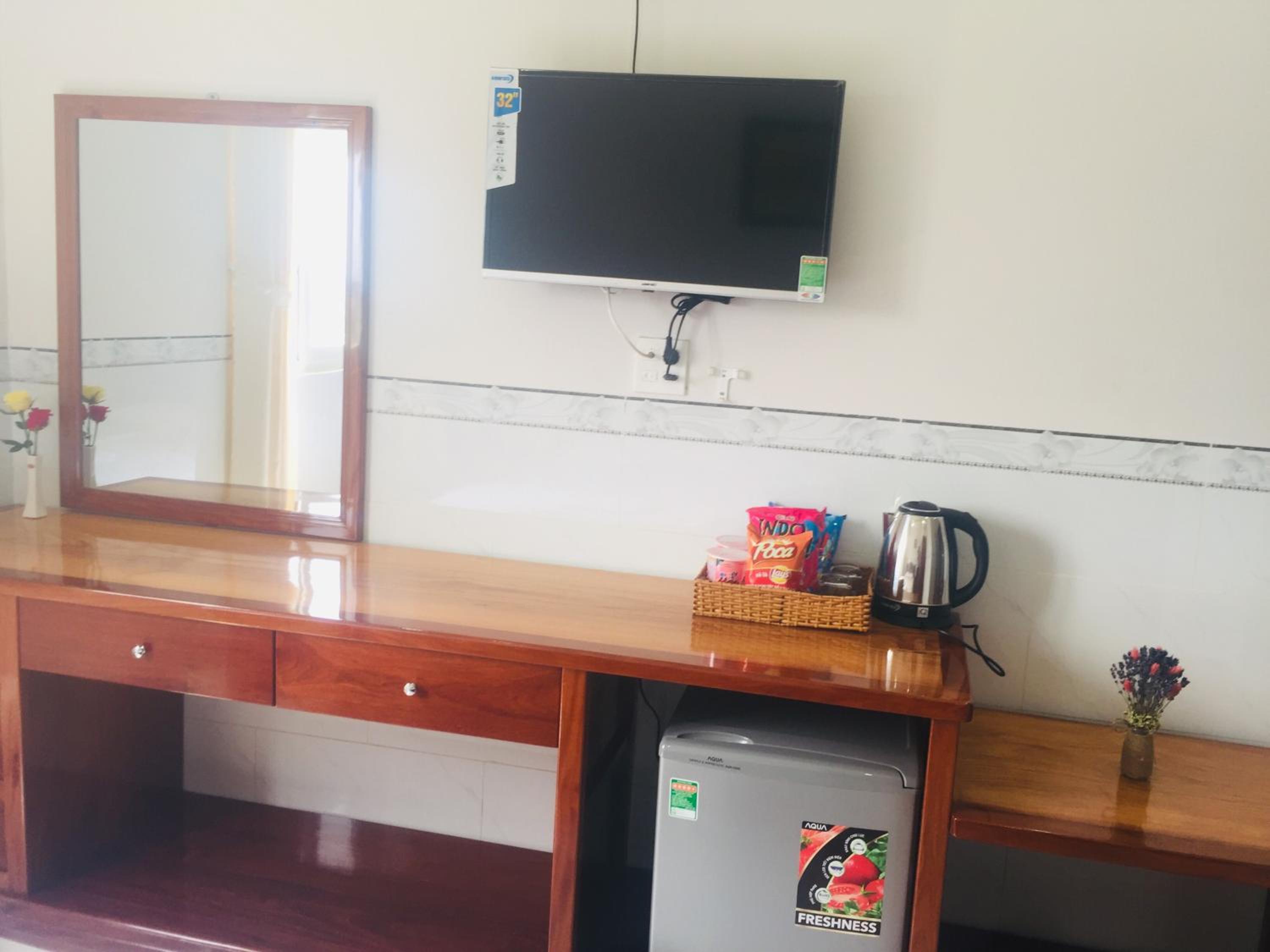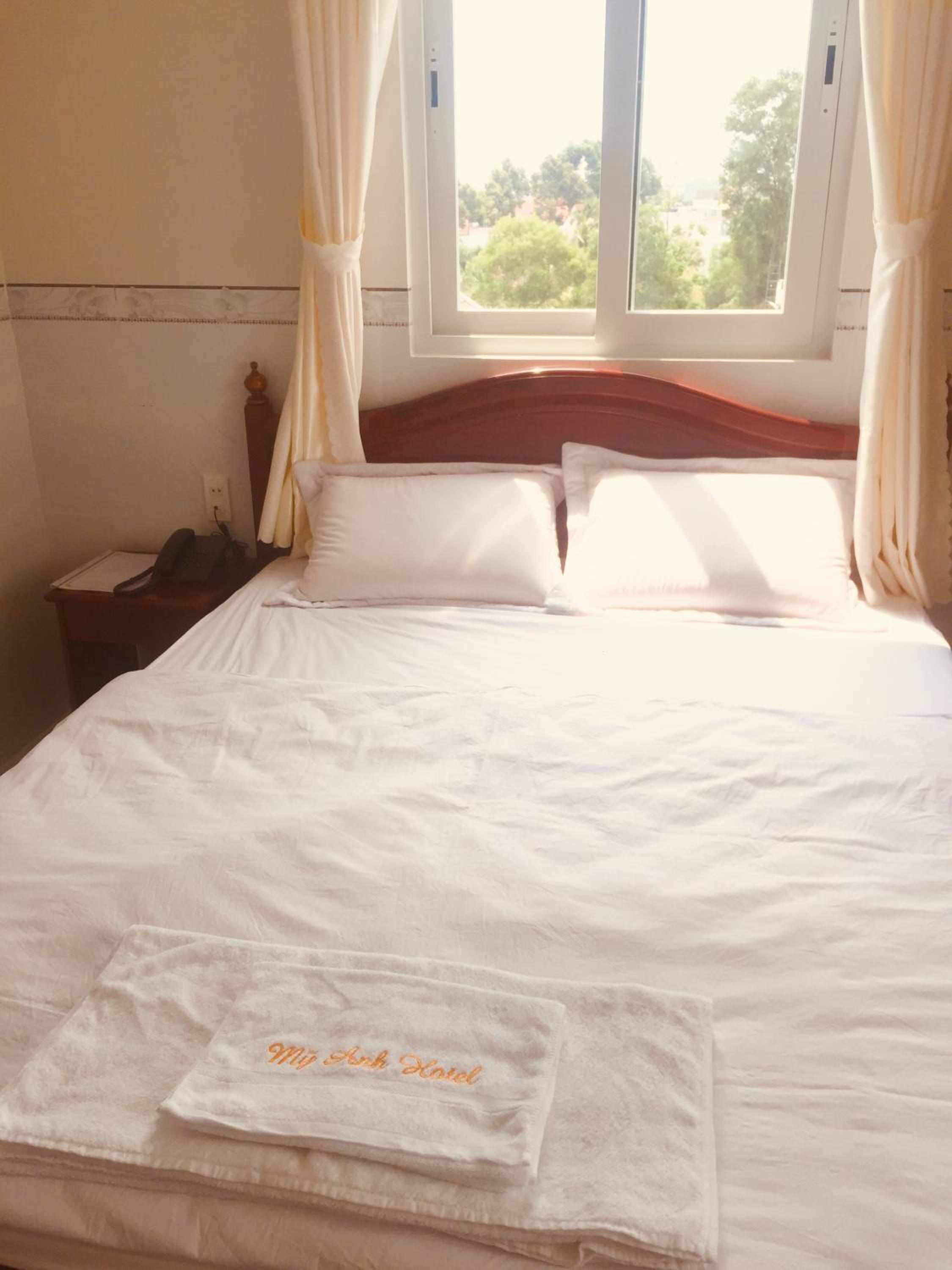 Each room at Hotel Mỹ Anh is equipped with a desk, kettle, fridge, and wardrobe, providing comfort and convenience for guests. The attentive room service adds an extra touch to make your stay memorable.