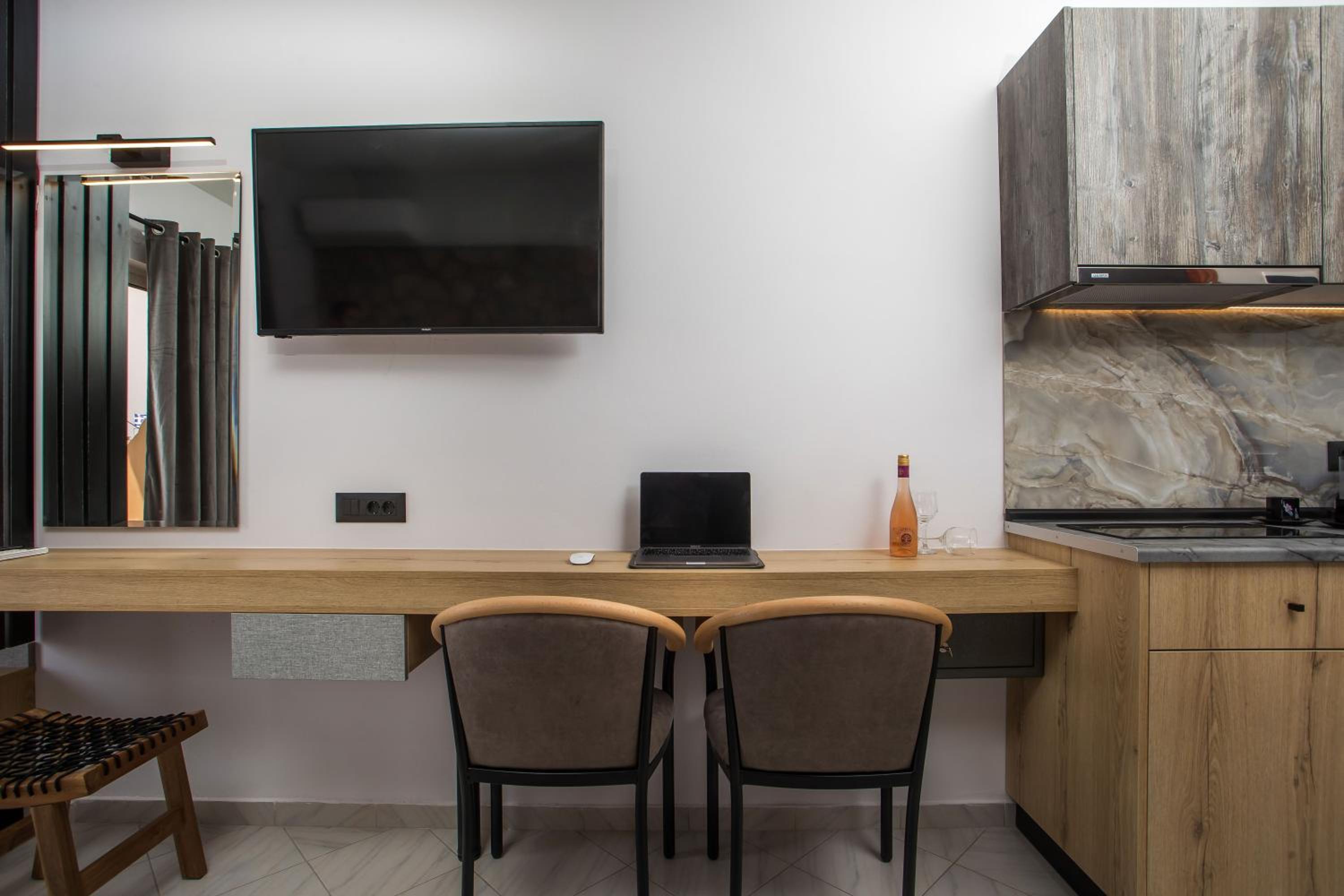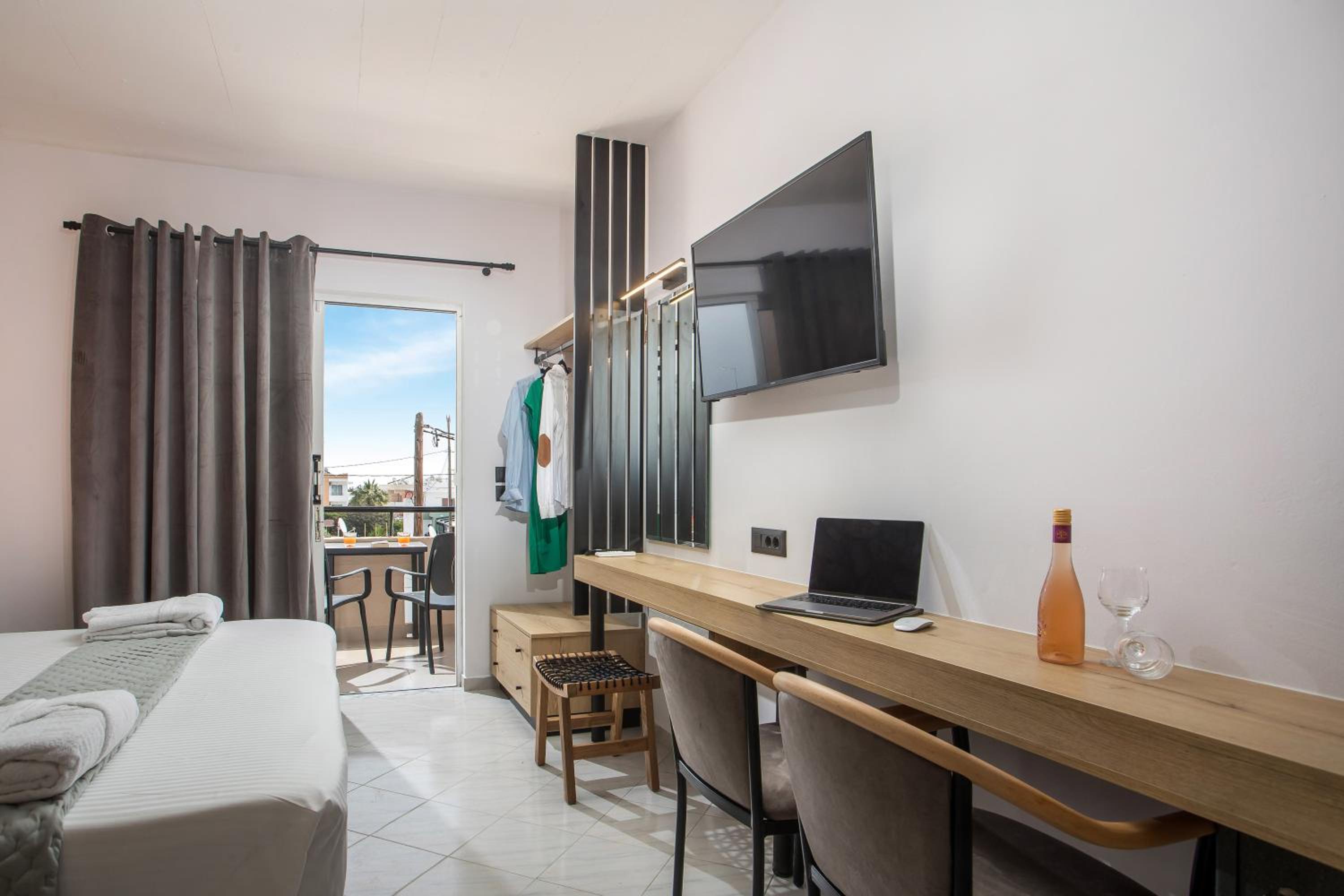 Cozy apartments. Beautiful, modernly furnished room with a wonderful balcony overlooking the garden. Great location – although you need to cross the main street to get to the sea, there are plenty of shops and cafés nearby. So, good value for money. Very friendly staff. The gentleman was extremely helpful and polite, assisting us with several questions whenever we asked. Thanks! We can still picture that place in our minds :)