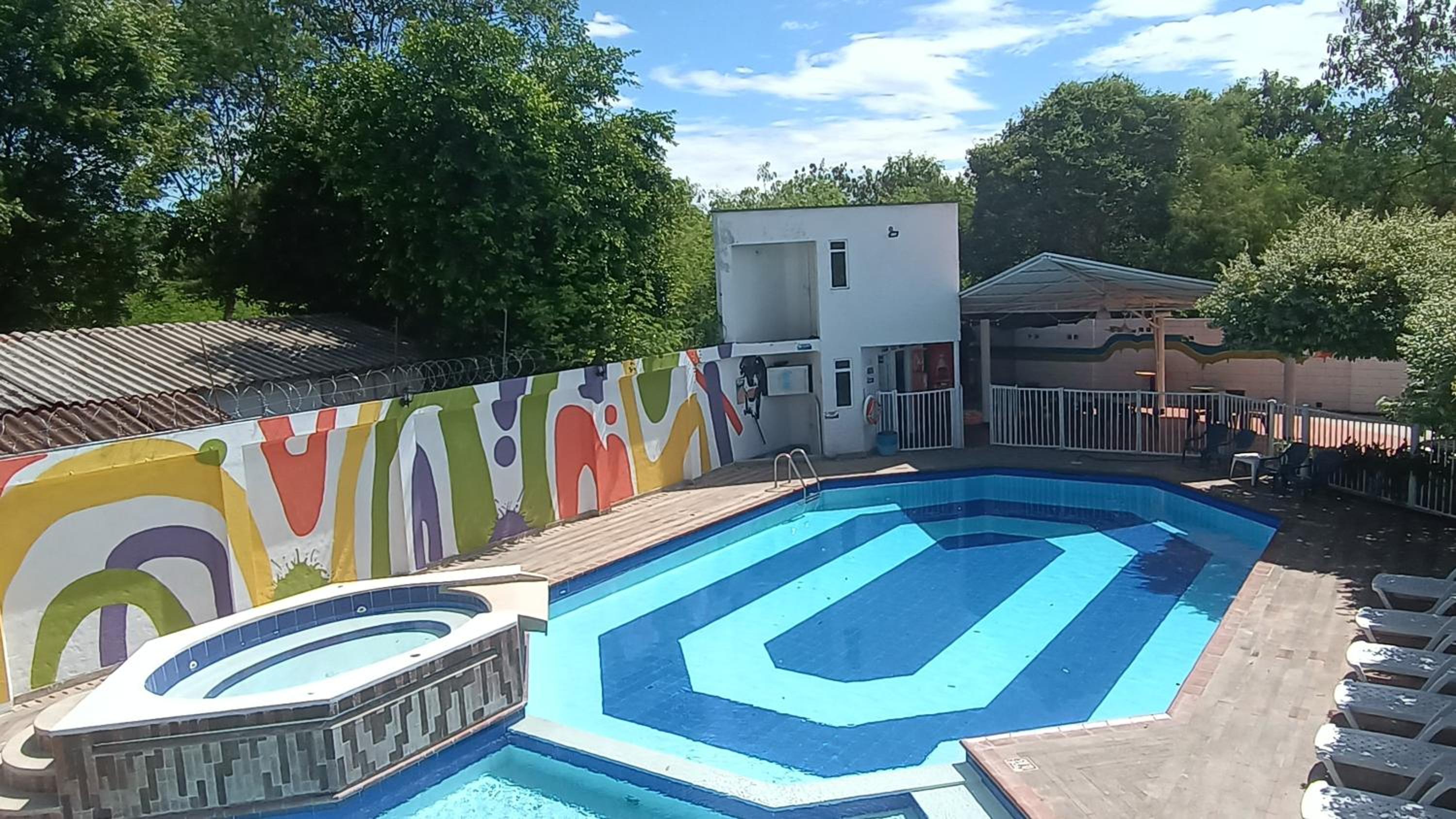 Unwind in our hot tub and lounge by the seasonal outdoor pool for a rejuvenating stay.