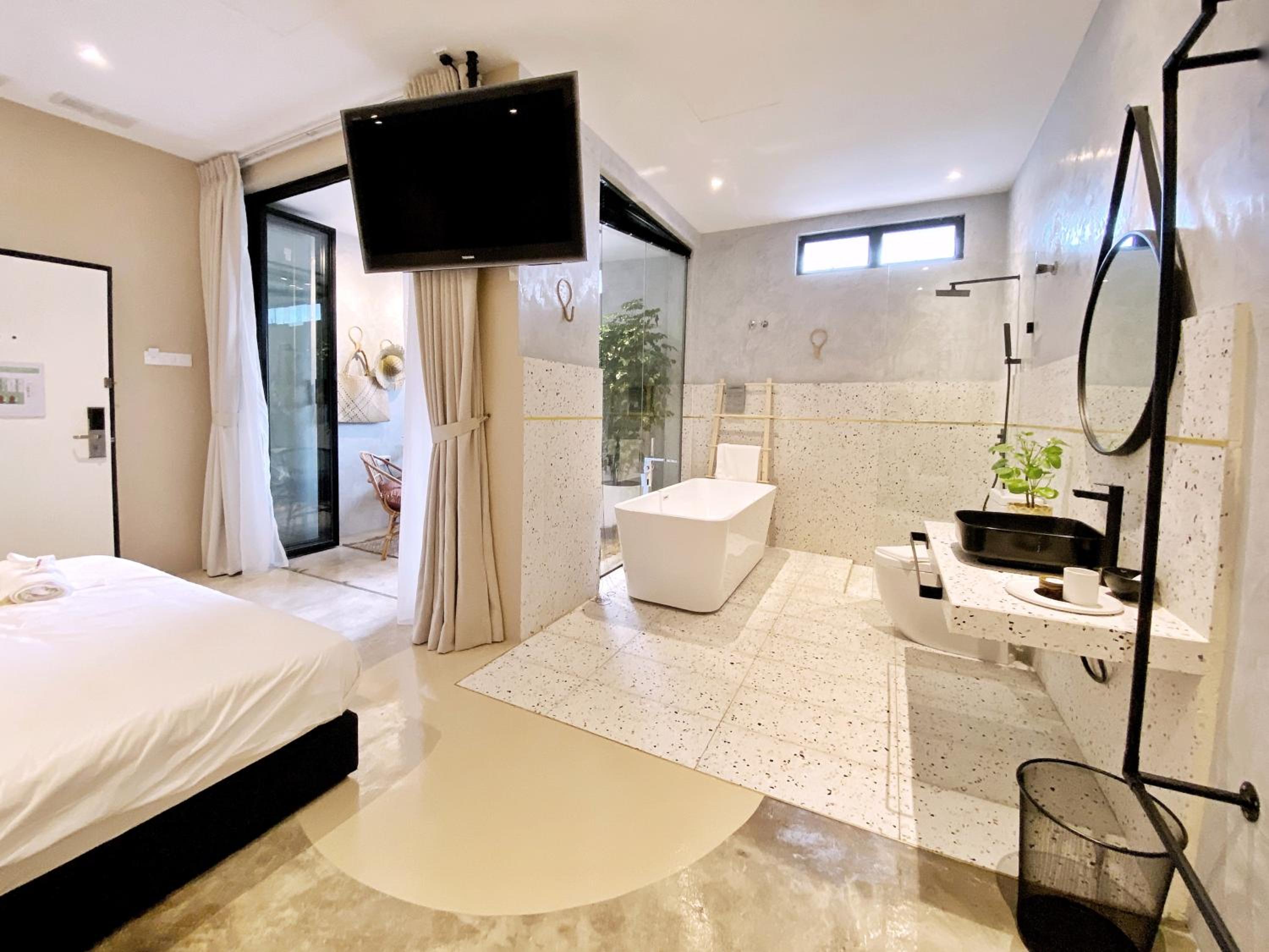 Experience a cozy stay in the well-equipped rooms featuring air conditioning, flat-screen TVs, and private bathrooms, ensuring a comfortable and relaxing stay.