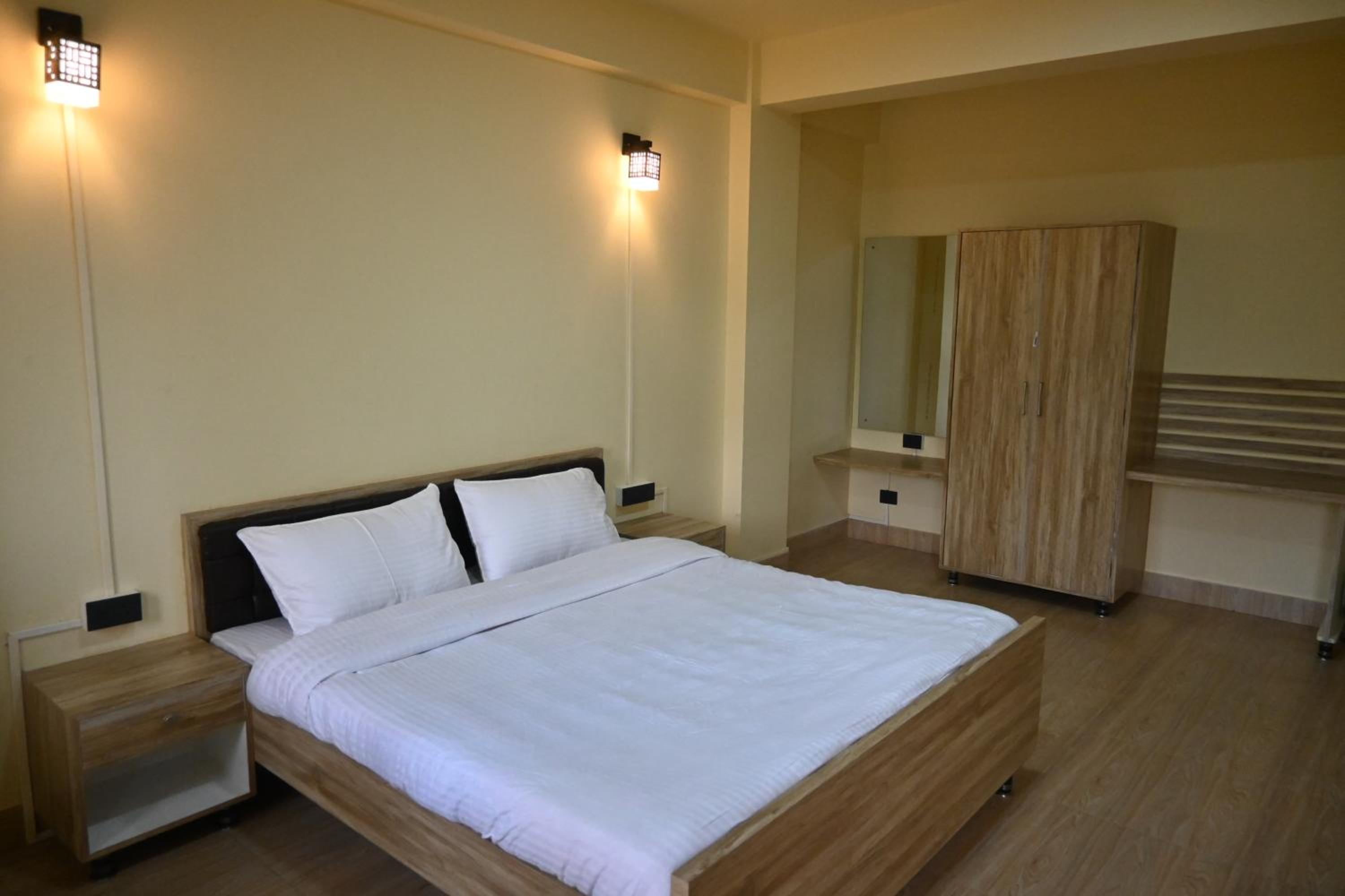 TreeTops Residency in Shillong offers elegantly designed rooms with modern amenities like a flat-screen TV, kitchenette, and private bathroom, ensuring a comfortable stay for guests.
