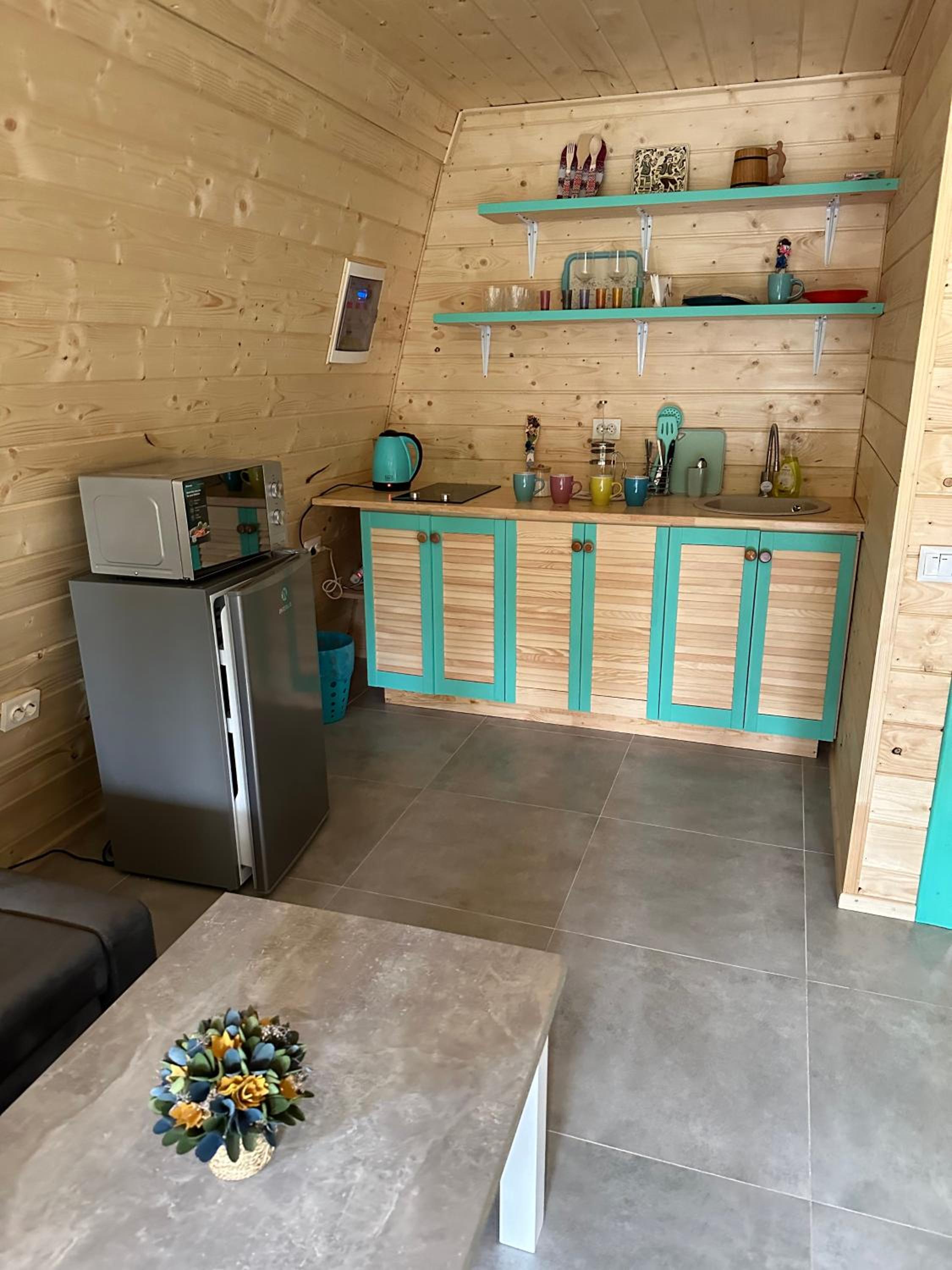 Відсутність мікрохвильовки, відсутність шафи чи комода. Була тільки шафа для верхнього одягу.
