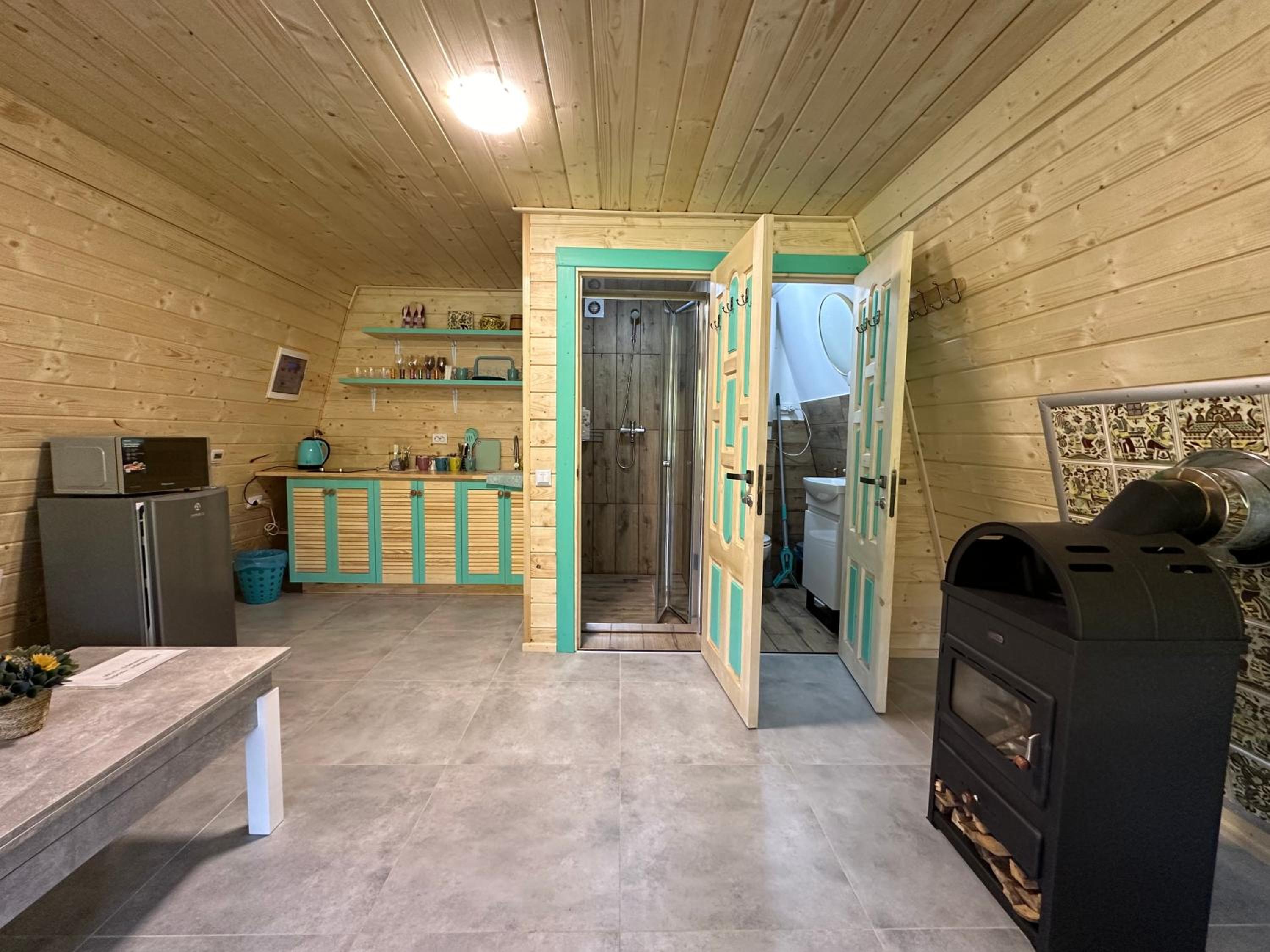 Luxurious Amenities: Enjoy a cozy stay in our rooms equipped with modern facilities like a flat-screen TV, kitchen, and fireplace for ultimate comfort.