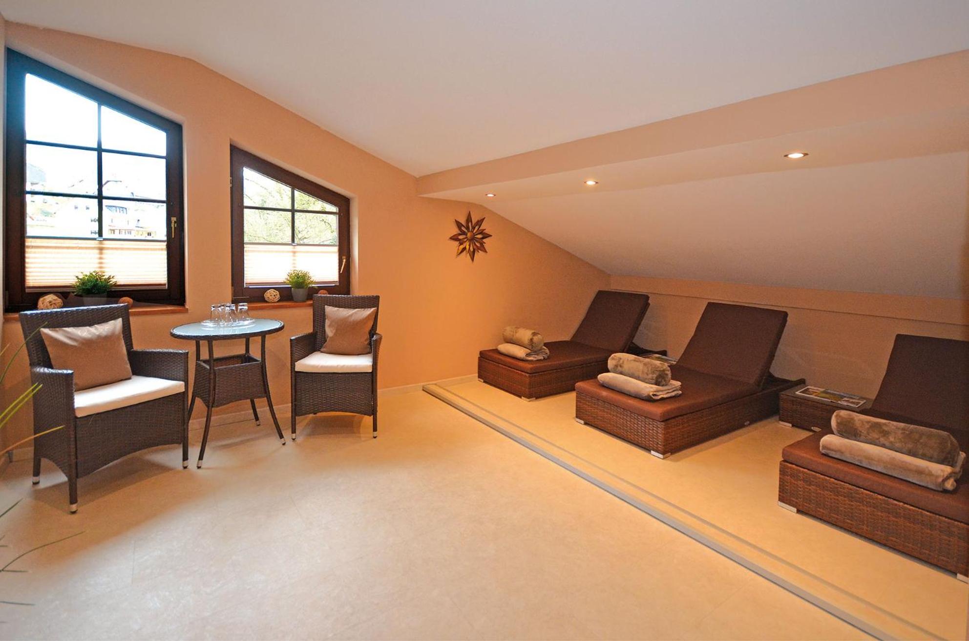 Unwind in the sauna, explore the terrace, or have fun in the games room. With activities like cycling, hiking, and table tennis, there's something for everyone at Hotel Burgfrieden.
